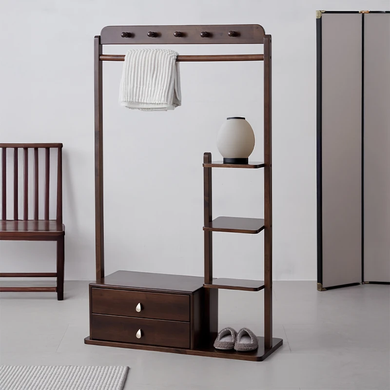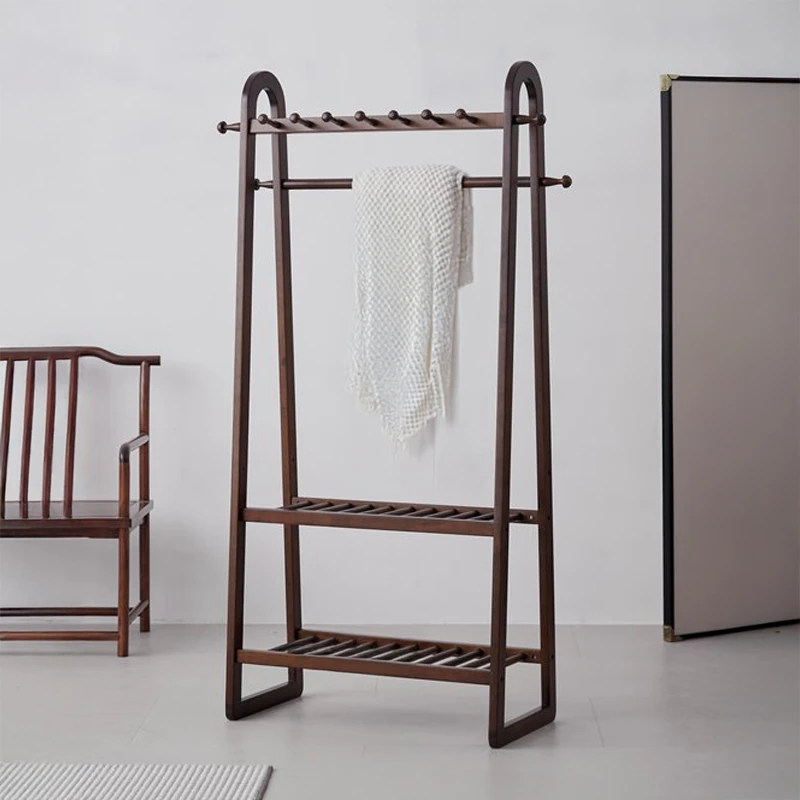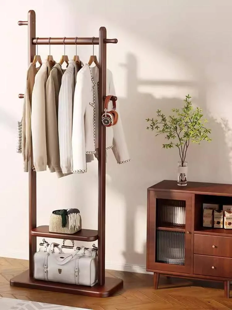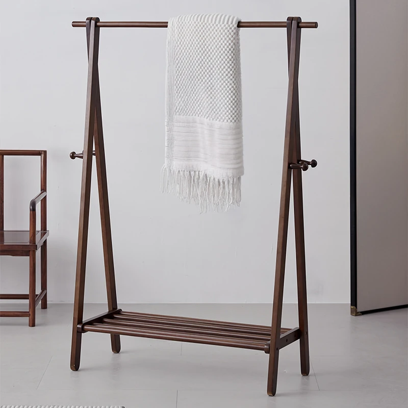 新中式デザインの実木製スタンド式衣類ハンガー - 寝室・リビングに最適な収納ラック!おしゃれで機能的、衣類をスマートに整理整頓!