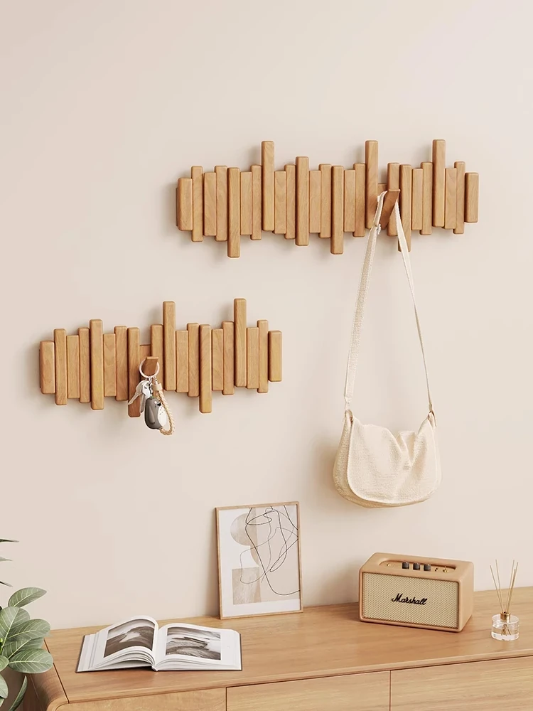 ピアノキー型ウォールハンガー - 究極のスタイルと機能性を兼ね備えた実木フック!穴あけ不要で、寝室や玄関に最適。おしゃれな衣類・帽子収納で、入るたびに心地よい空間を演出します。