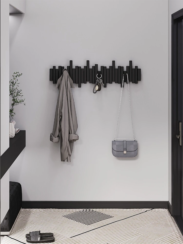 無孔設置!高級実木製ピアノキー壁掛けコートフック - 寝室や玄関に最適なスタイリッシュな収納ソリューション!おしゃれなデザインで、入室後すぐに使える便利なコートハンガー。