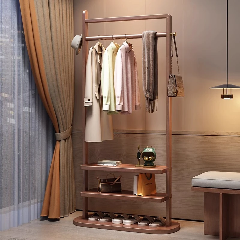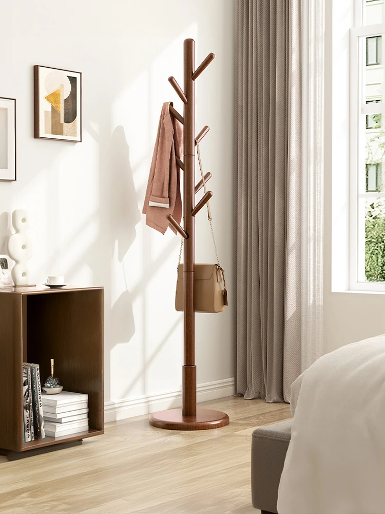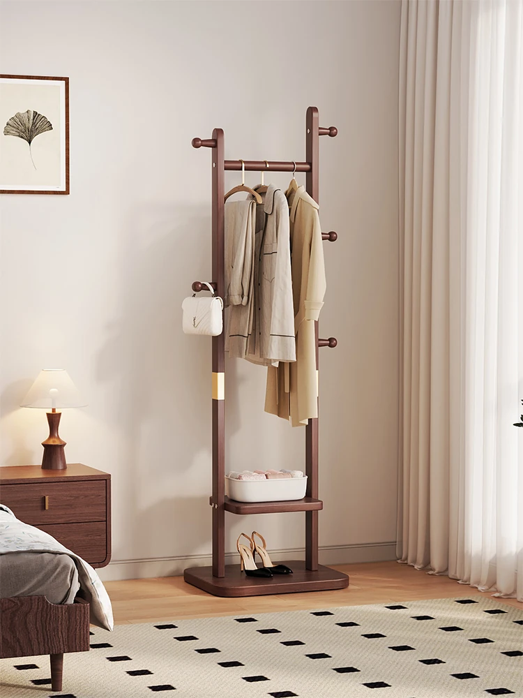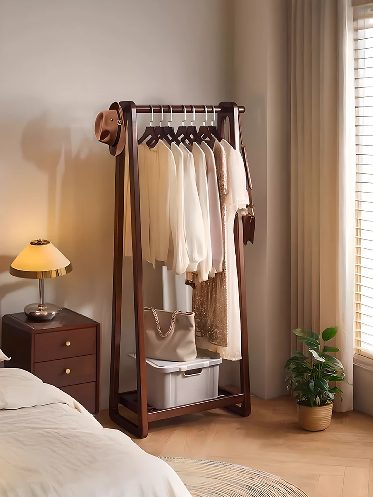 新中式デザインの無垢材スタンドハンガー - 寝室やリビングにぴったり!ベッドサイドでの衣類置きに最適、エレガントな収納ソリューション。おしゃれで機能的な衣帽掛け!