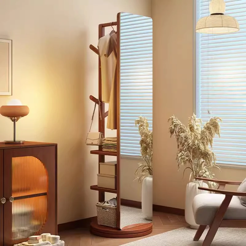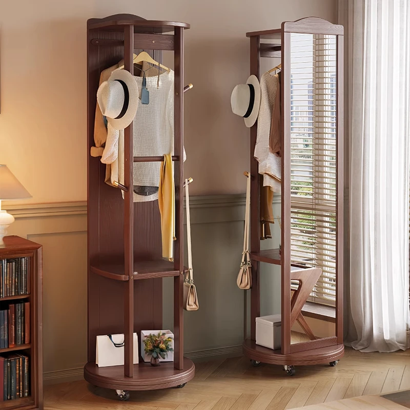 高級天然木製全身鏡 - 回転式・移動可能な衣類掛け付きドレッシングミラー!寝室に最適、スタイリッシュなデザインでお部屋を華やかに演出します。おしゃれな試着体験をお届けします!