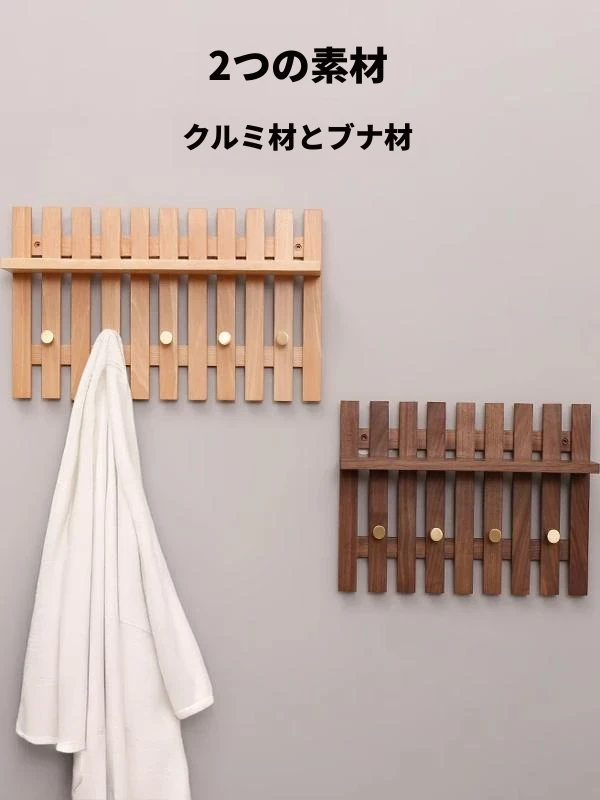 天然木製の玄関用フック|壁掛けタイプの衣類・帽子ハンガー|おしゃれで取り付け簡単、ネジ不要のクリエイティブデザイン!あなたの玄関をスタイリッシュに彩るアイテムです。
