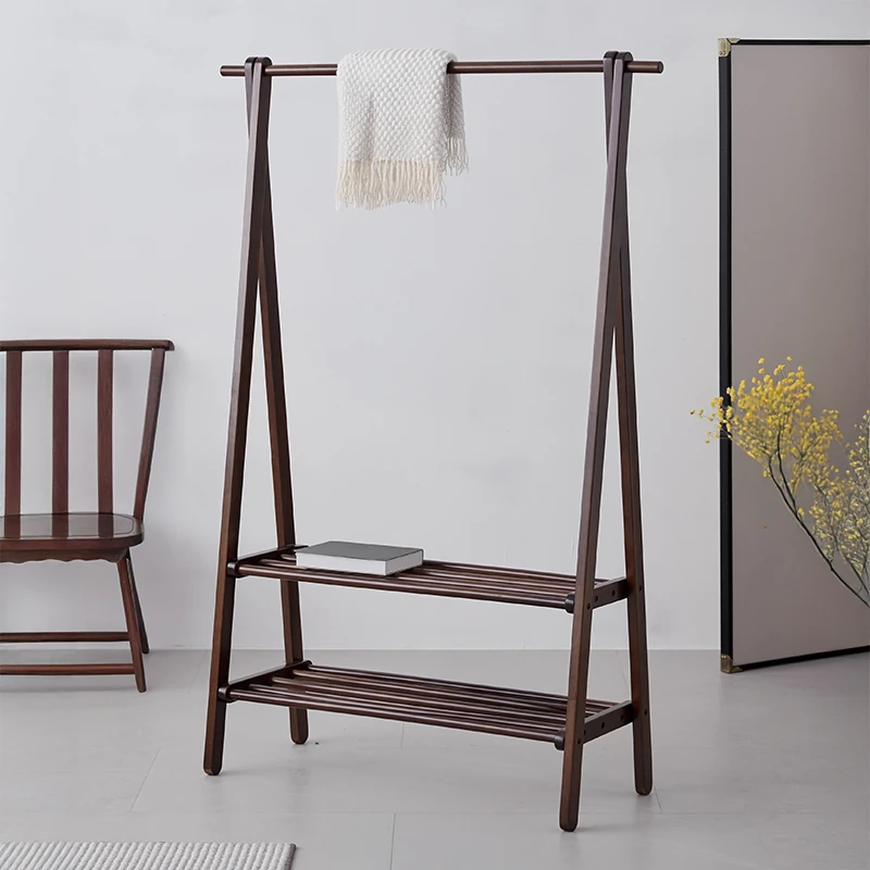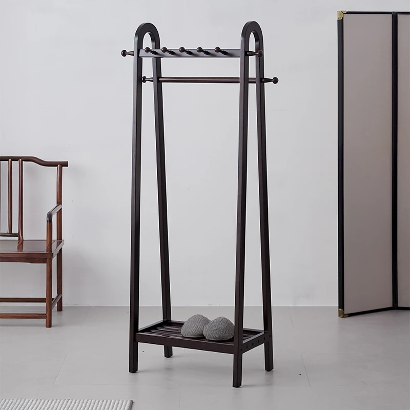 Elegant New Chinese Style Solid Wood Freestanding Clothes Rack - Perfect for Bedroom, Entryway, or Living Room; Ideal for Hanging Clothes and Coats by Your Bed