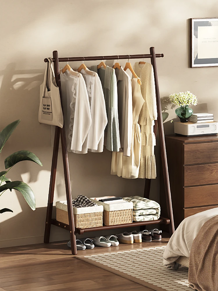 Solid Wood Coat Rack - Stylish and Functional Floor Stand for Bedroom Clothes Storage, Easy-to-Use Wardrobe Hanger, Perfect for Home Drying and Organizing Your Outfits!