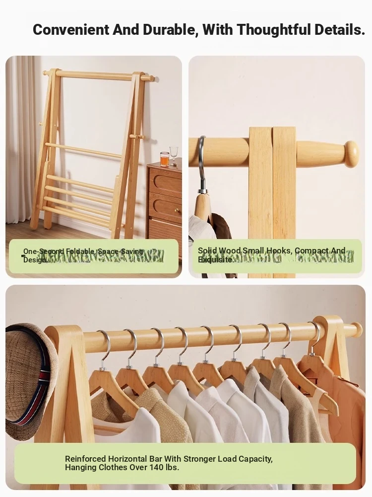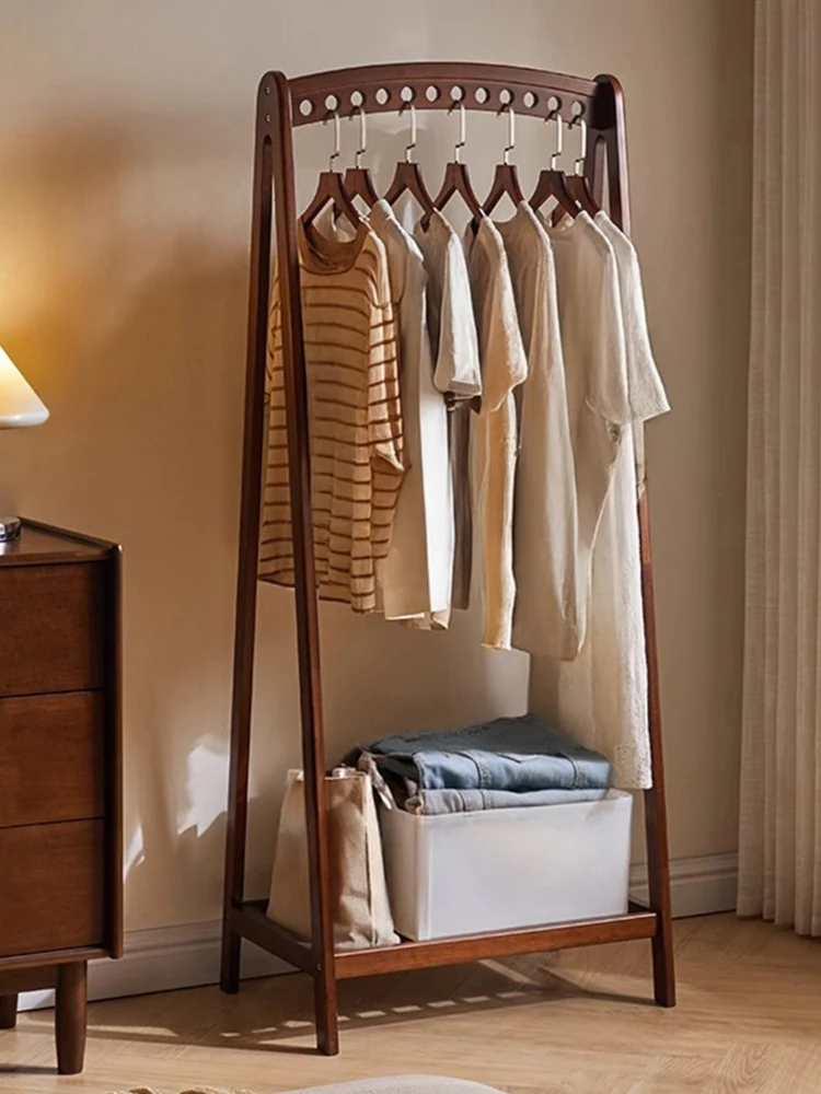 Solid Wood Freestanding Clothes Rack - Stylish and Space-Saving Wardrobe Hanger for Bedroom - Ideal for Small Chinese-style Rooms - Perfect for Hanging Coats and Accessories