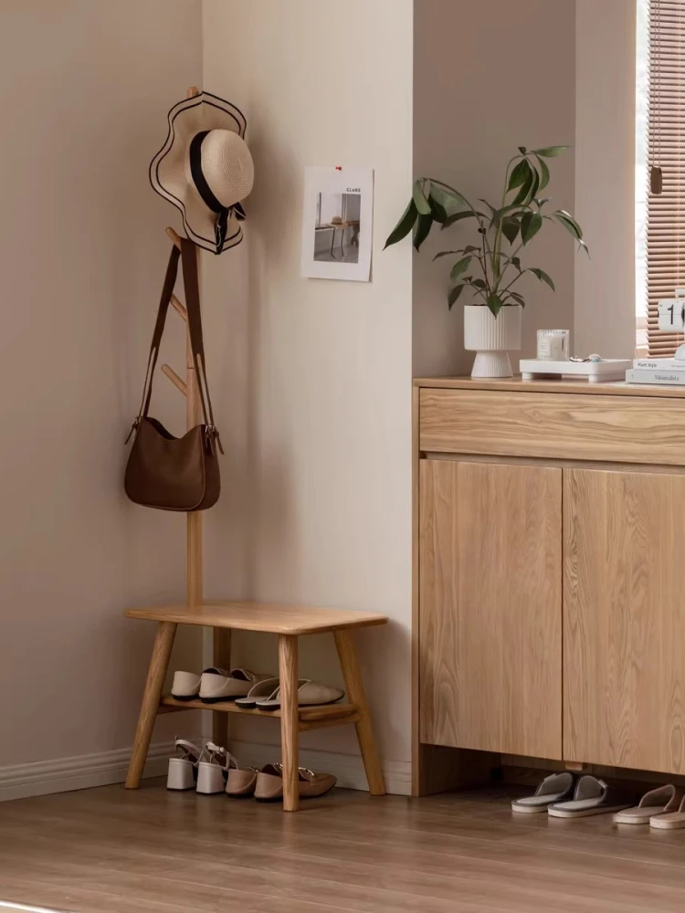 Solid Wood Entryway Bench with Coat Rack - Stylish 2-in-1 Shoe Storage and Hanger for Home, Perfect for Hallways and Doorways, Offers Seating and Storage Solutions