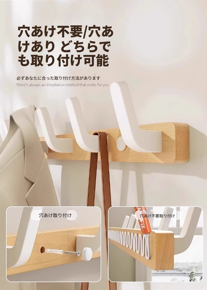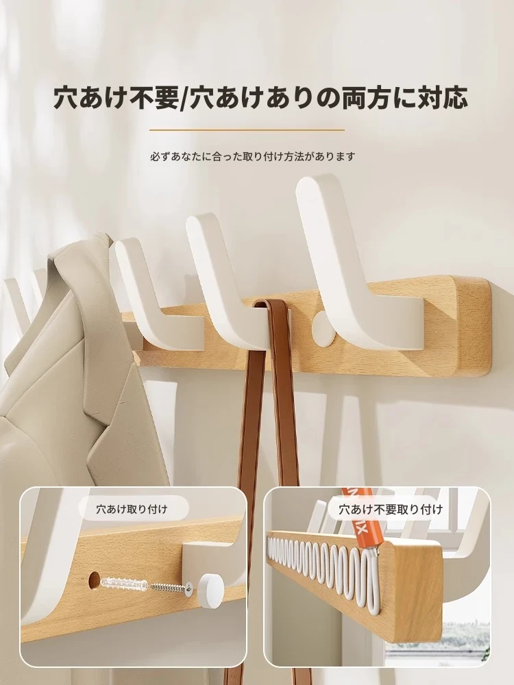 クリーム風壁掛けハンガー - 玄関や入戸にぴったりなおしゃれな収納ラック!簡単取り付けで穴あけ不要、衣類や帽子をすっきり整理できます。あなたのスタイルを引き立てるアイテムです!