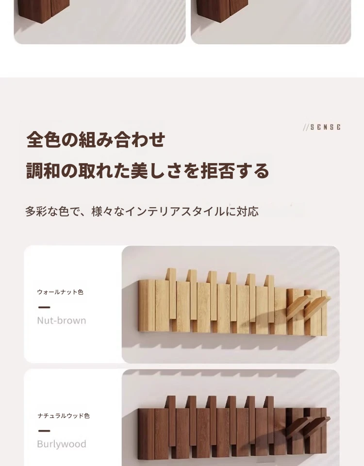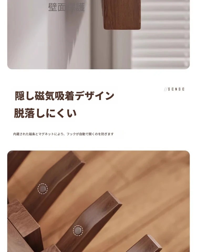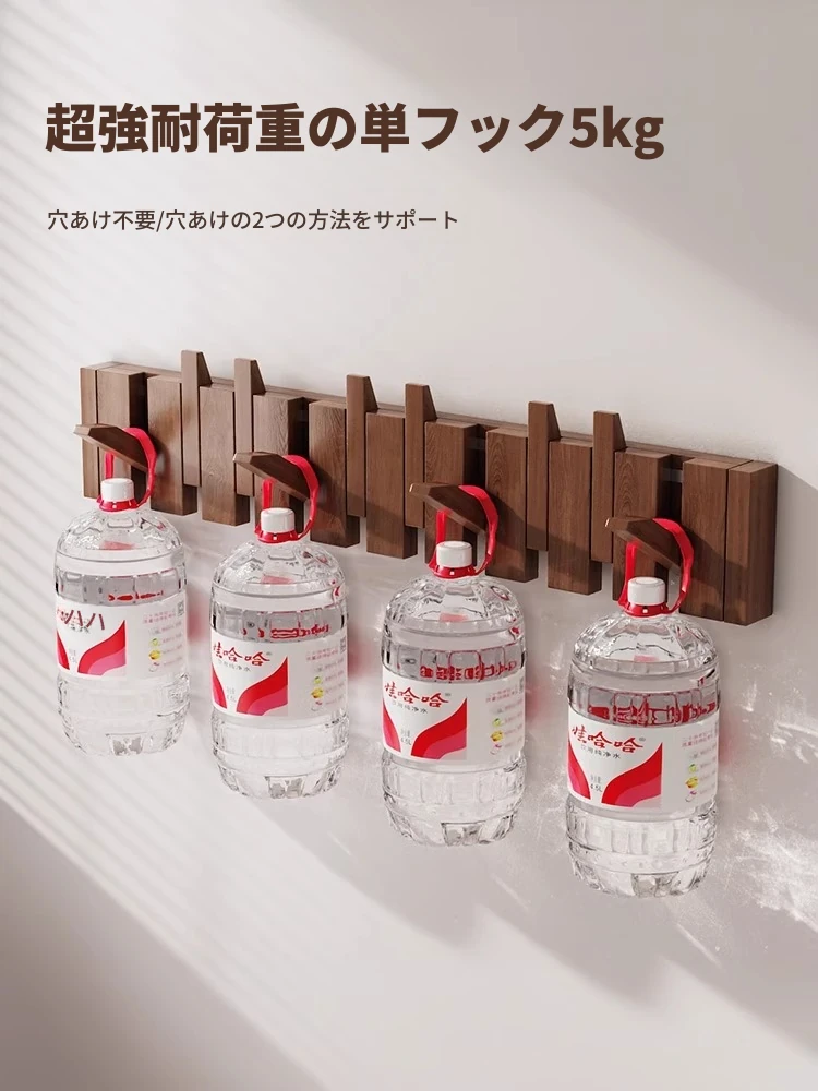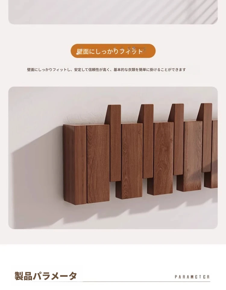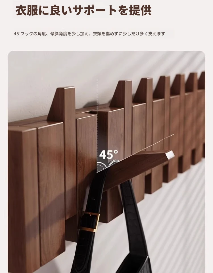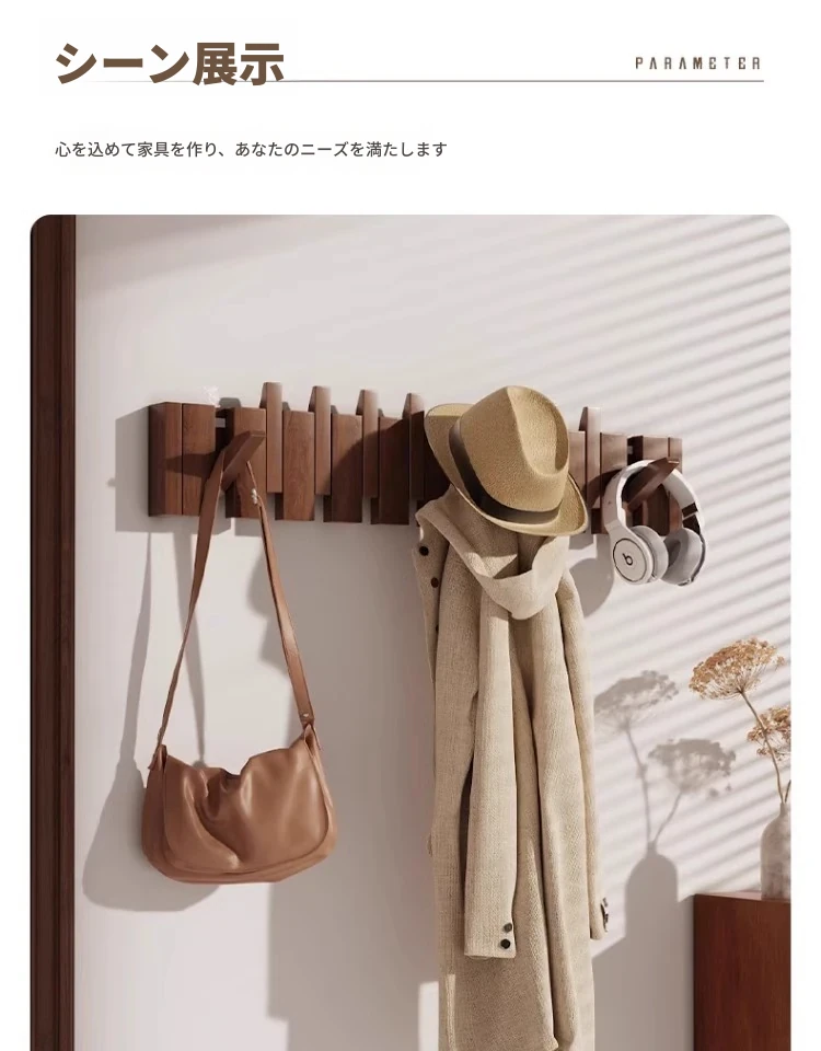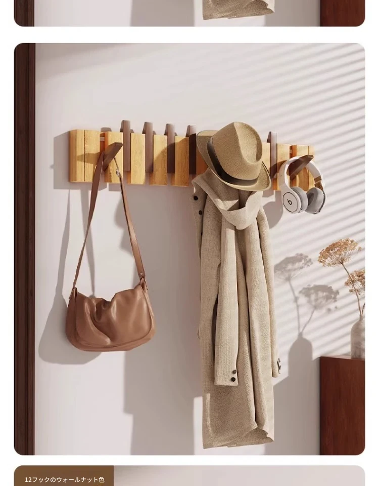 ピアノキー型の創造的な壁掛けコートハンガー - 穴を開けずに取り付け可能!天然木製、玄関や寝室のドア裏に最適な収納ソリューションです。おしゃれで実用的な衣類・帽子ラックで、空間を美しく演出します。