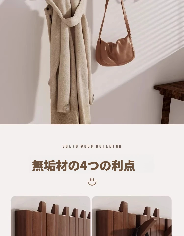 ウォールナット色4フック【輸入ブナ材 強化太型】