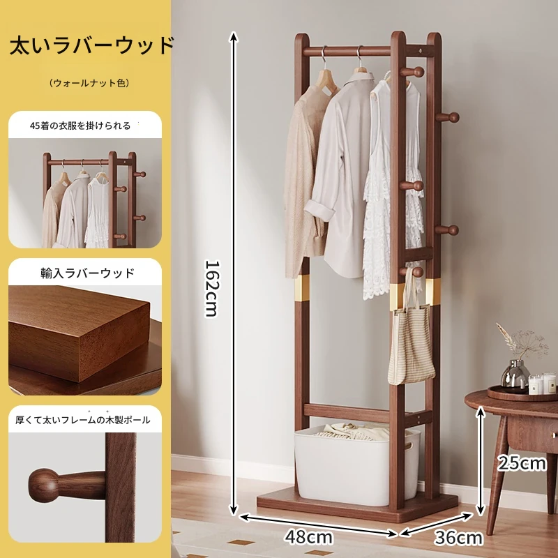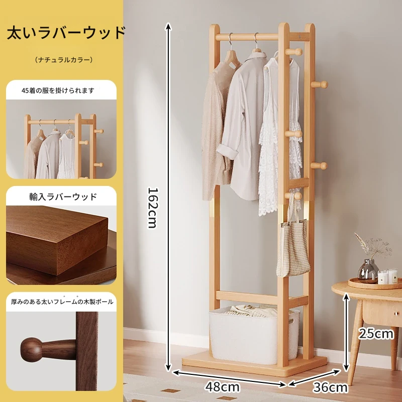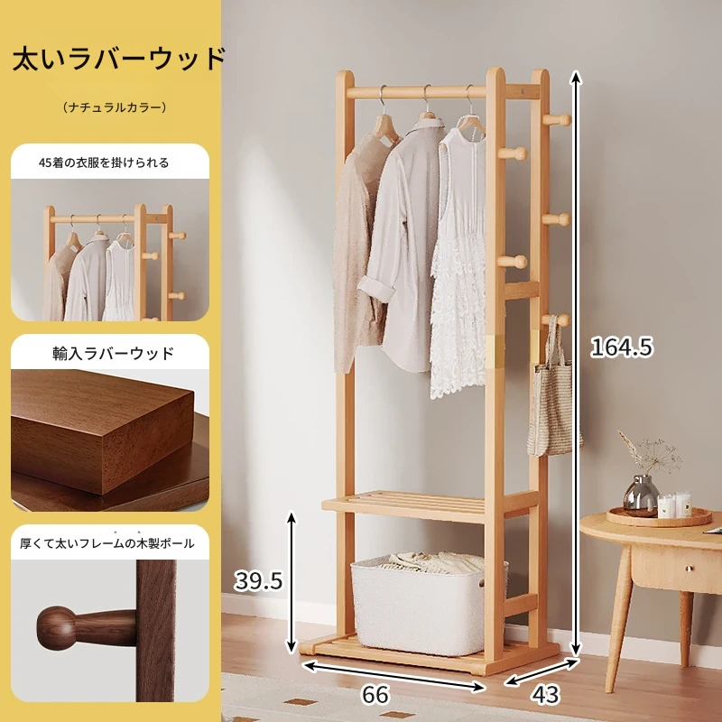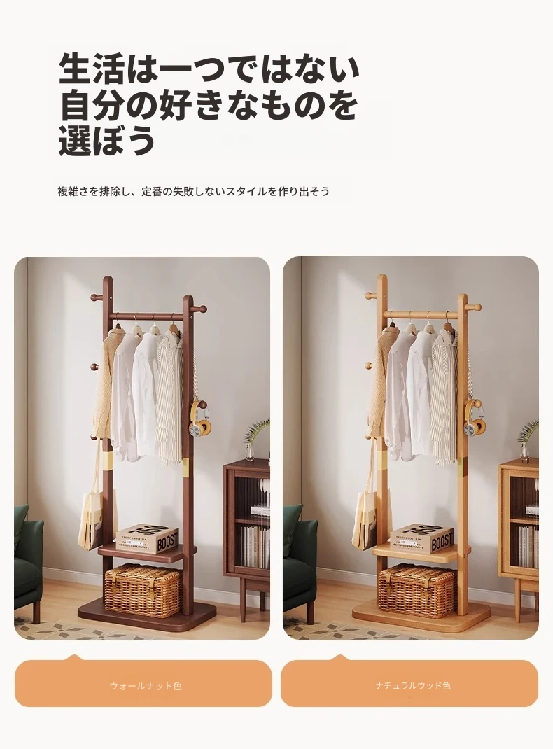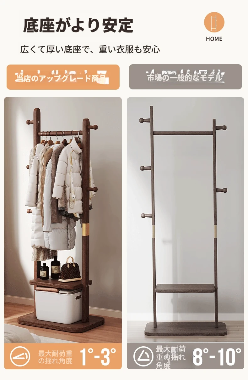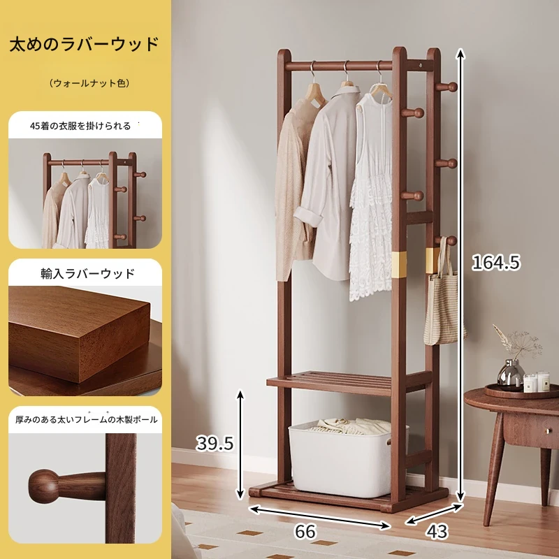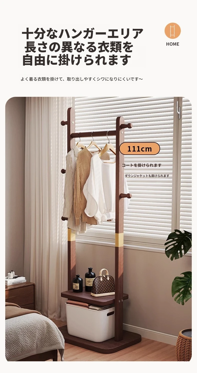 二重構造のスタンド式木製コートハンガー!寝室やリビング、玄関にぴったりの多機能衣類収納ラック。おしゃれで実用的、角にぴったりフィットしてスペースを有効活用!