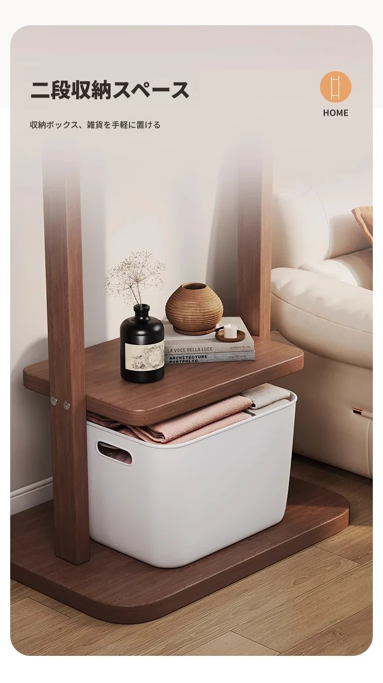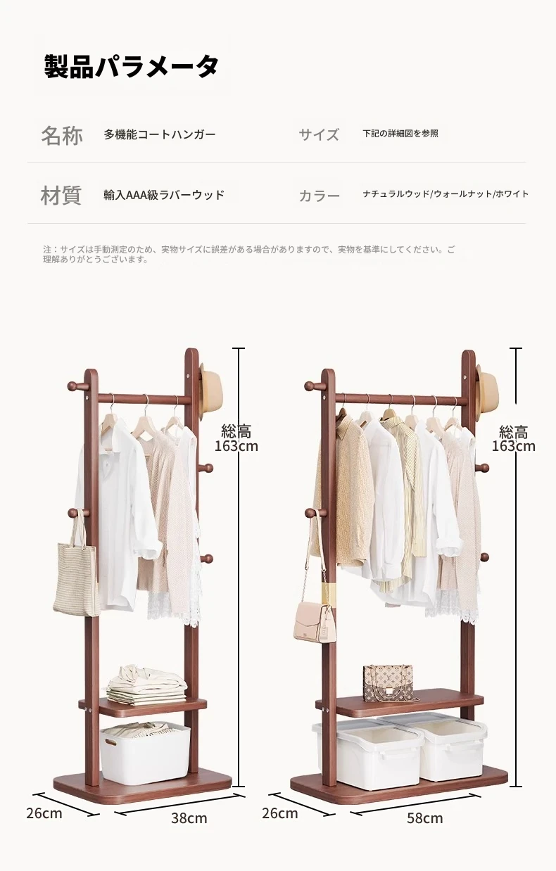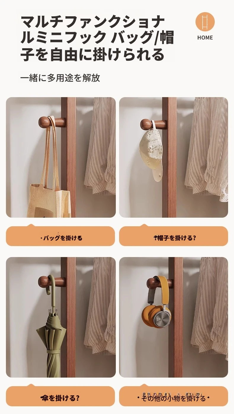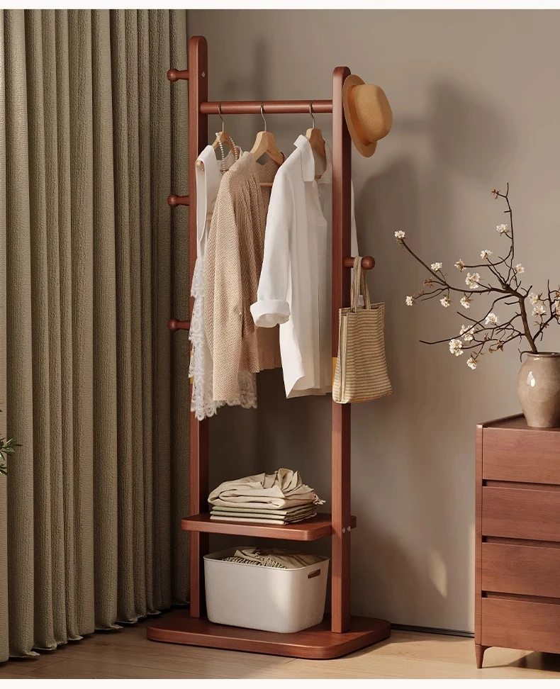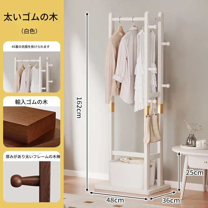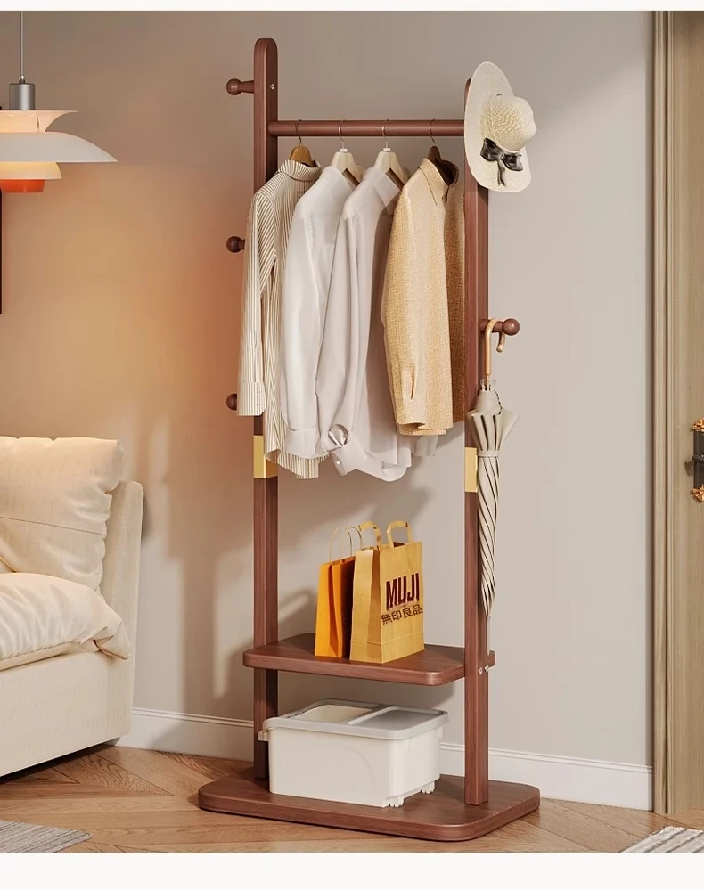 二重構造のスタンド式木製コートハンガー!寝室やリビング、玄関にぴったりの多機能衣類収納ラック。おしゃれで実用的、角にぴったりフィットしてスペースを有効活用!