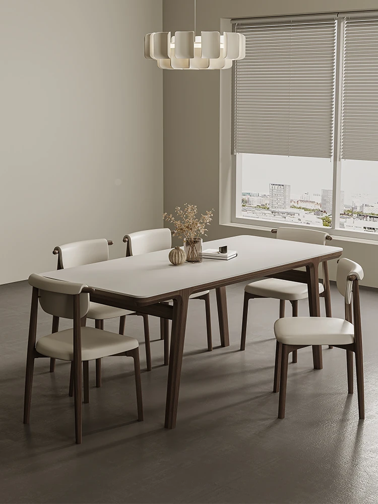Elegant Imported Natural White Ice Jade Marble Dining Table Set - Milan White Jade High-End Luxury Rectangular Solid Wood Dining Table and Chair Combination