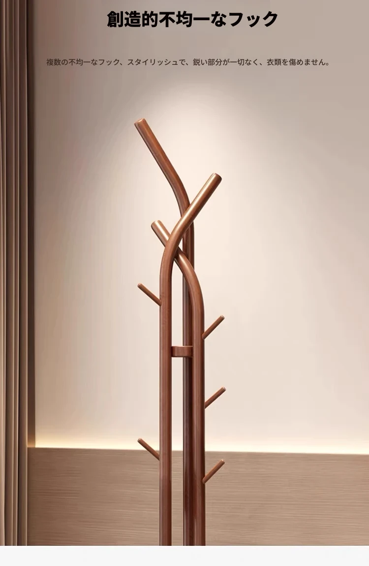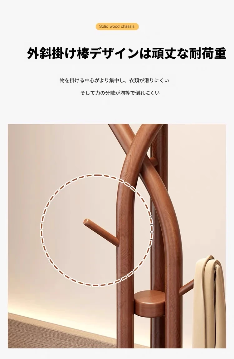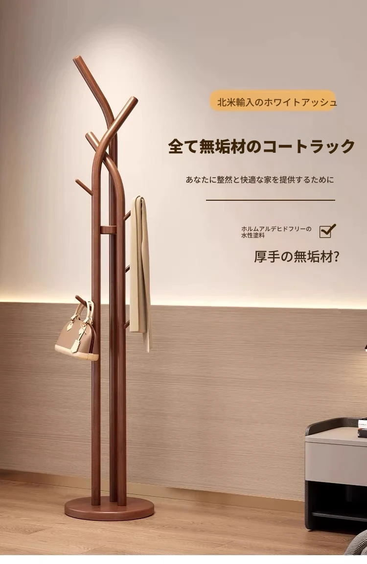 ホワイトアッシュ製のスタイリッシュなコートハンガー - シンプルでエレガントなデザイン、リビングや寝室にぴったりの実木製衣類ラック。おしゃれな収納で、あなたの空間を引き立てます!