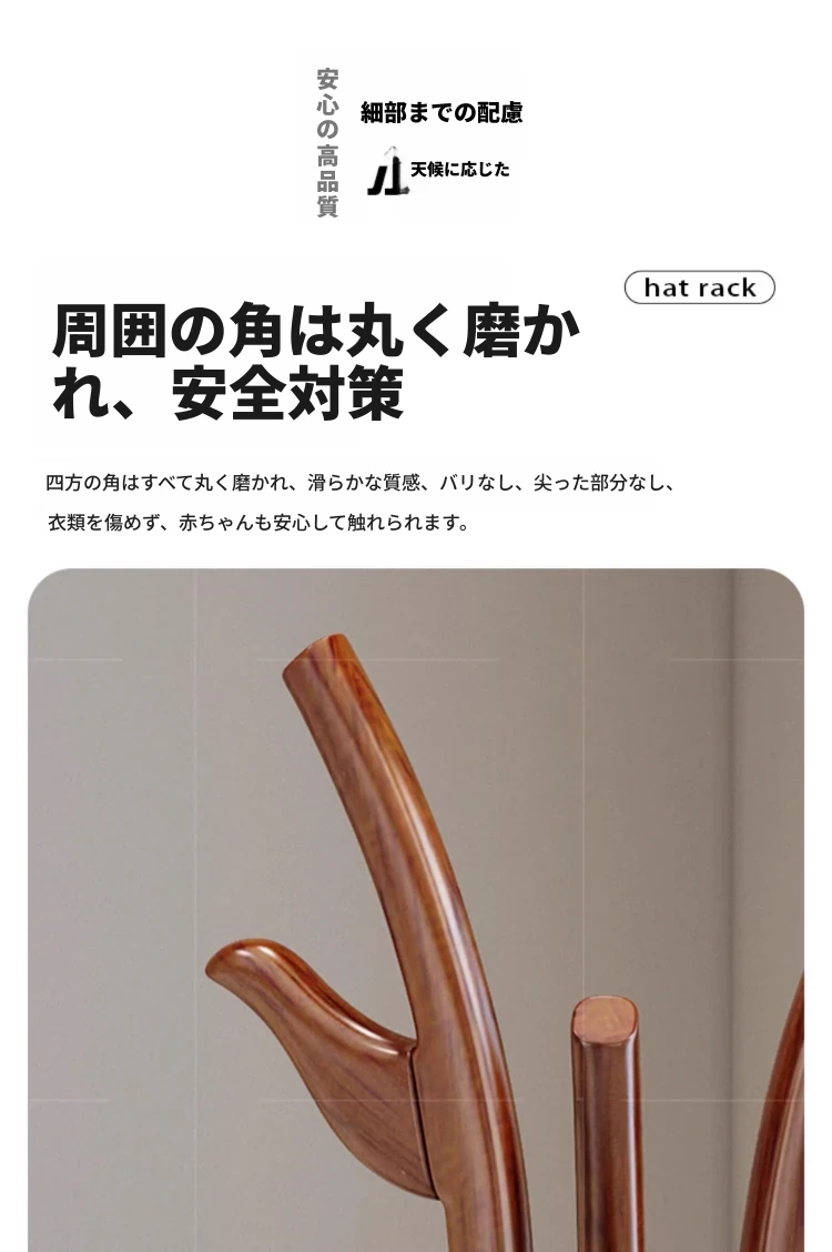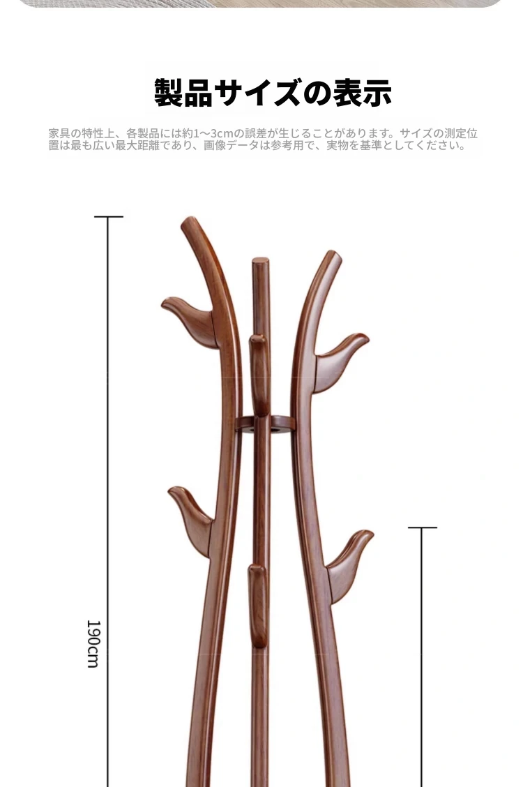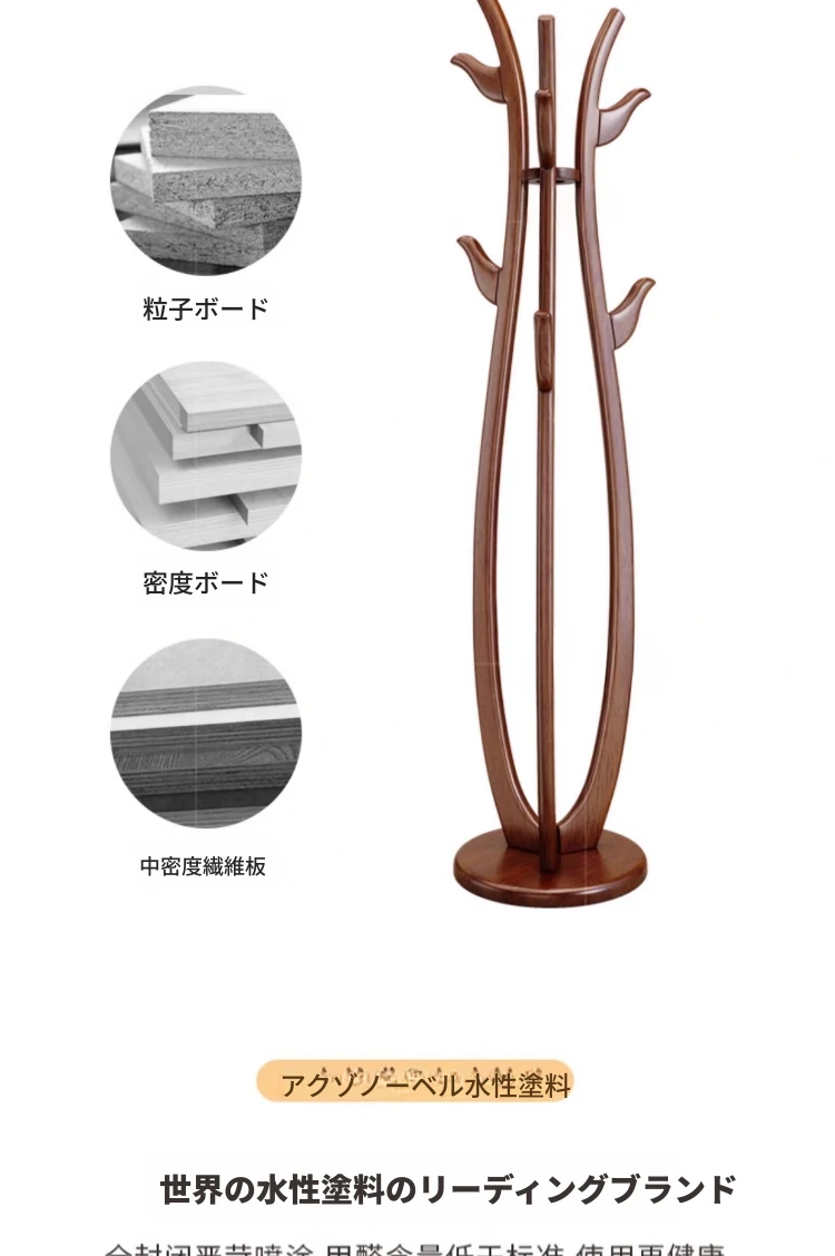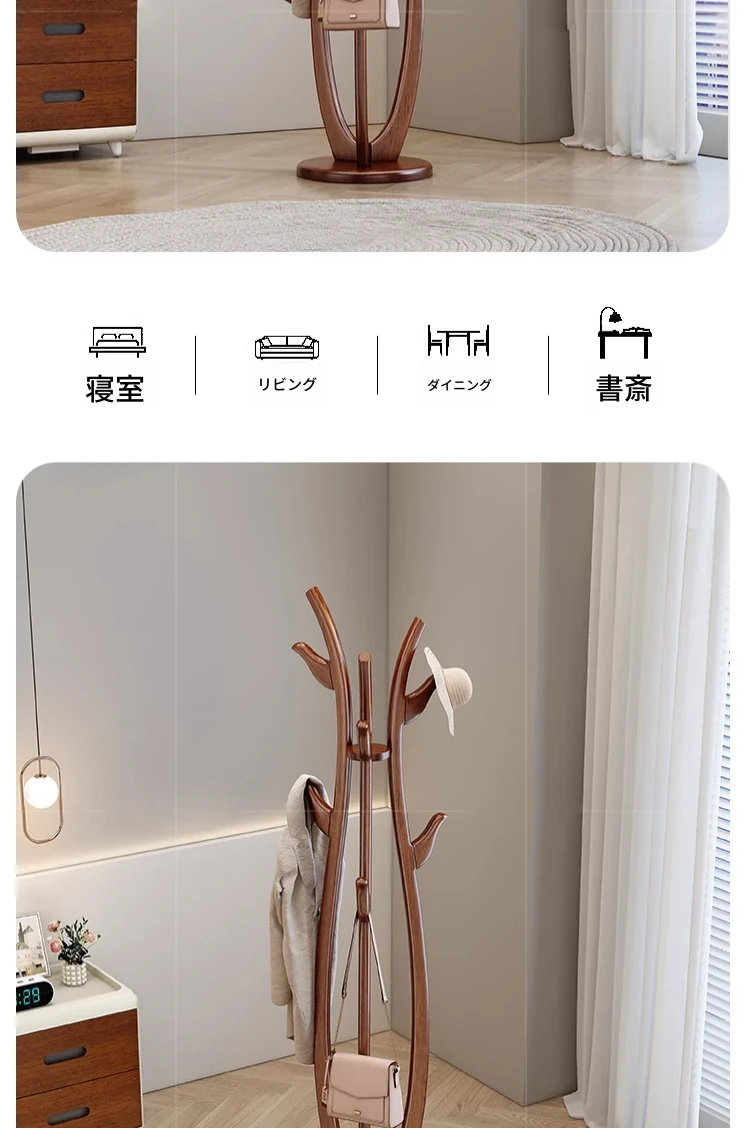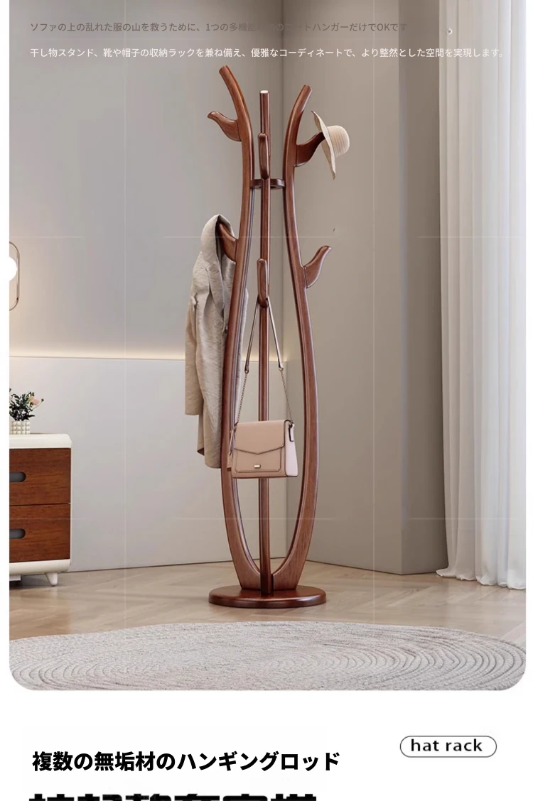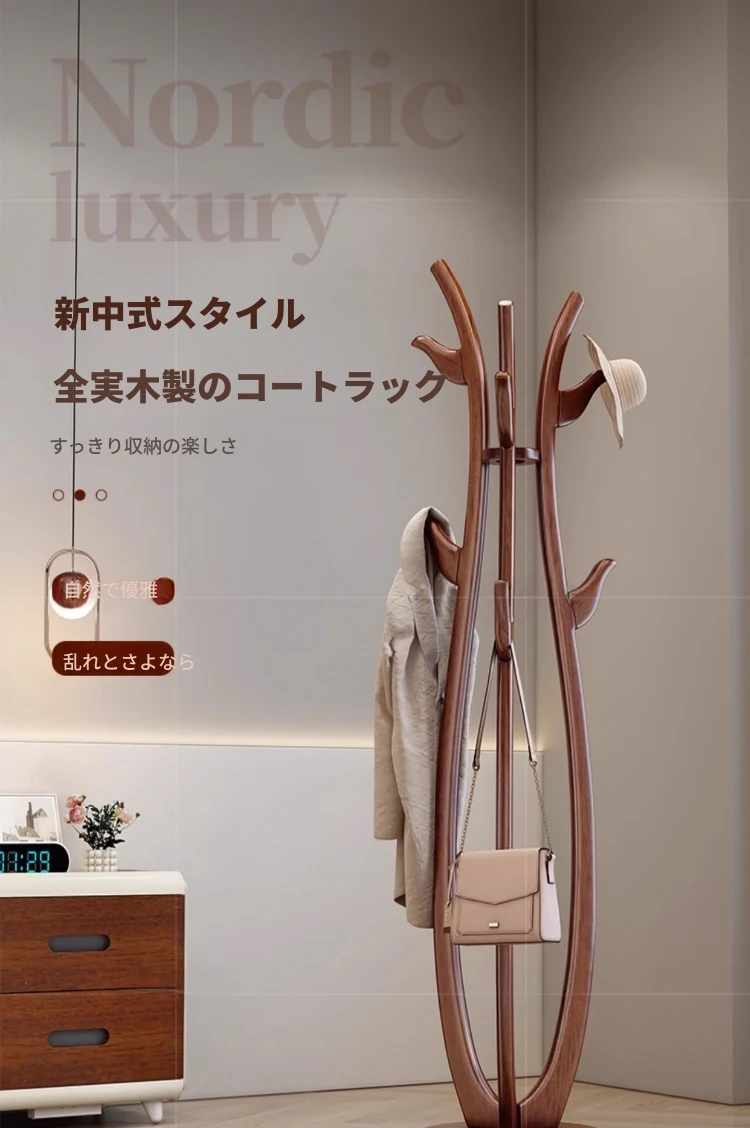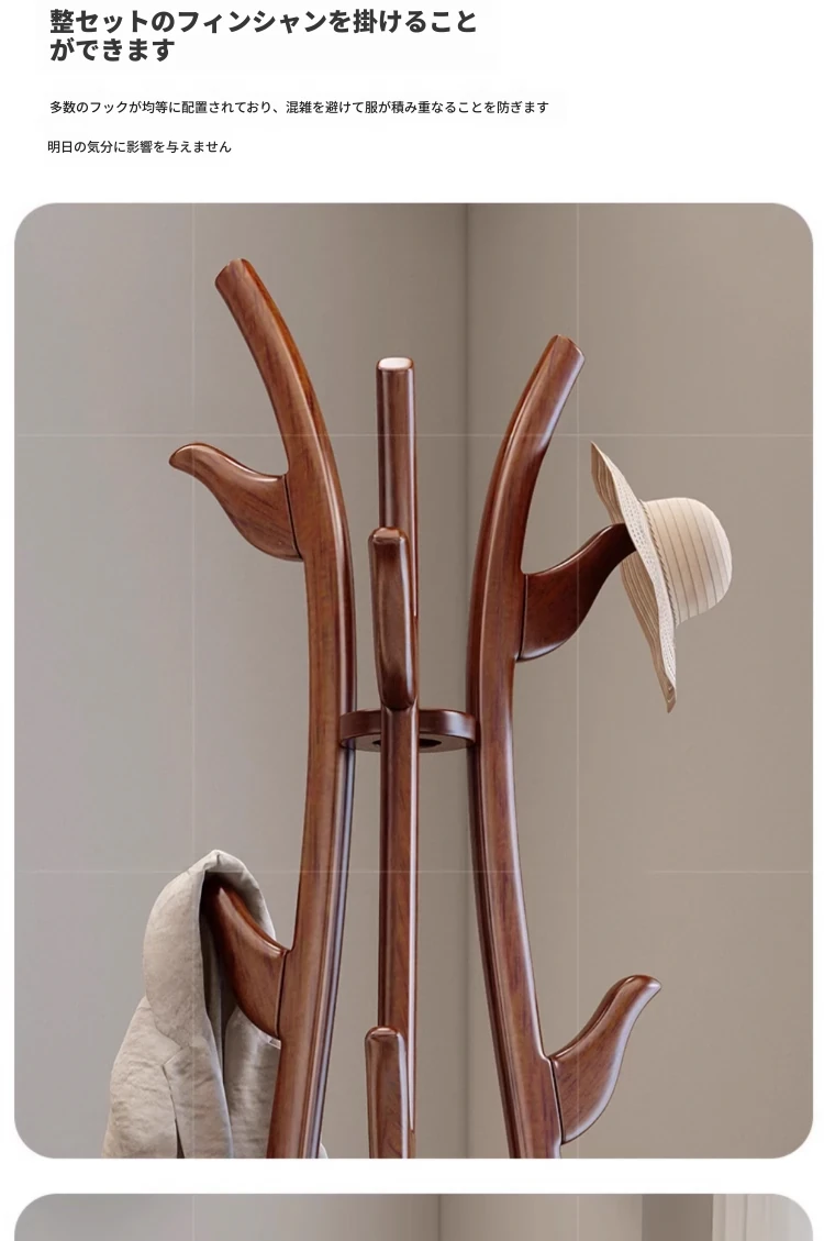 新中式スタイルの天然木製ハンガー、落地式・オフィス・寝室に最適!高さと太さをアップしたスタイリッシュなツリー型コートラックで、衣類を美しくディスプレイ!