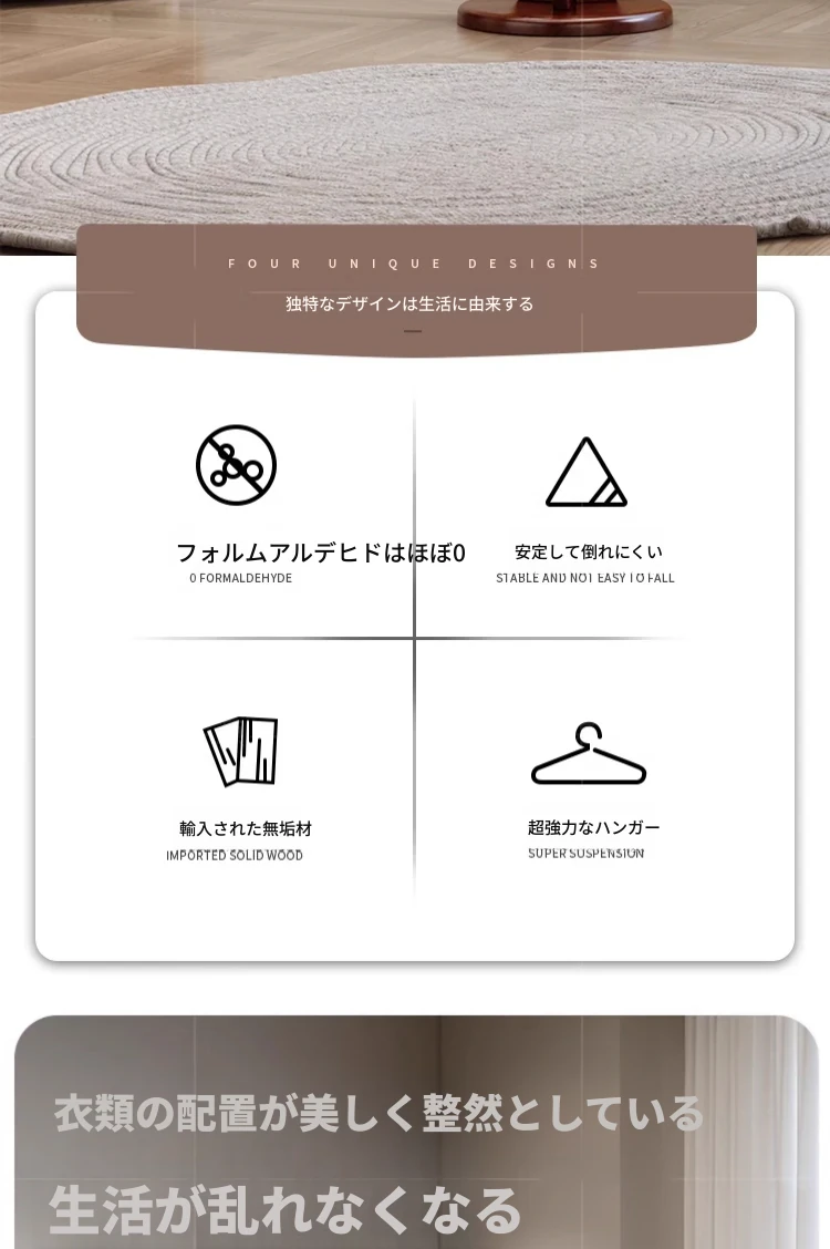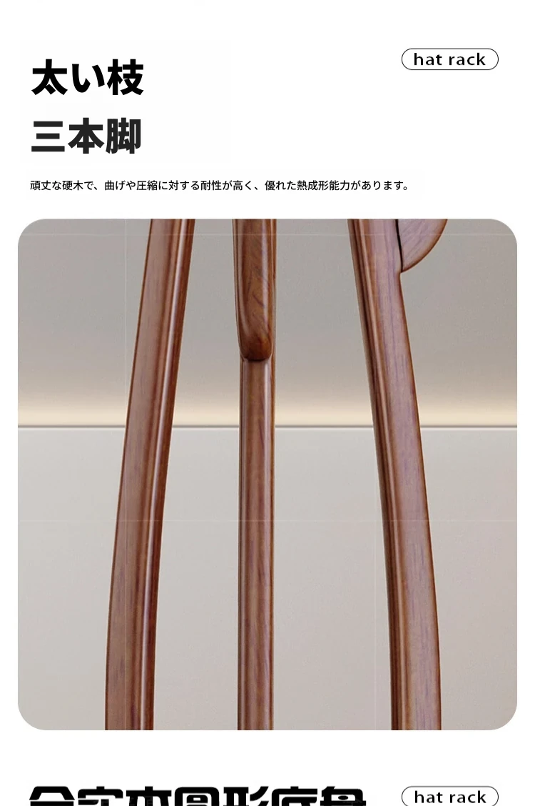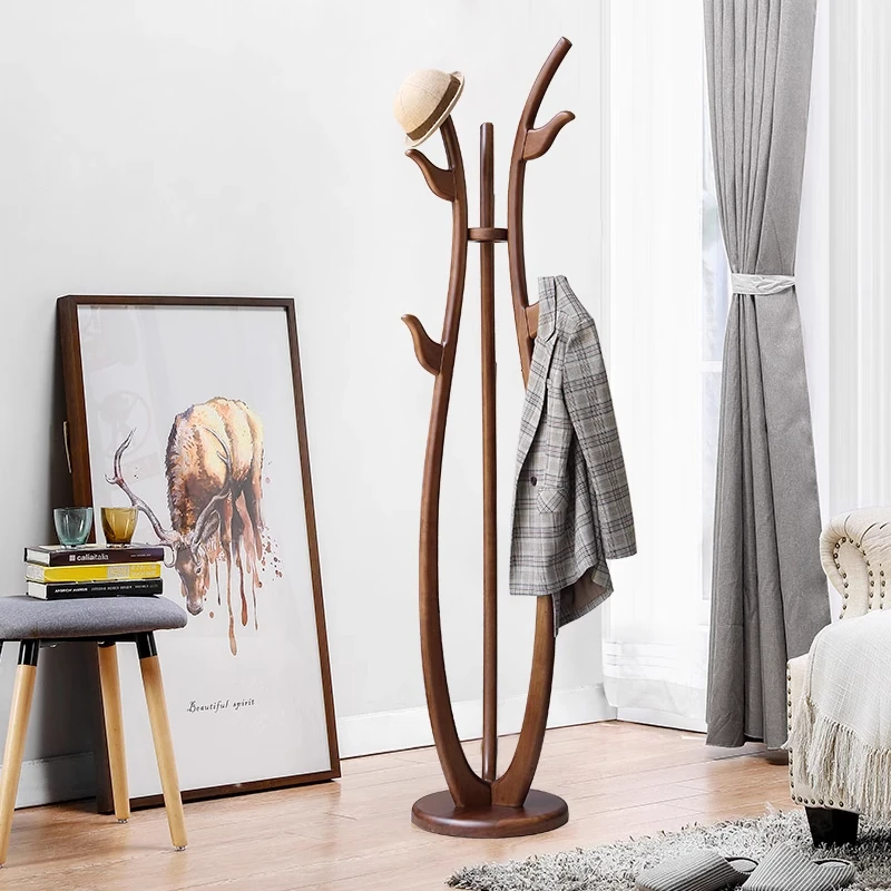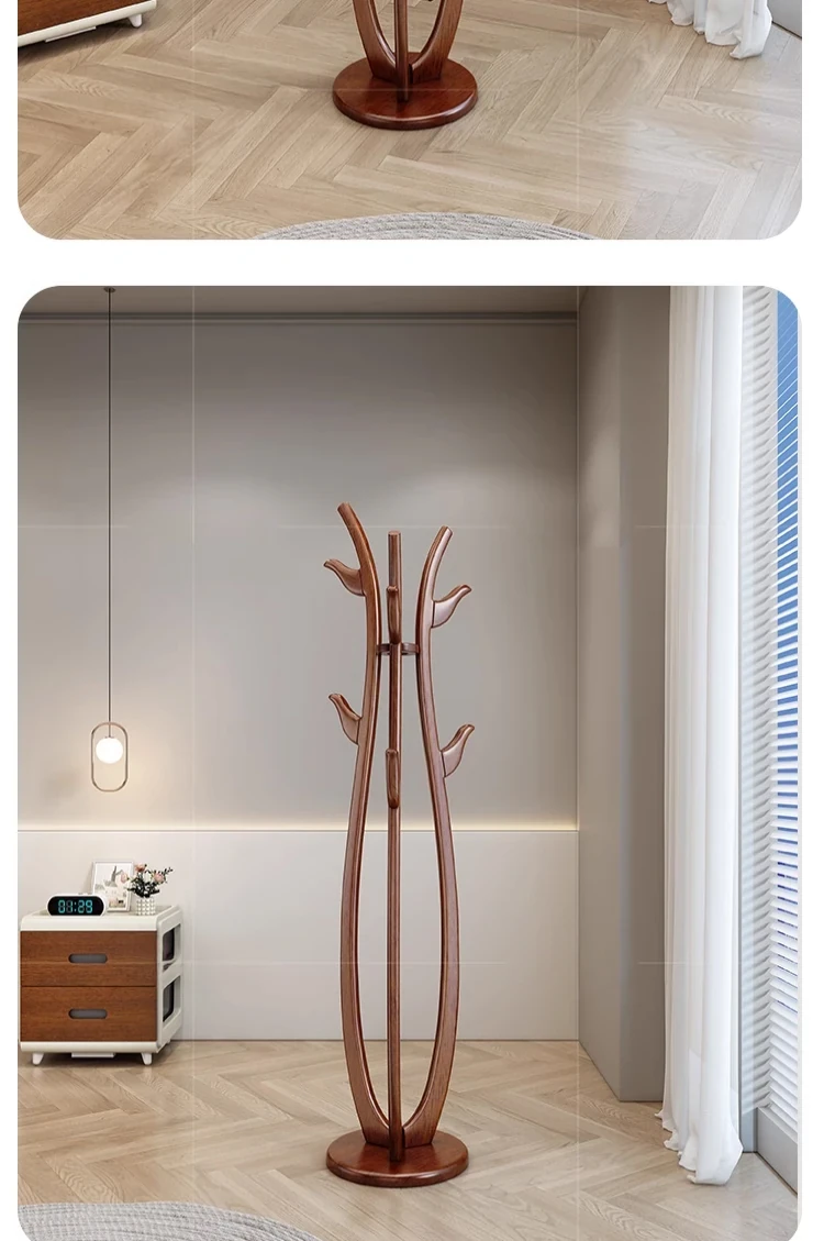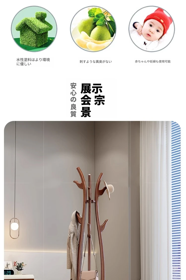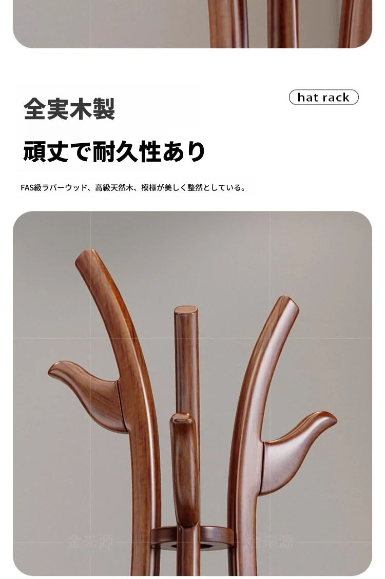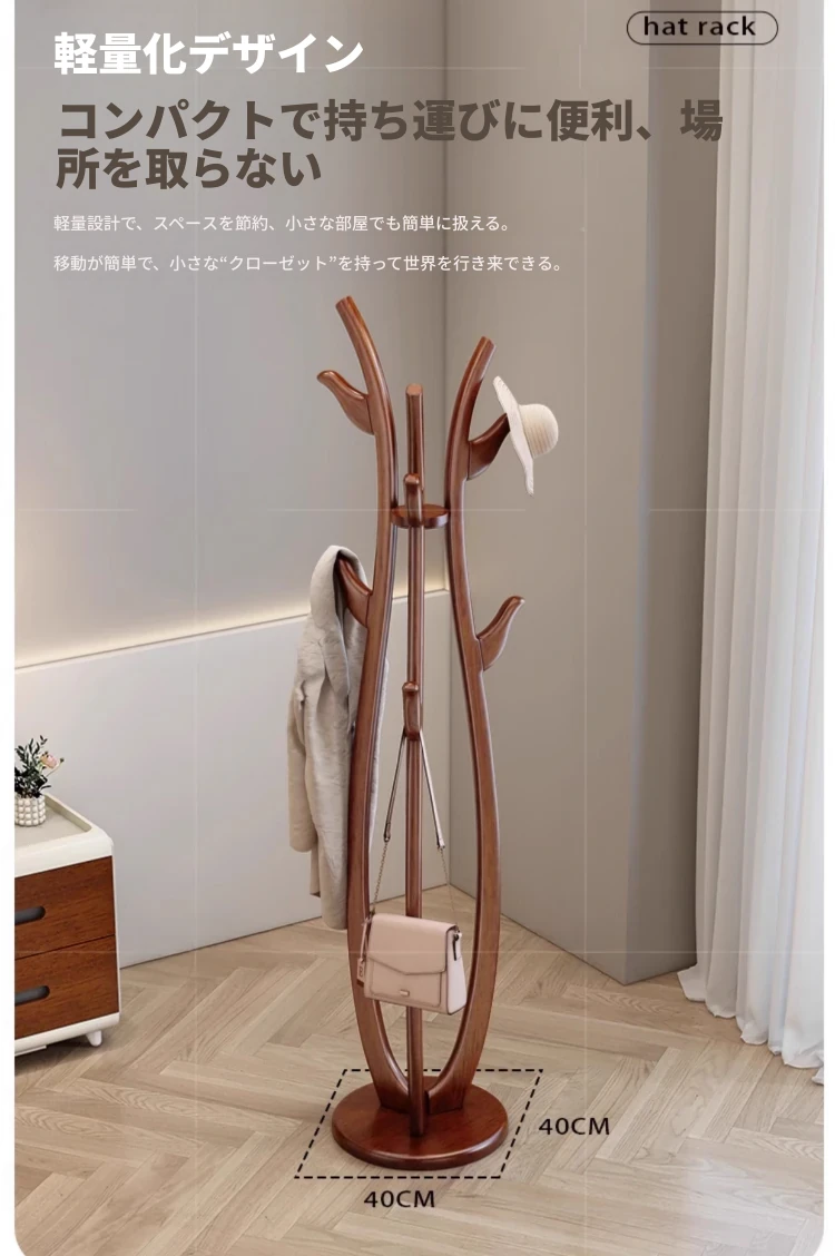 新中式スタイルの天然木製ハンガー、落地式・オフィス・寝室に最適!高さと太さをアップしたスタイリッシュなツリー型コートラックで、衣類を美しくディスプレイ!