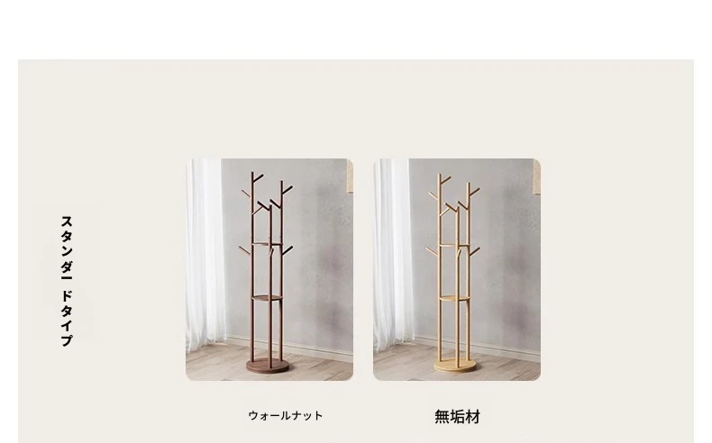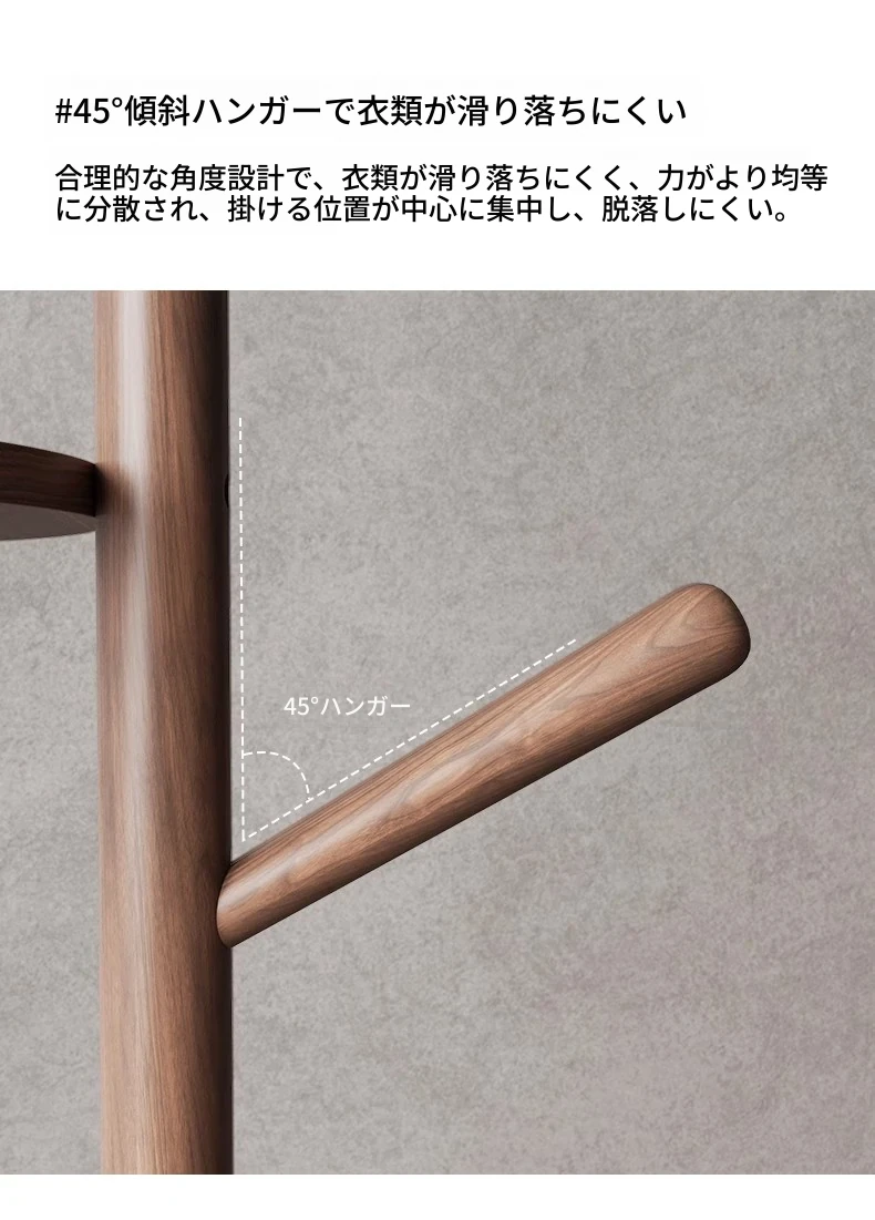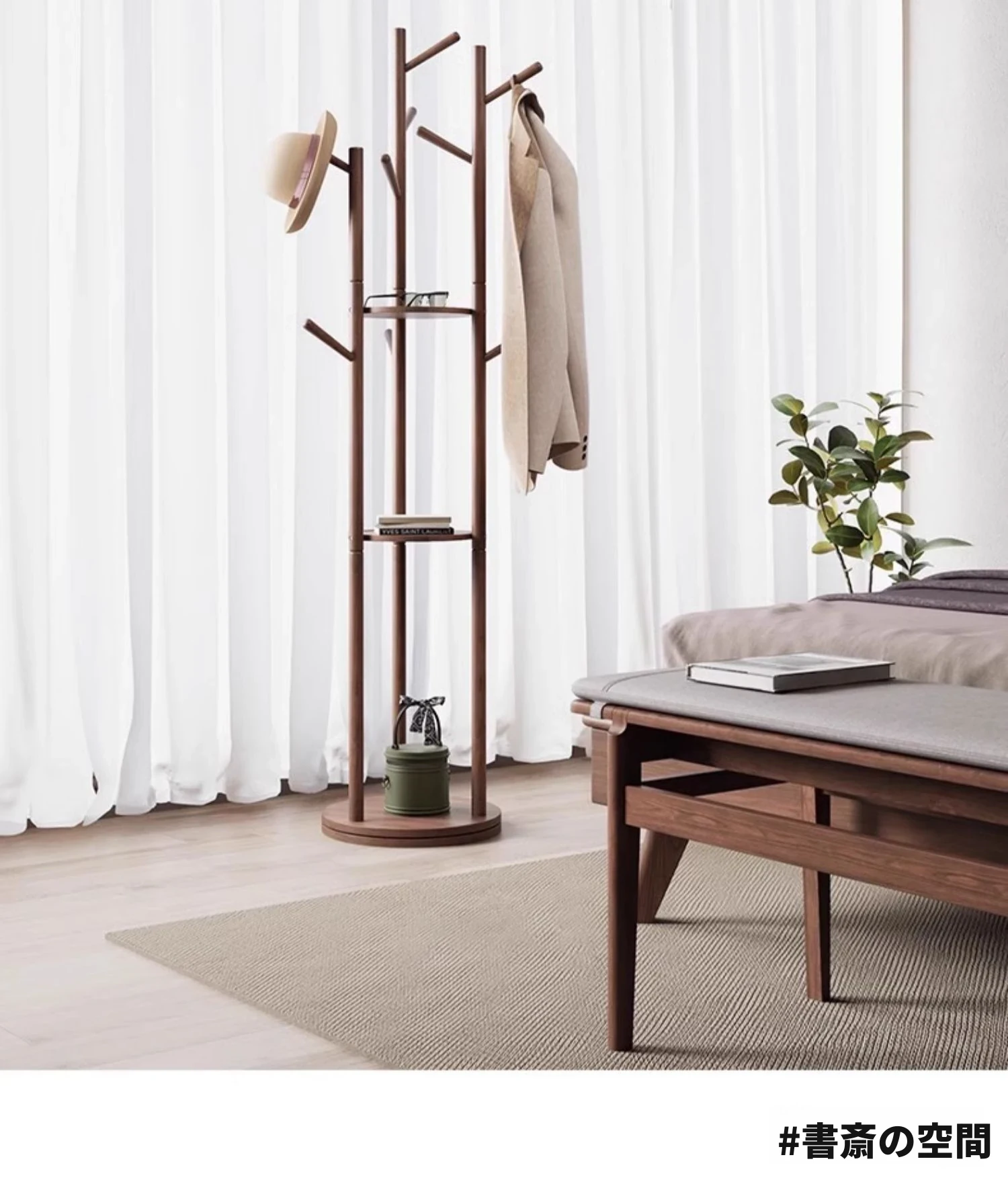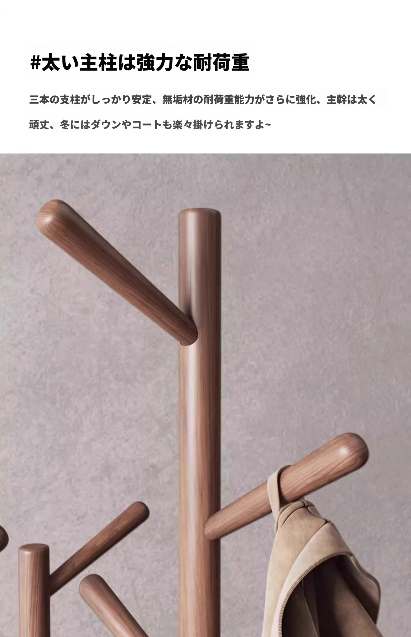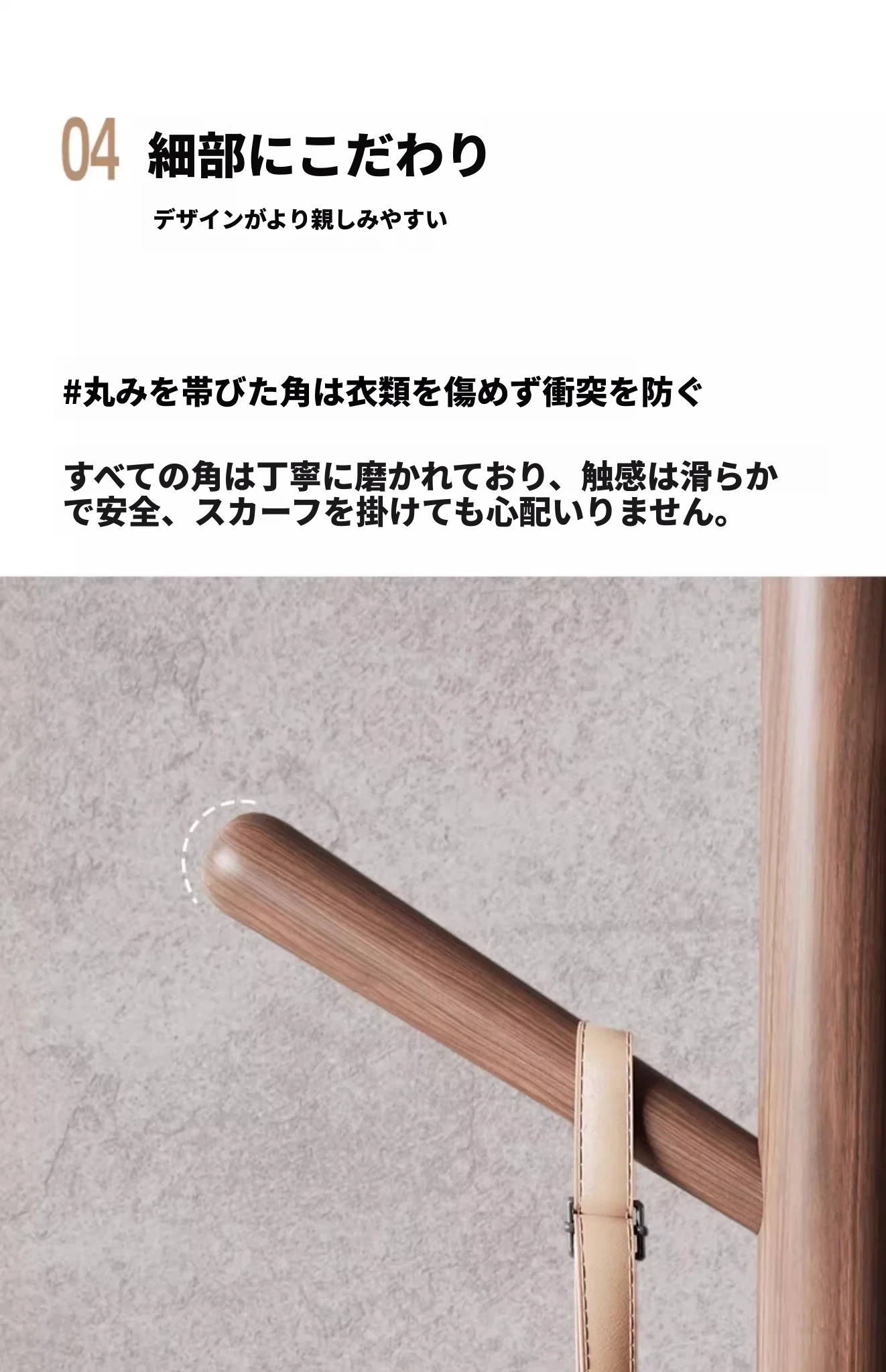 天然木製のスタンド型コートハンガー - おしゃれで機能的な衣類収納、寝室やリビングにぴったり!軽やかなデザインで、あなたの空間をスタイリッシュに演出します。