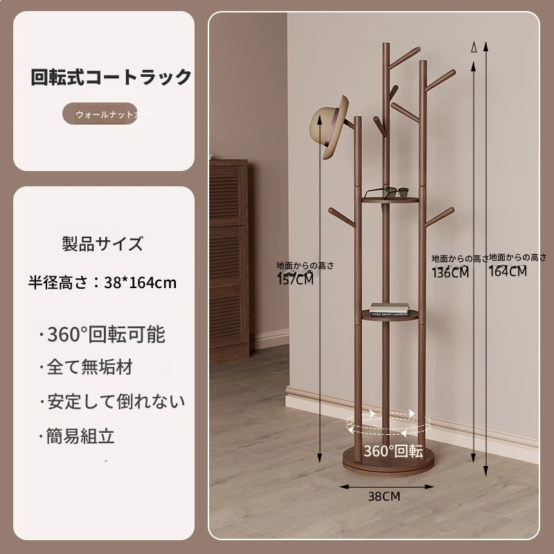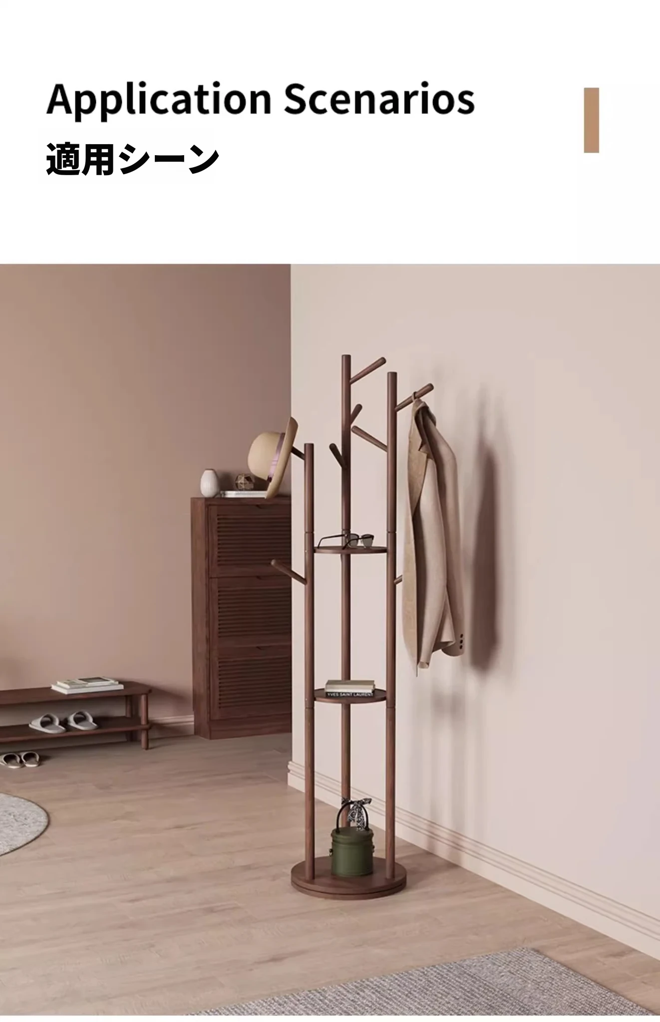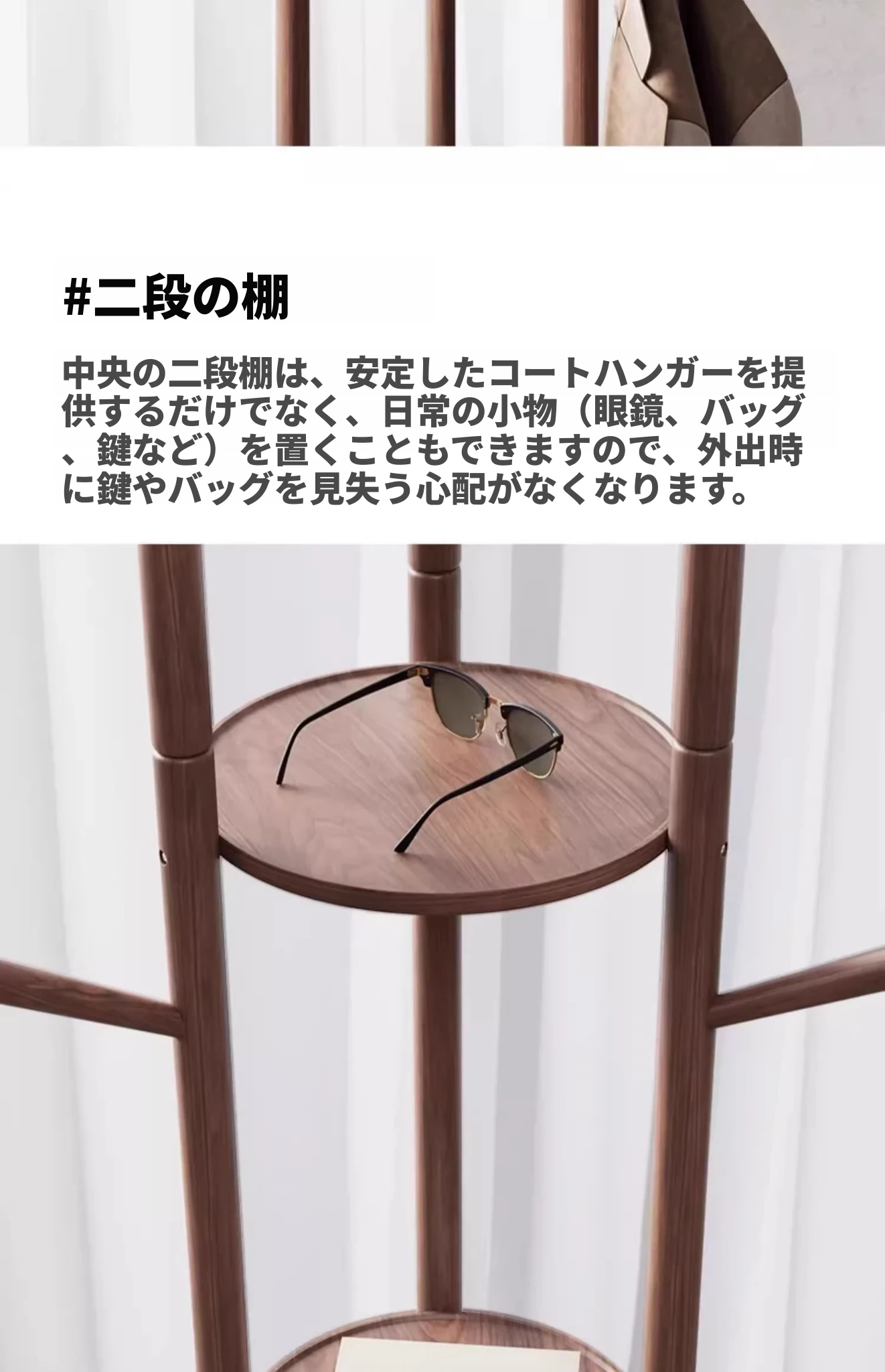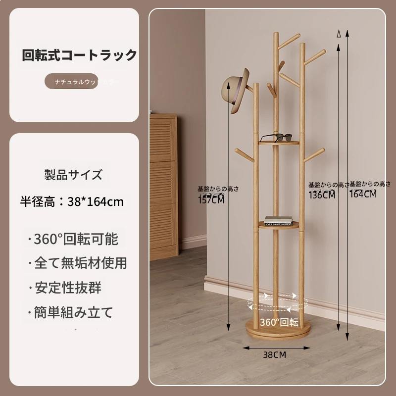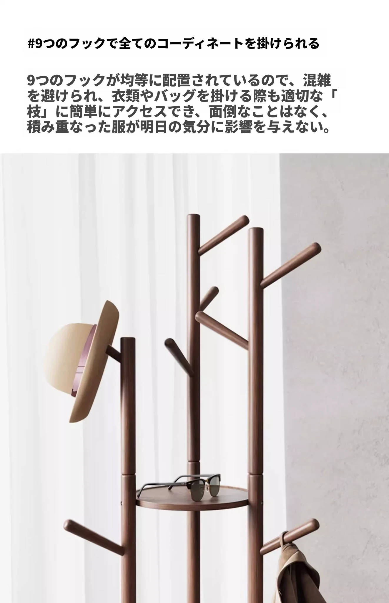 天然木製のスタンド型コートハンガー - おしゃれで機能的な衣類収納、寝室やリビングにぴったり!軽やかなデザインで、あなたの空間をスタイリッシュに演出します。
