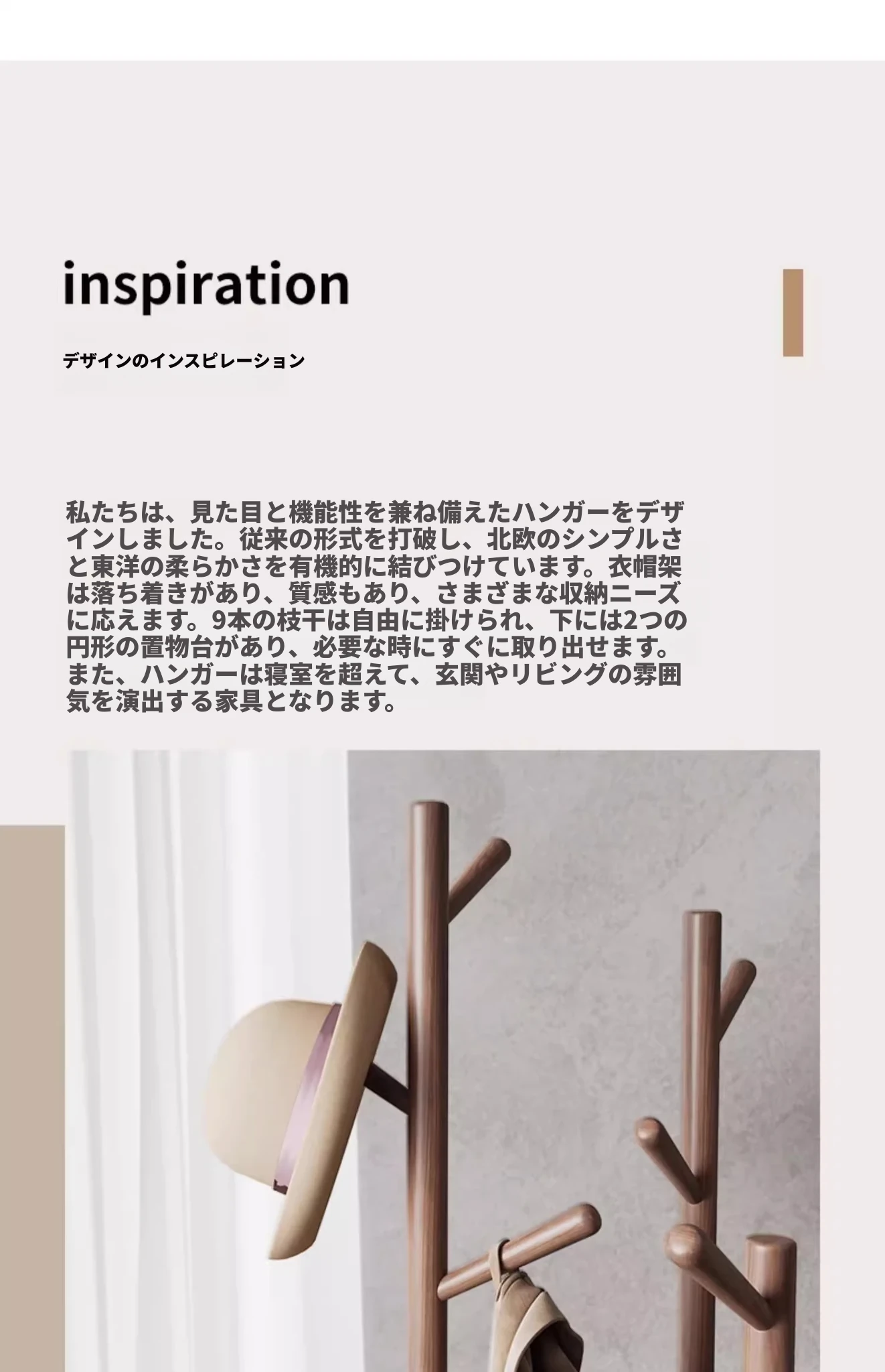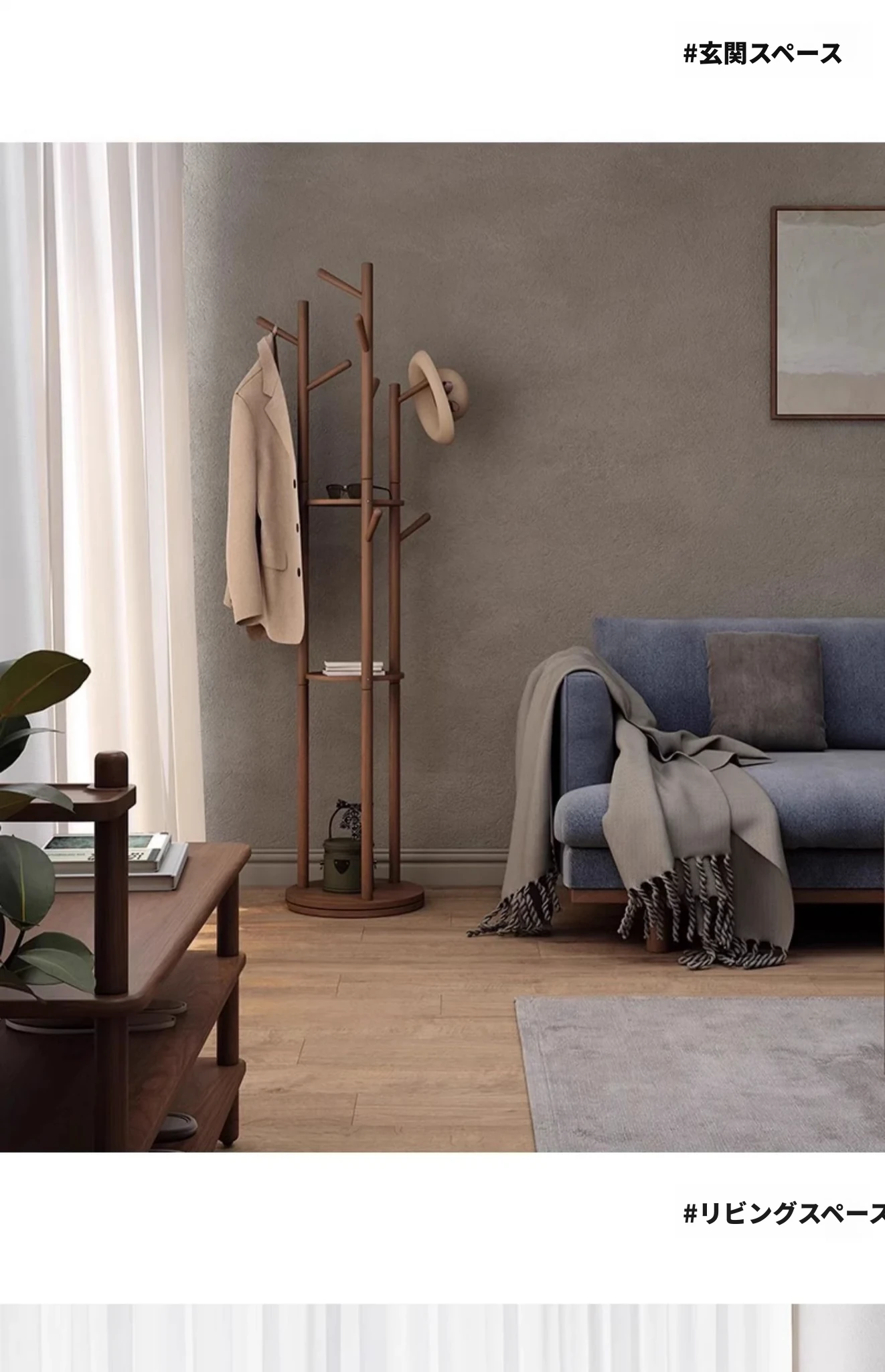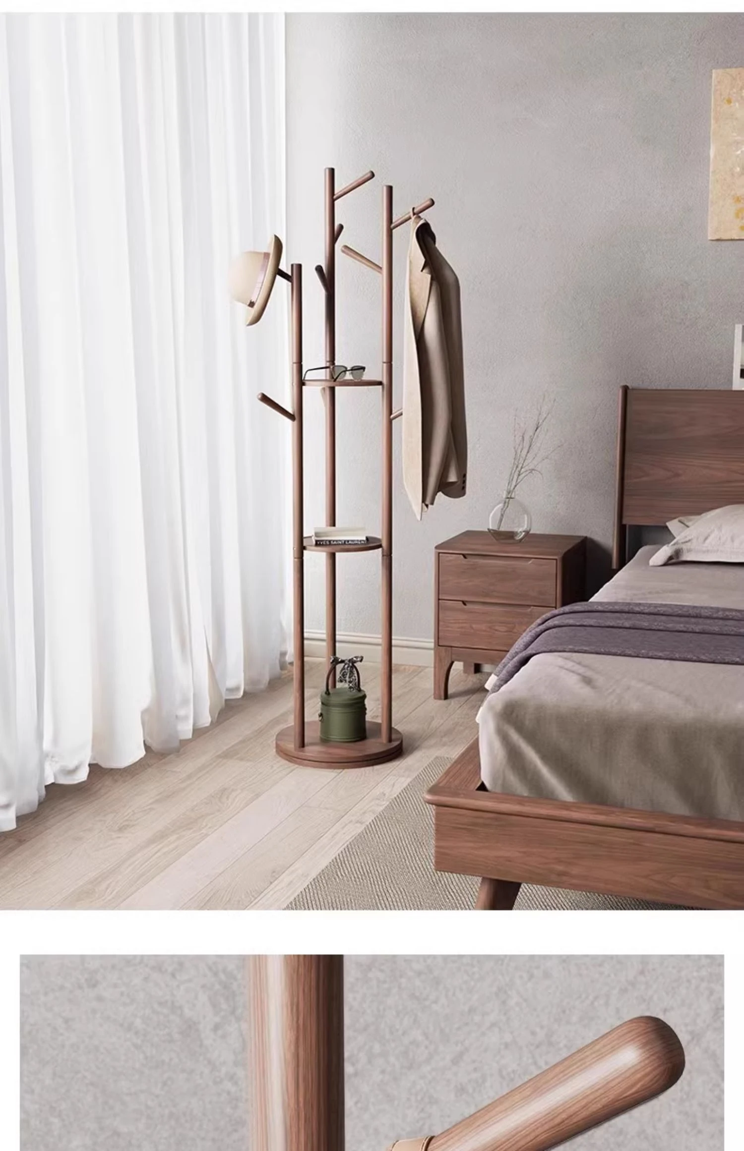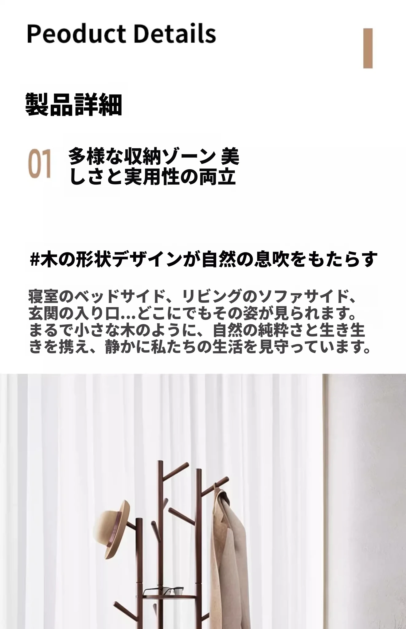 天然木製のスタンド型コートハンガー - おしゃれで機能的な衣類収納、寝室やリビングにぴったり!軽やかなデザインで、あなたの空間をスタイリッシュに演出します。
