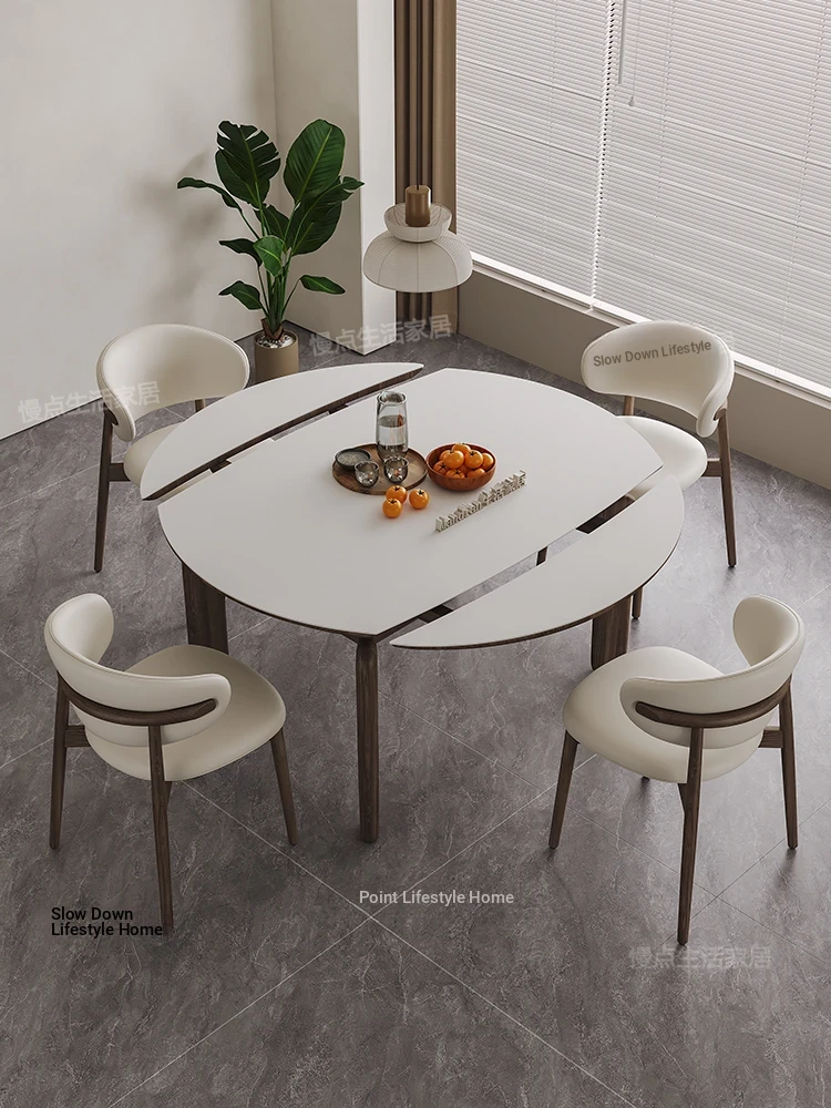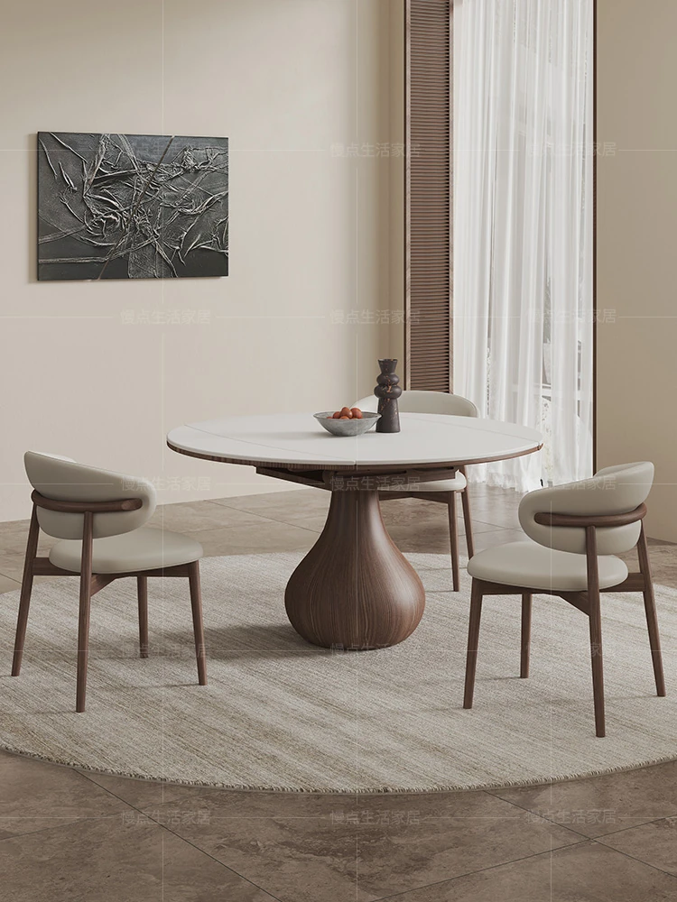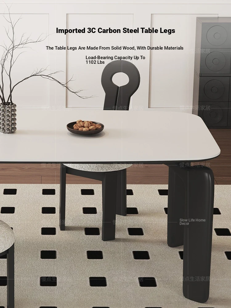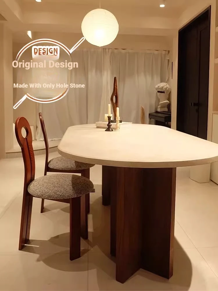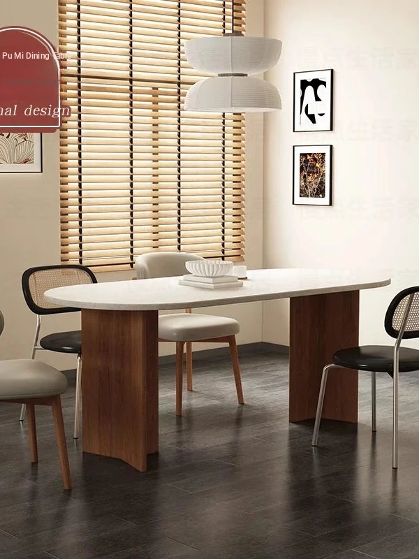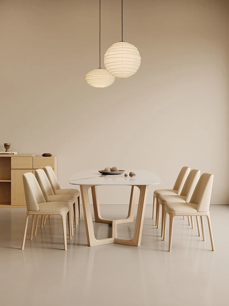 Nordic Solid Wood Rectangular Dining Table - Modern Minimalist Light Luxury with Walnut Finish and Matte Ash Wood, Featuring Elegant Stone Top for Home Use