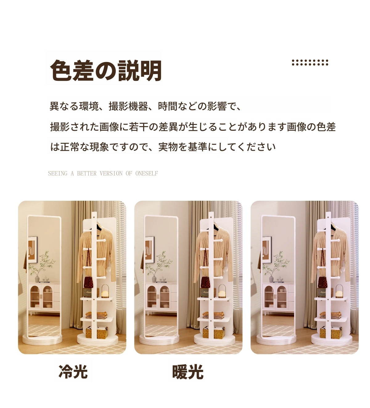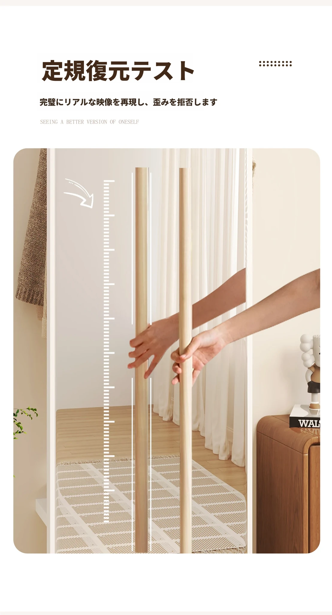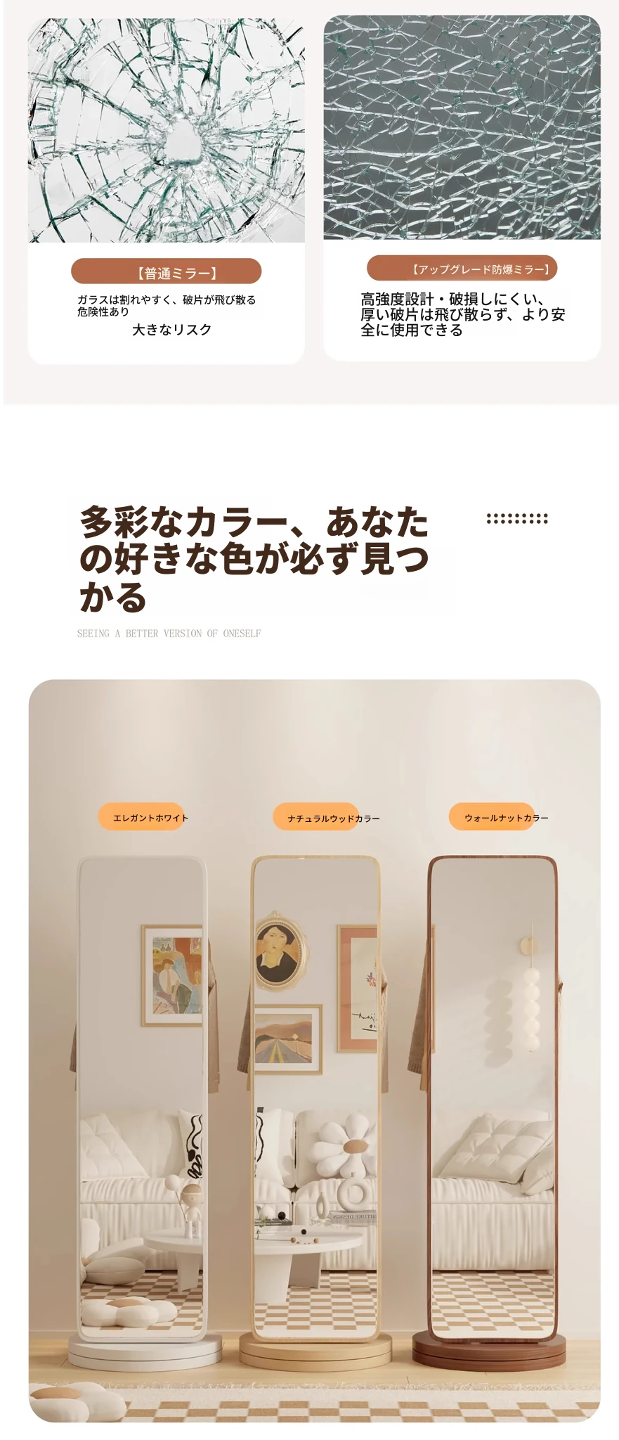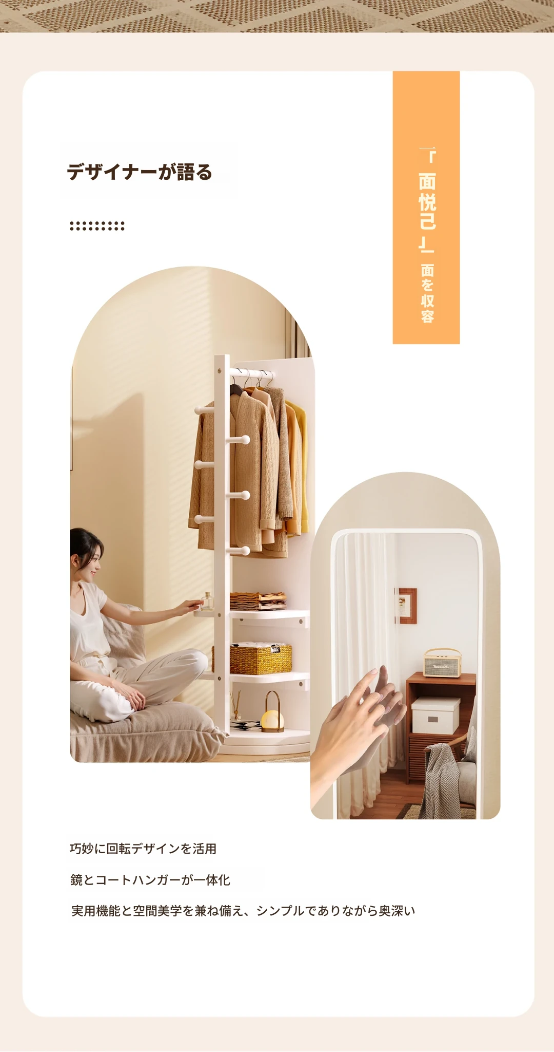 高品質の無垢材全身鏡!回転式で移動も簡単、衣類ハンガー付きの便利な試着ミラー。寝室やリビングにぴったり、スタイリッシュなデザインでおしゃれを楽しもう!