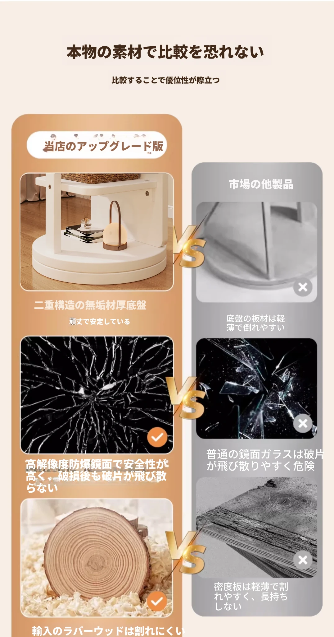 輸入無垢材【大サイズ二段】回転式-ナチュラルカラー 破損補償