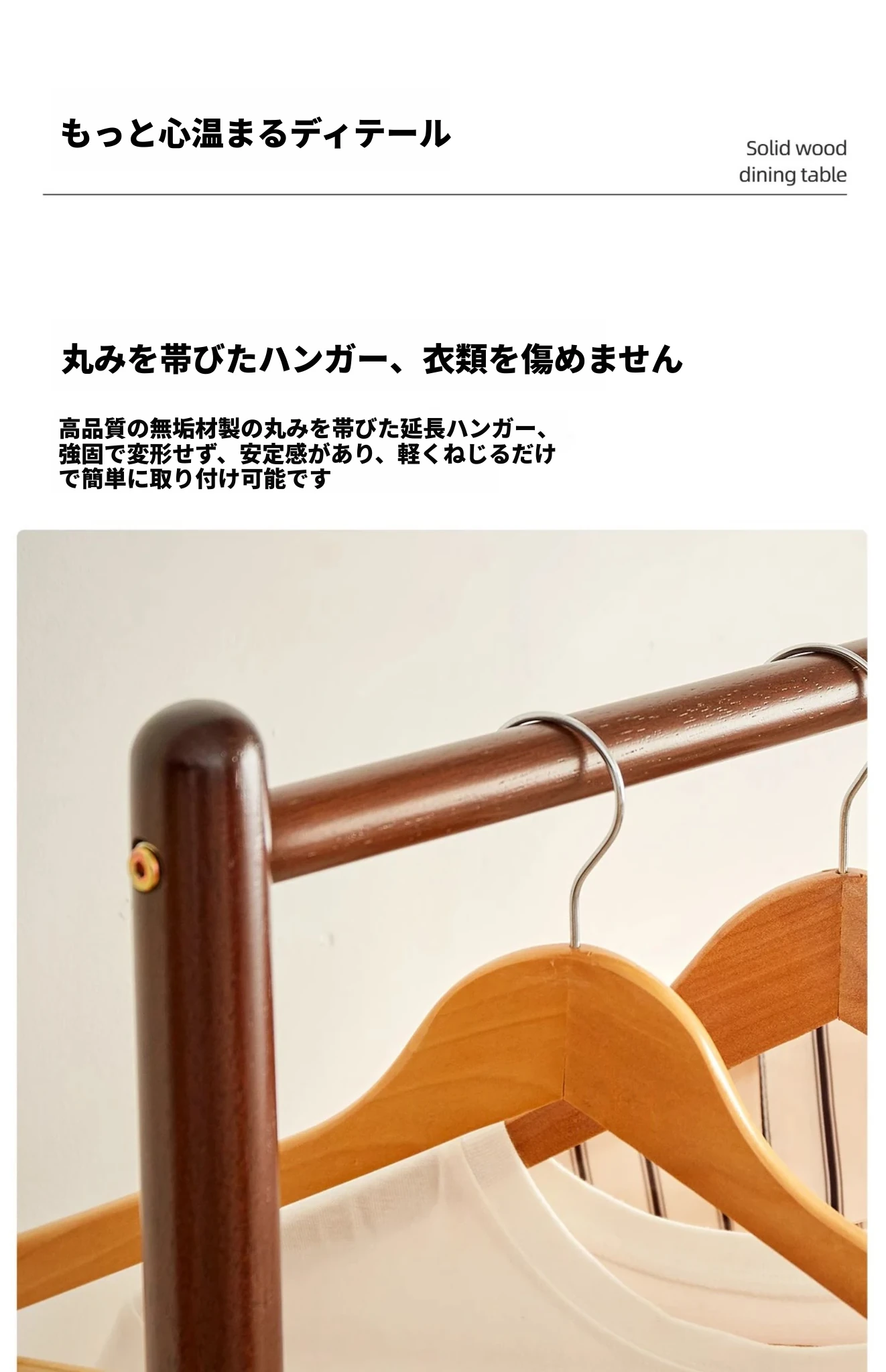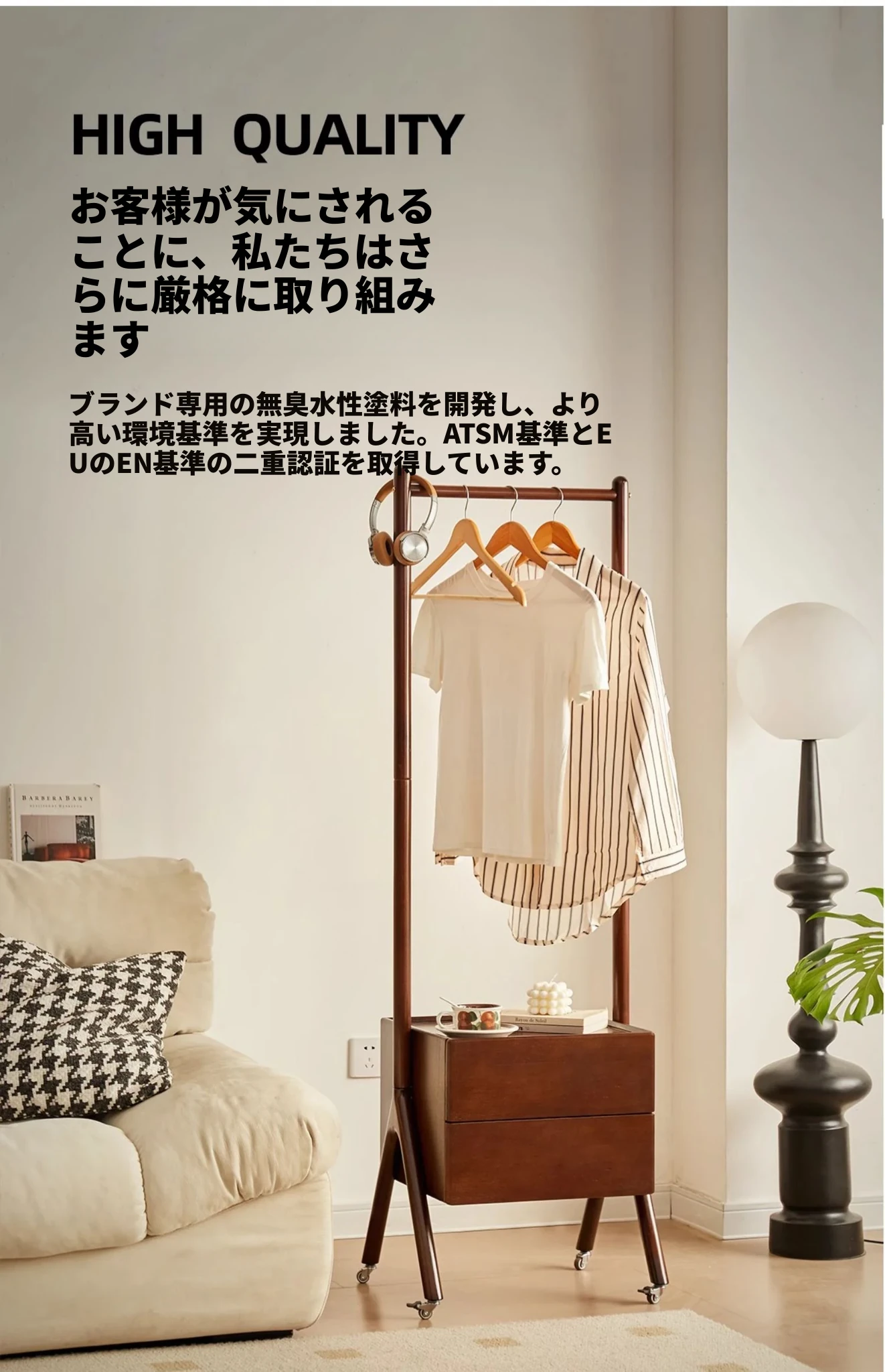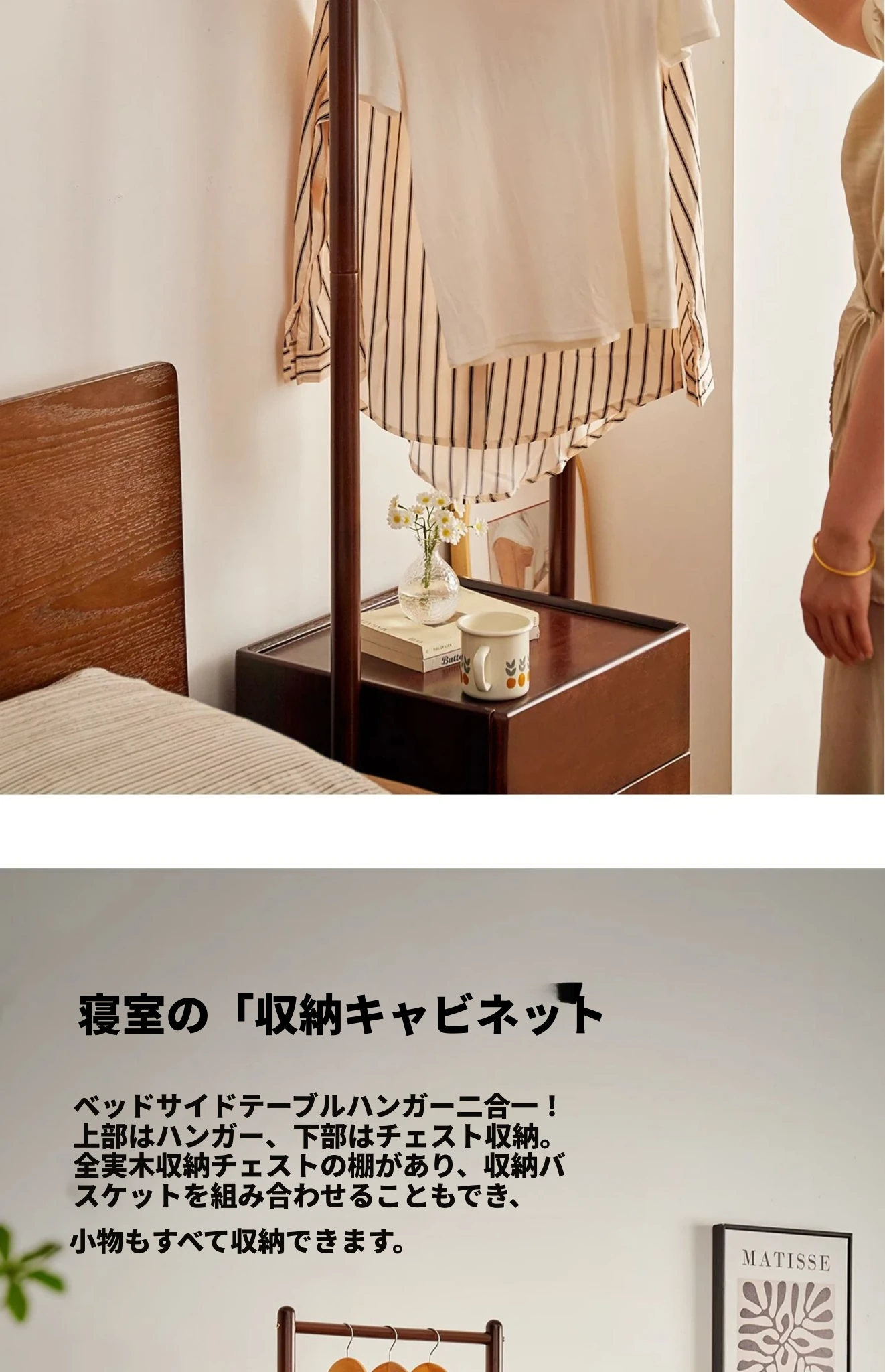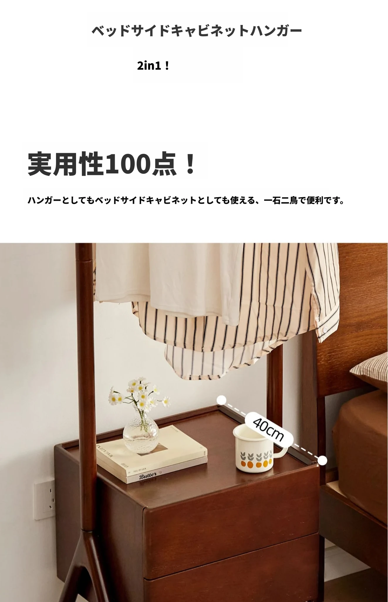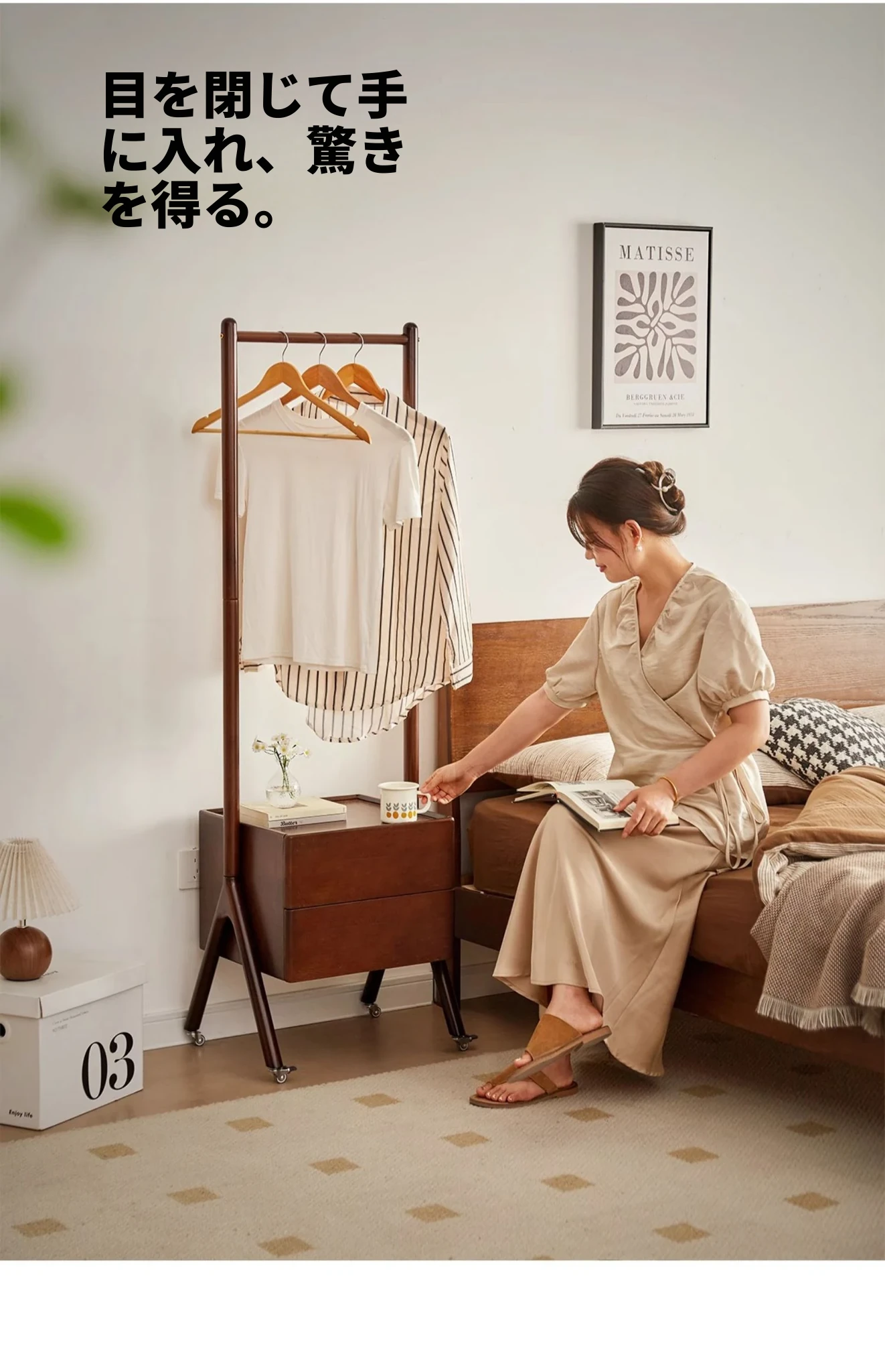 天然のブナ材使用!スタイリッシュな衣類ハンガーとナイトテーブル一体型。落ち着いたデザインで、寝室にぴったりの室内衣類乾燥ラック。家族みんなの衣類をすっきり収納!