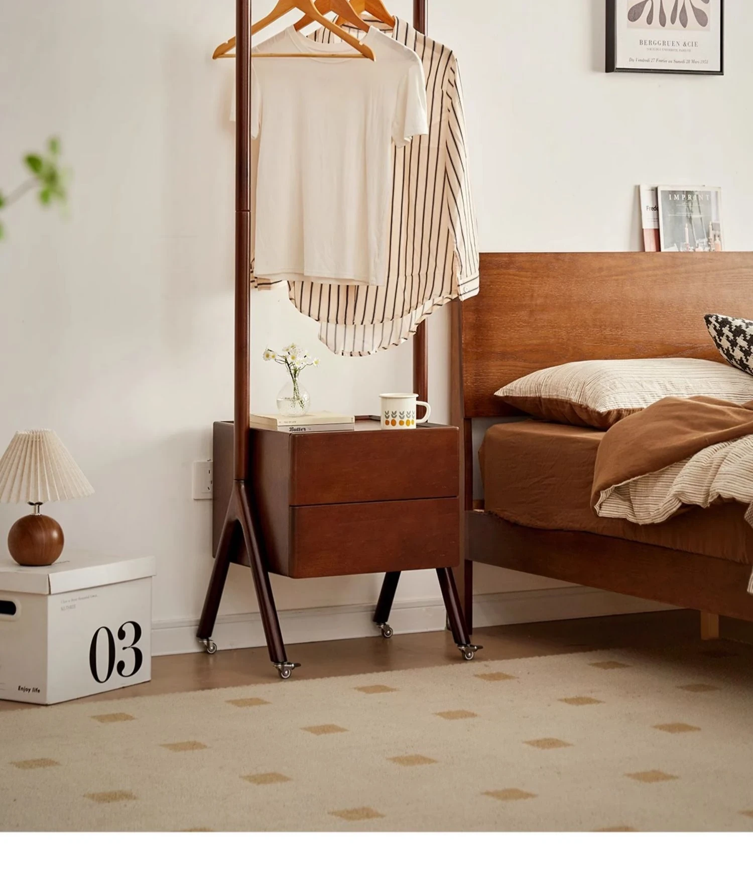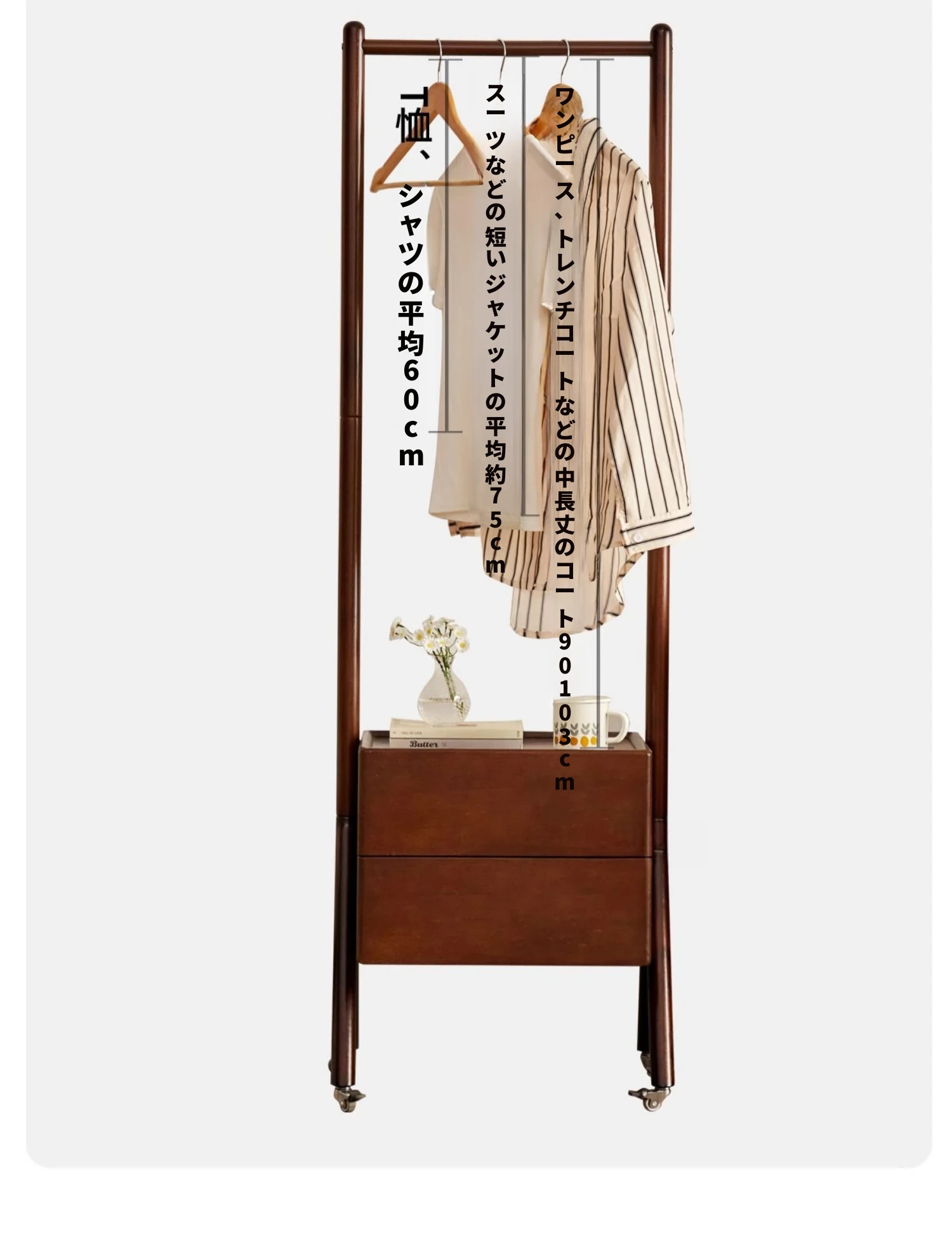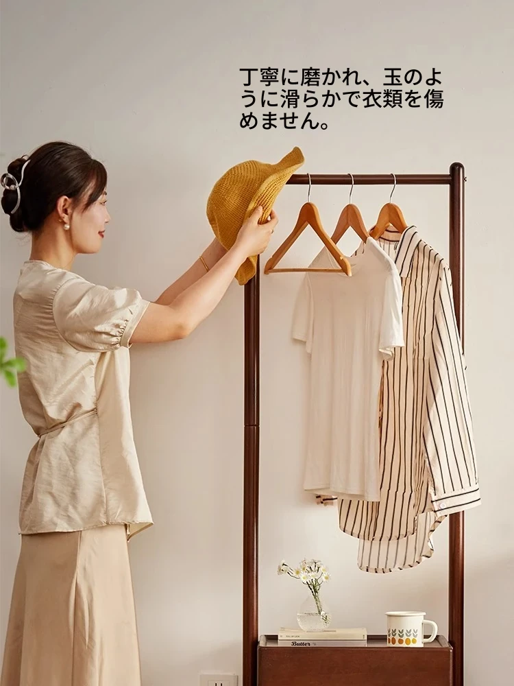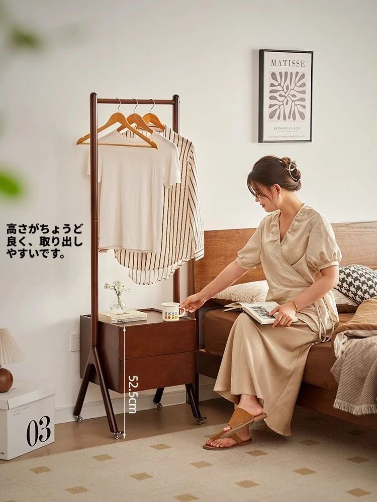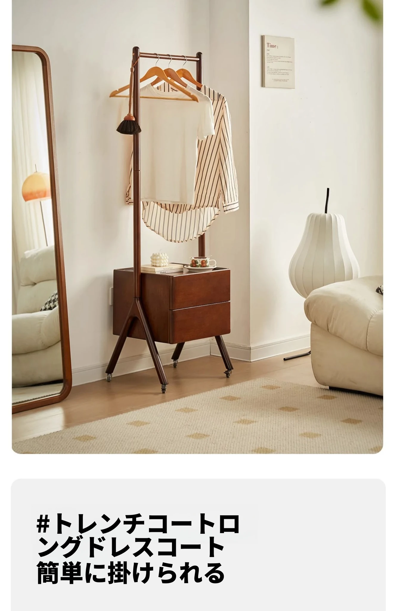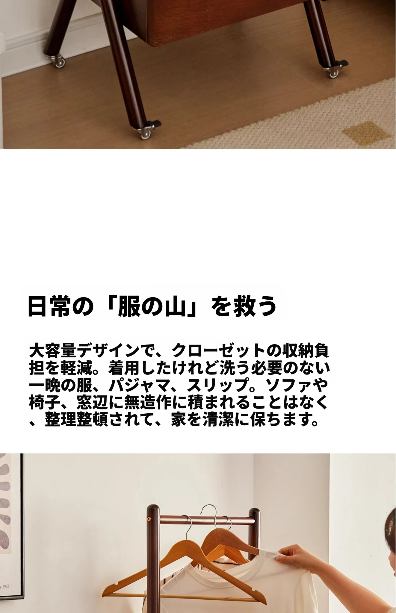 天然のブナ材使用!スタイリッシュな衣類ハンガーとナイトテーブル一体型。落ち着いたデザインで、寝室にぴったりの室内衣類乾燥ラック。家族みんなの衣類をすっきり収納!
