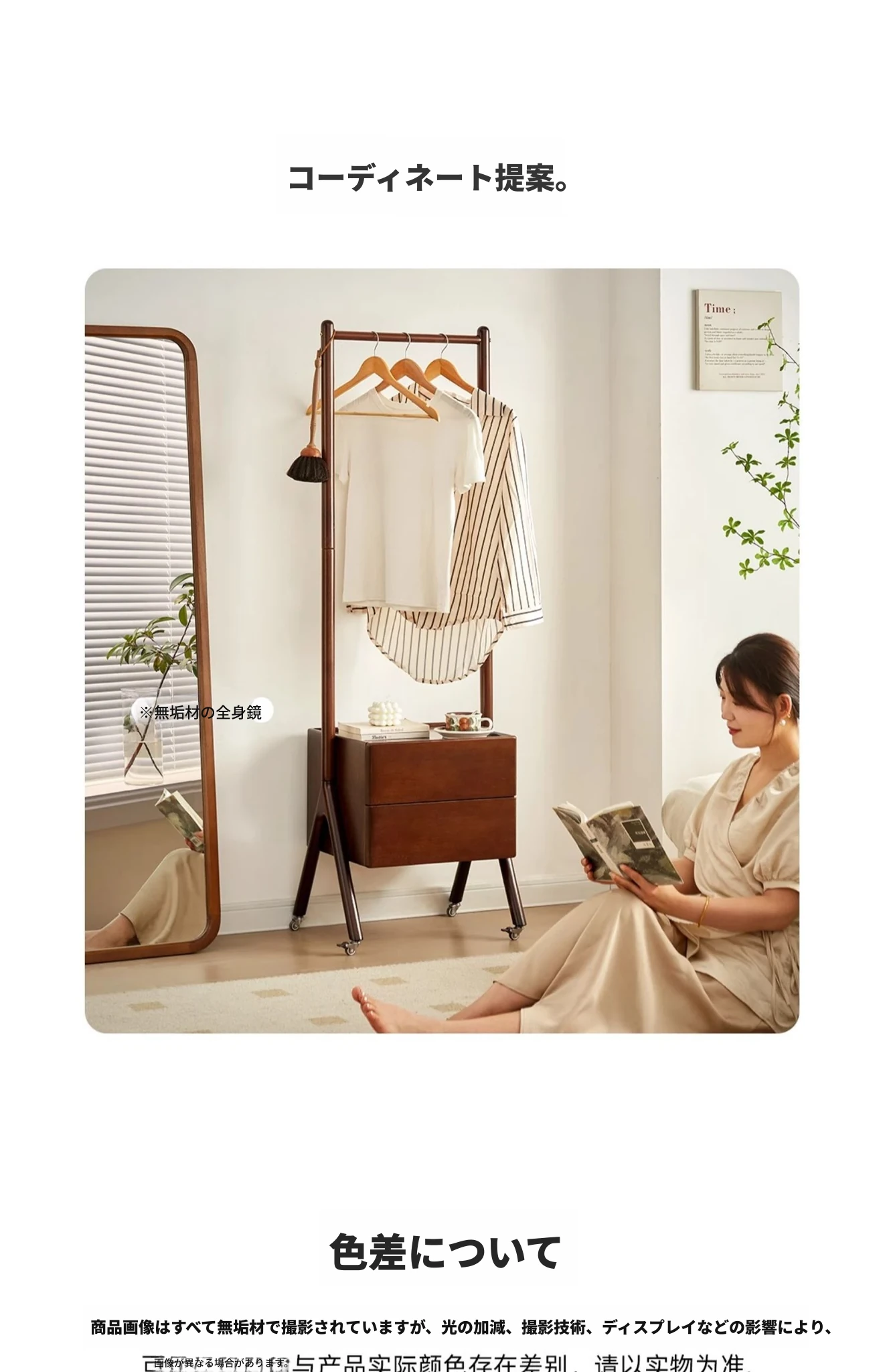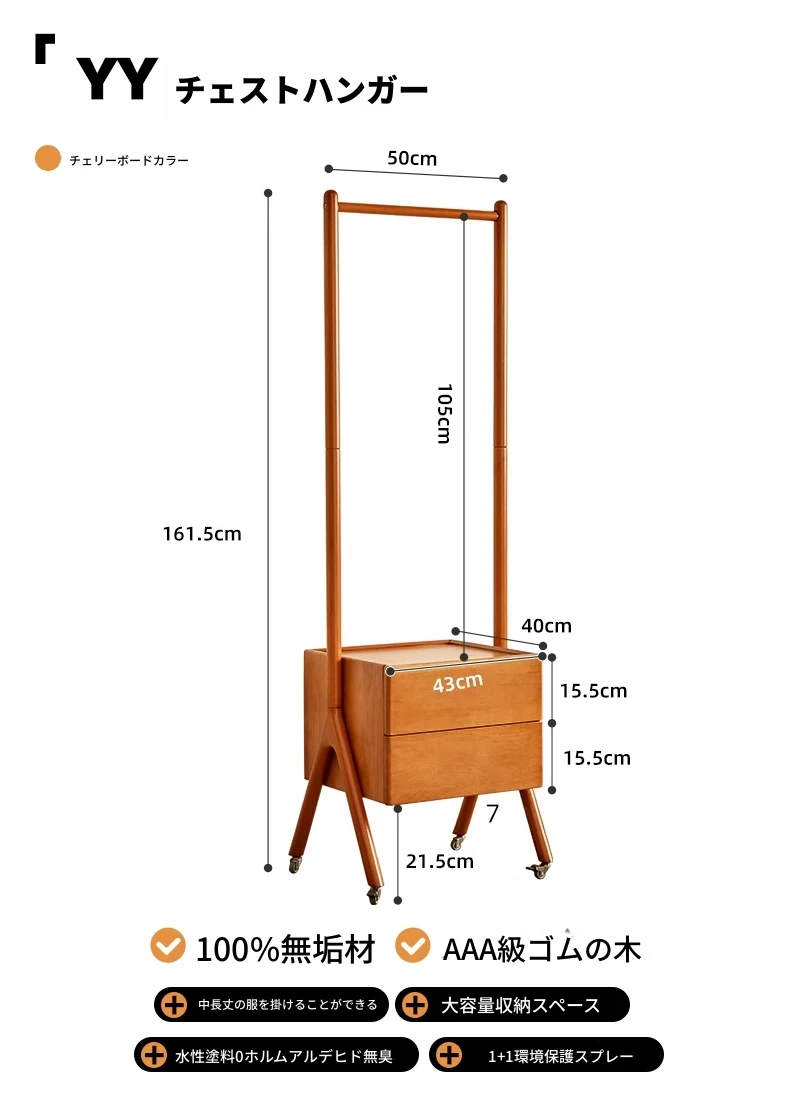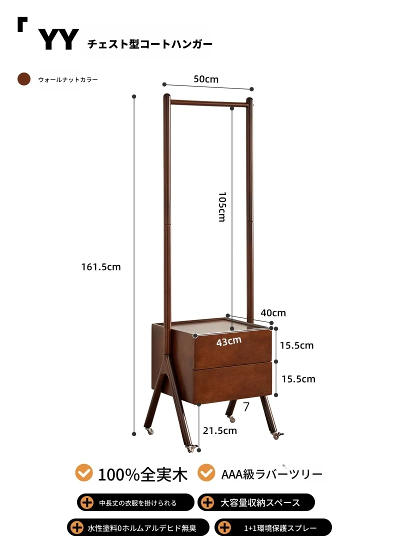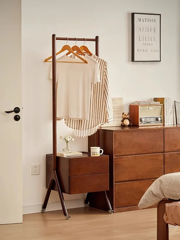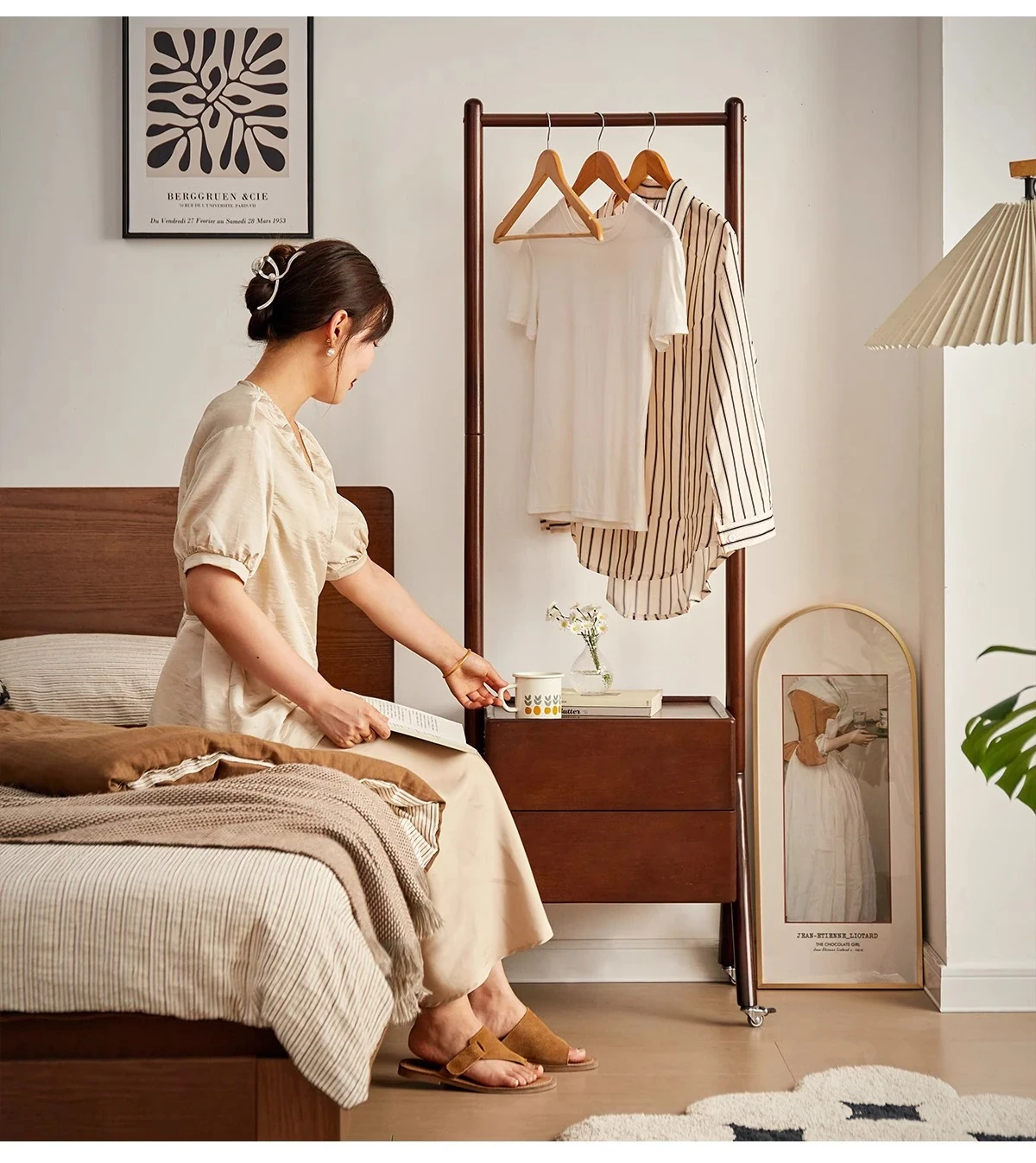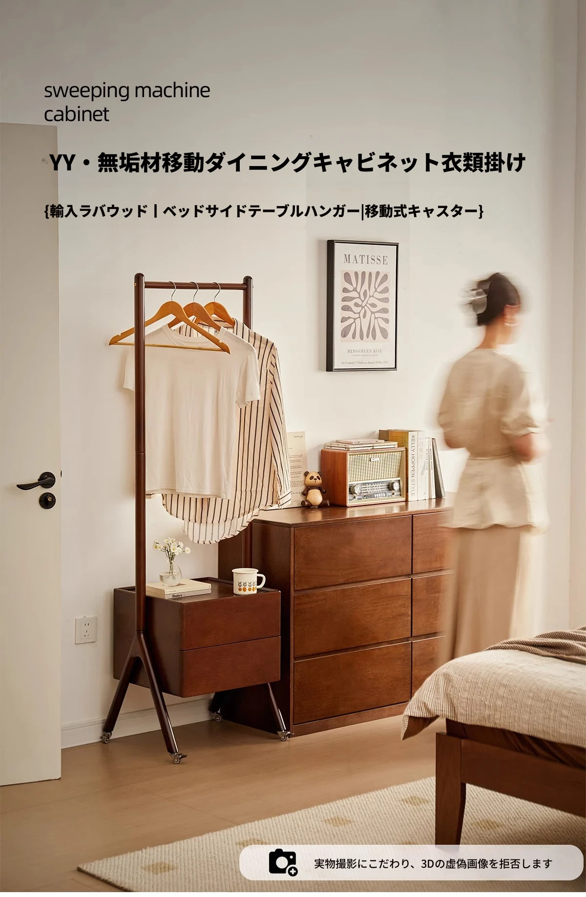 天然のブナ材使用!スタイリッシュな衣類ハンガーとナイトテーブル一体型。落ち着いたデザインで、寝室にぴったりの室内衣類乾燥ラック。家族みんなの衣類をすっきり収納!
