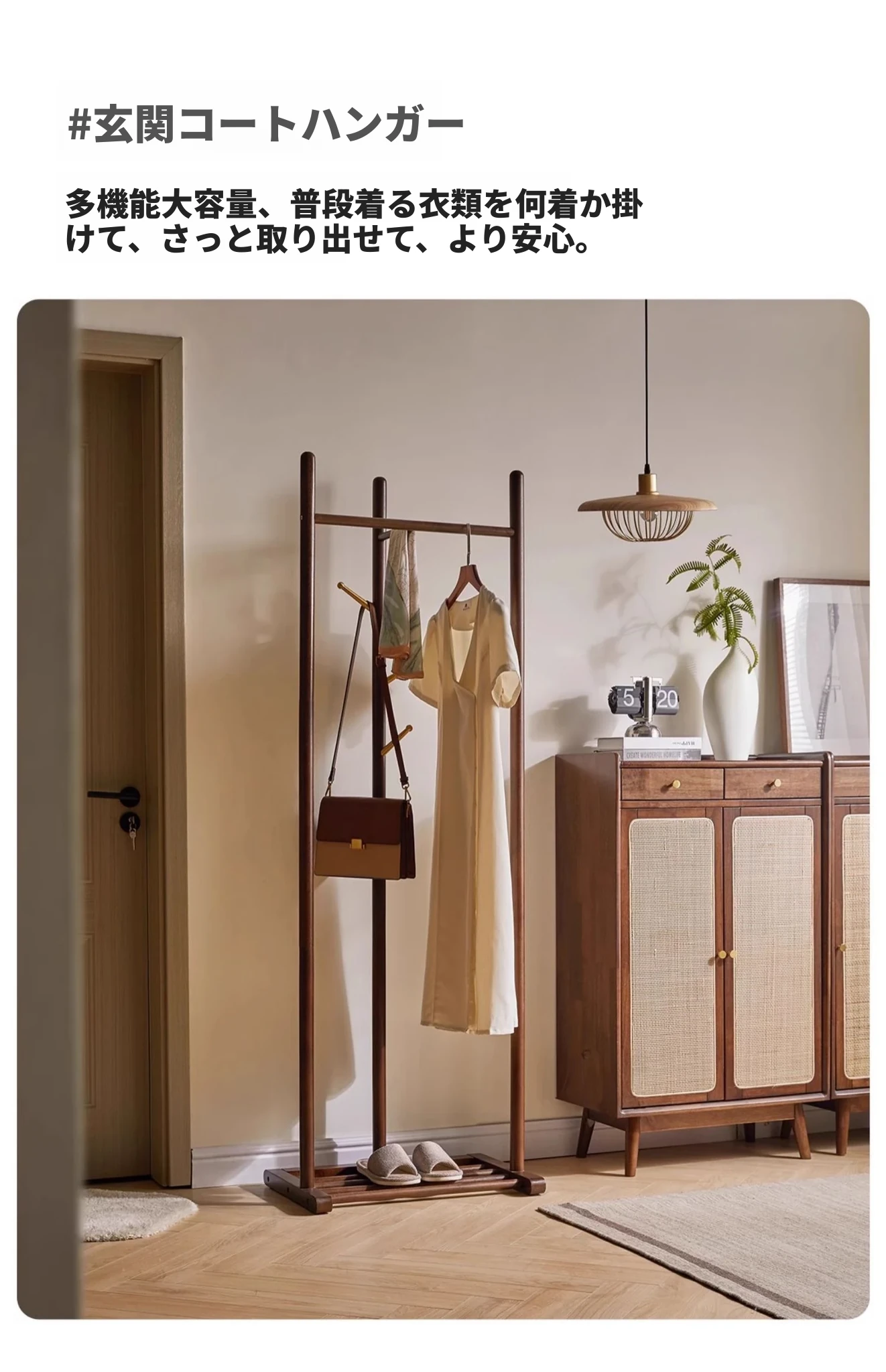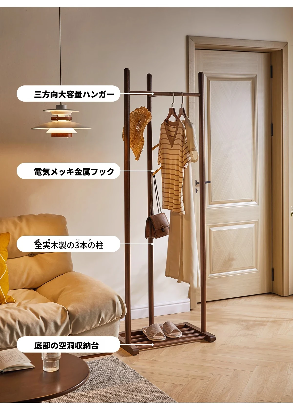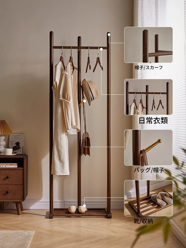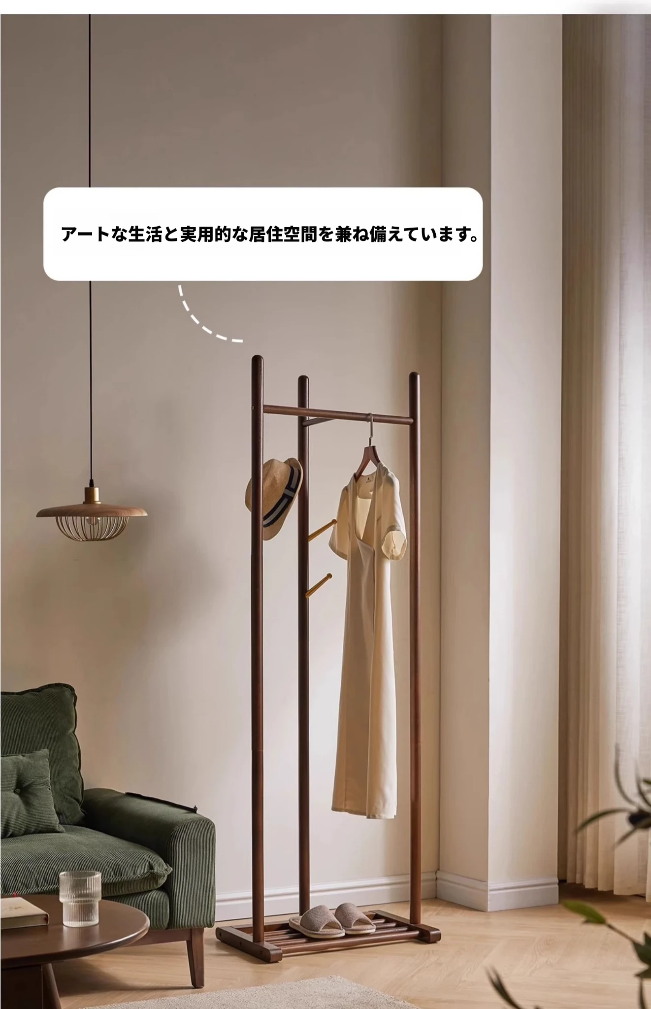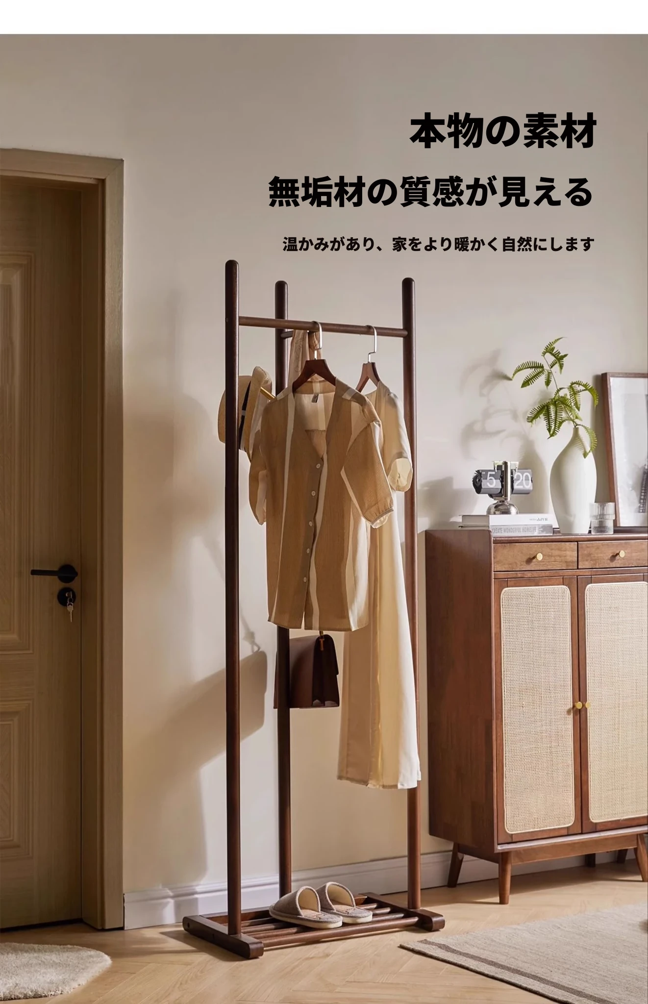 天然木製のハンガーラック|おしゃれな角型コートスタンド|寝室やリビングに最適|衣類の収納とディスプレイに便利なマルチユース|ベッドサイドにぴったりな衣類整理の必需品!