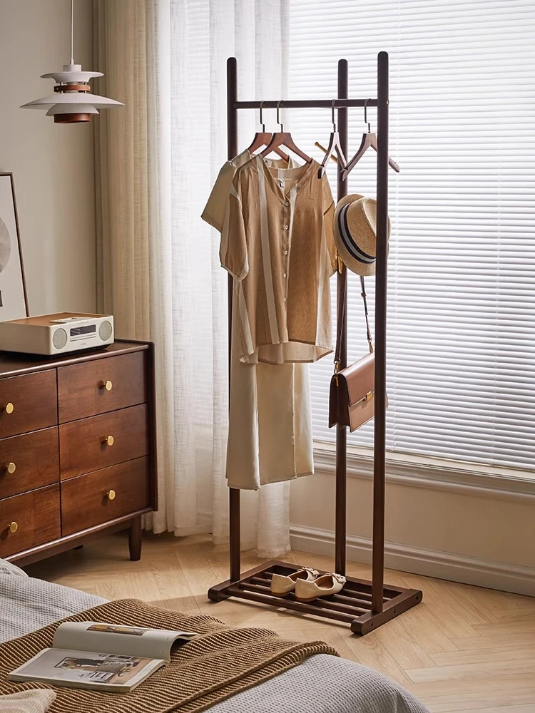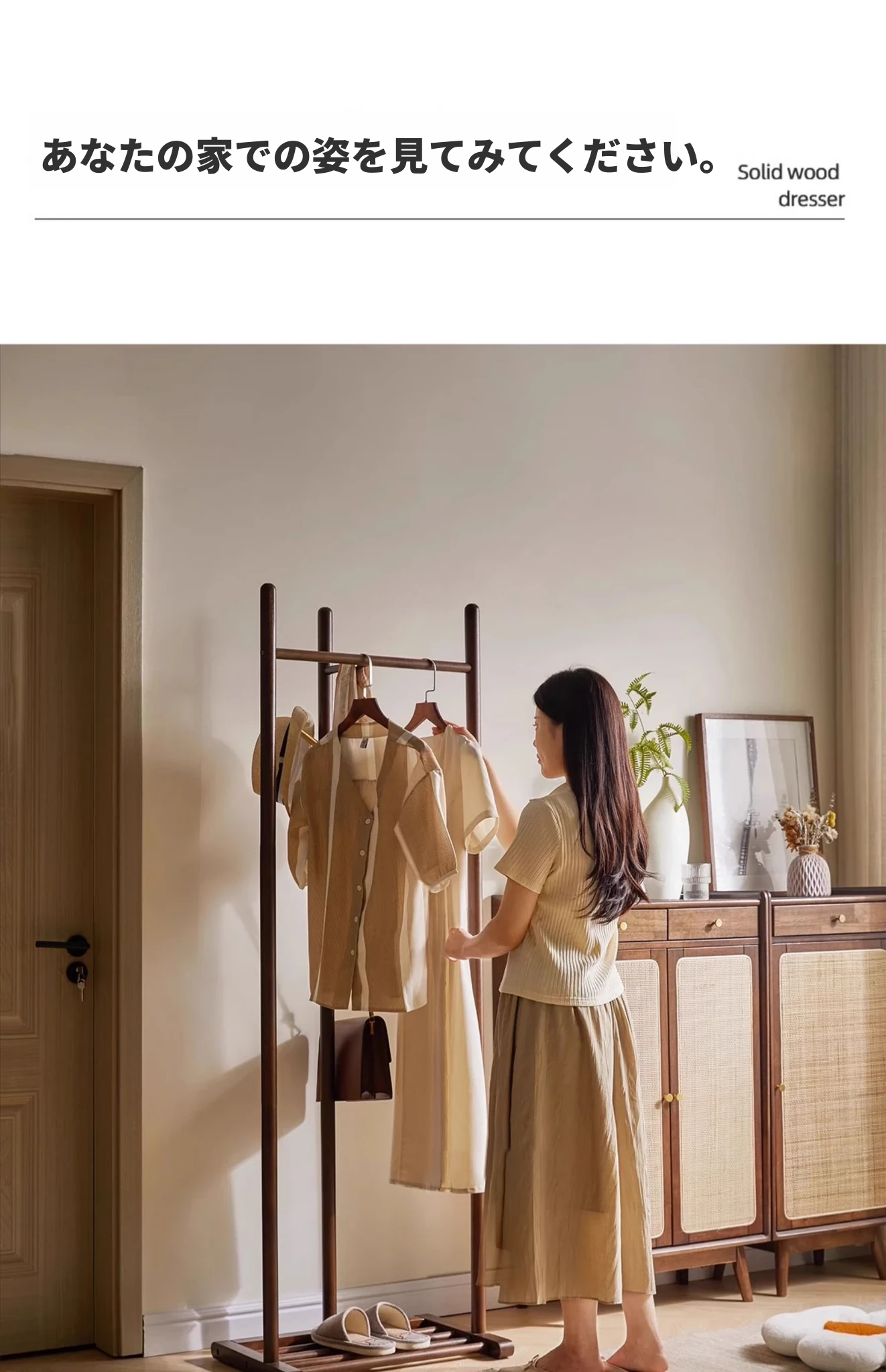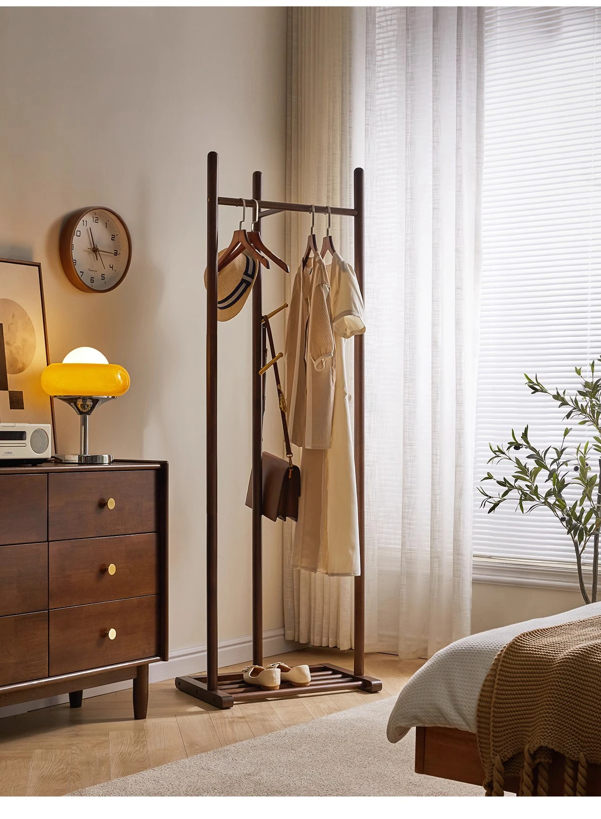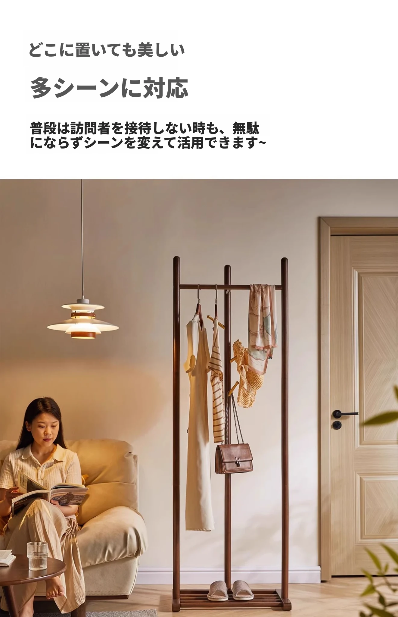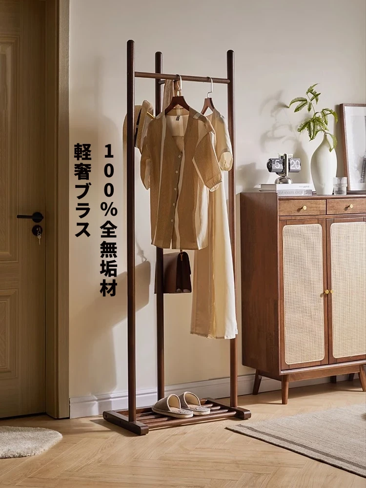 天然木製のハンガーラック|おしゃれな角型コートスタンド|寝室やリビングに最適|衣類の収納とディスプレイに便利なマルチユース|ベッドサイドにぴったりな衣類整理の必需品!