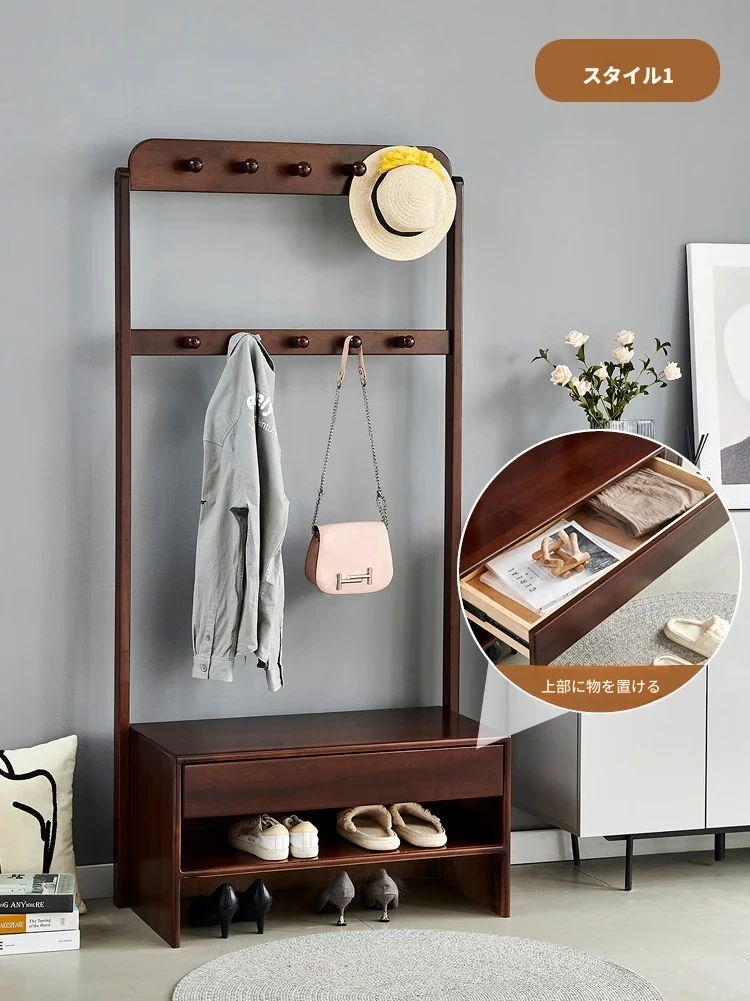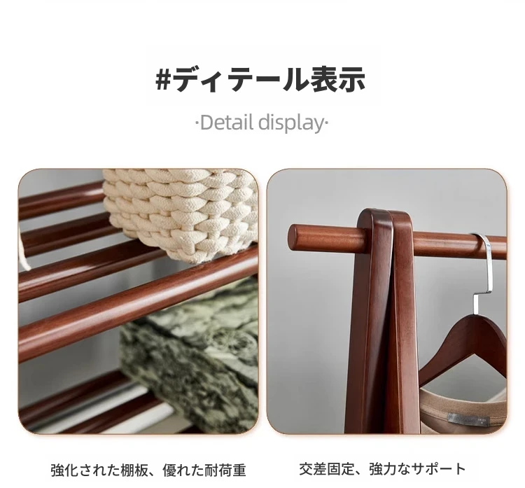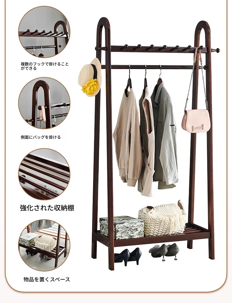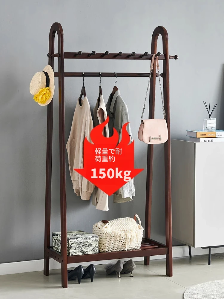高品質な無垢材のスタンド式ハンガー - ベッドルームやリビングにぴったり!おしゃれな木製衣類ラックで、衣類や帽子を美しく収納。どんなインテリアにも調和し、使い勝手抜群のアイテムです!