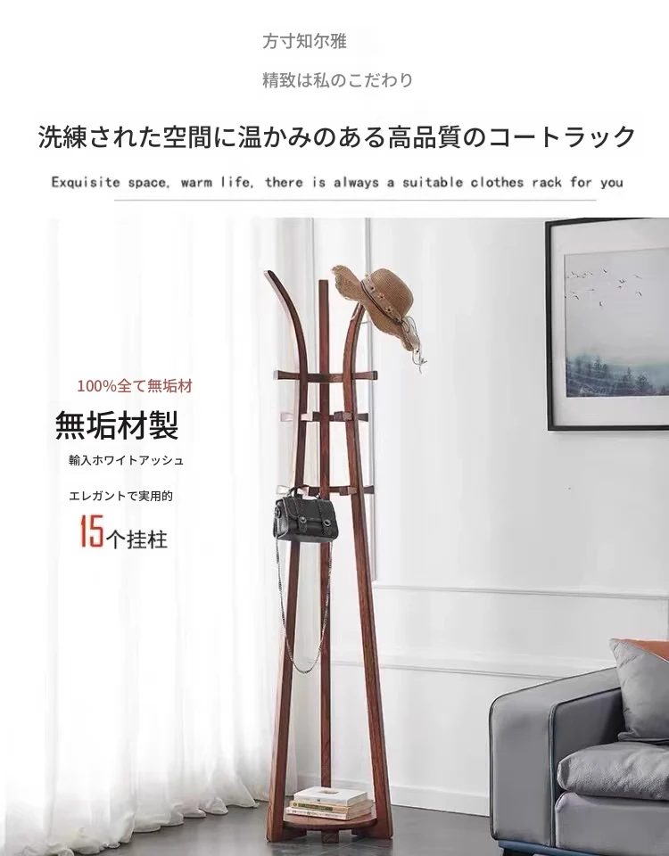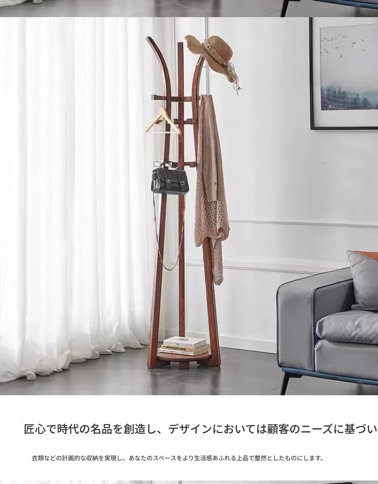 高品質の無垢材ハンガーラック - 寝室やリビング、玄関にも最適!角にぴったりフィットするおしゃれなコートハンガーで、収納スペースを有効活用。どんなインテリアにも調和するデザインで、使い勝手も抜群!
