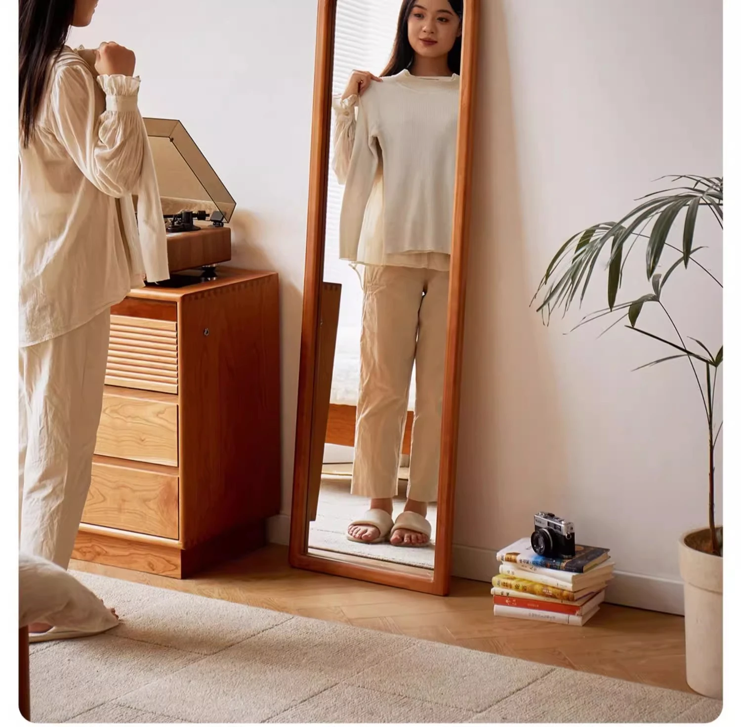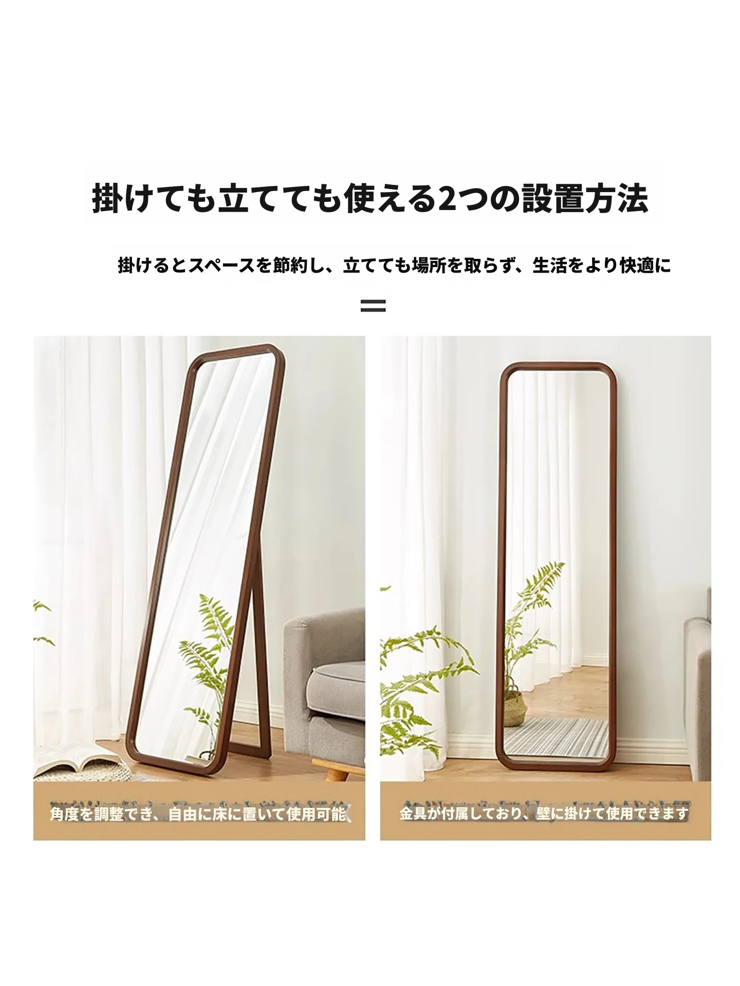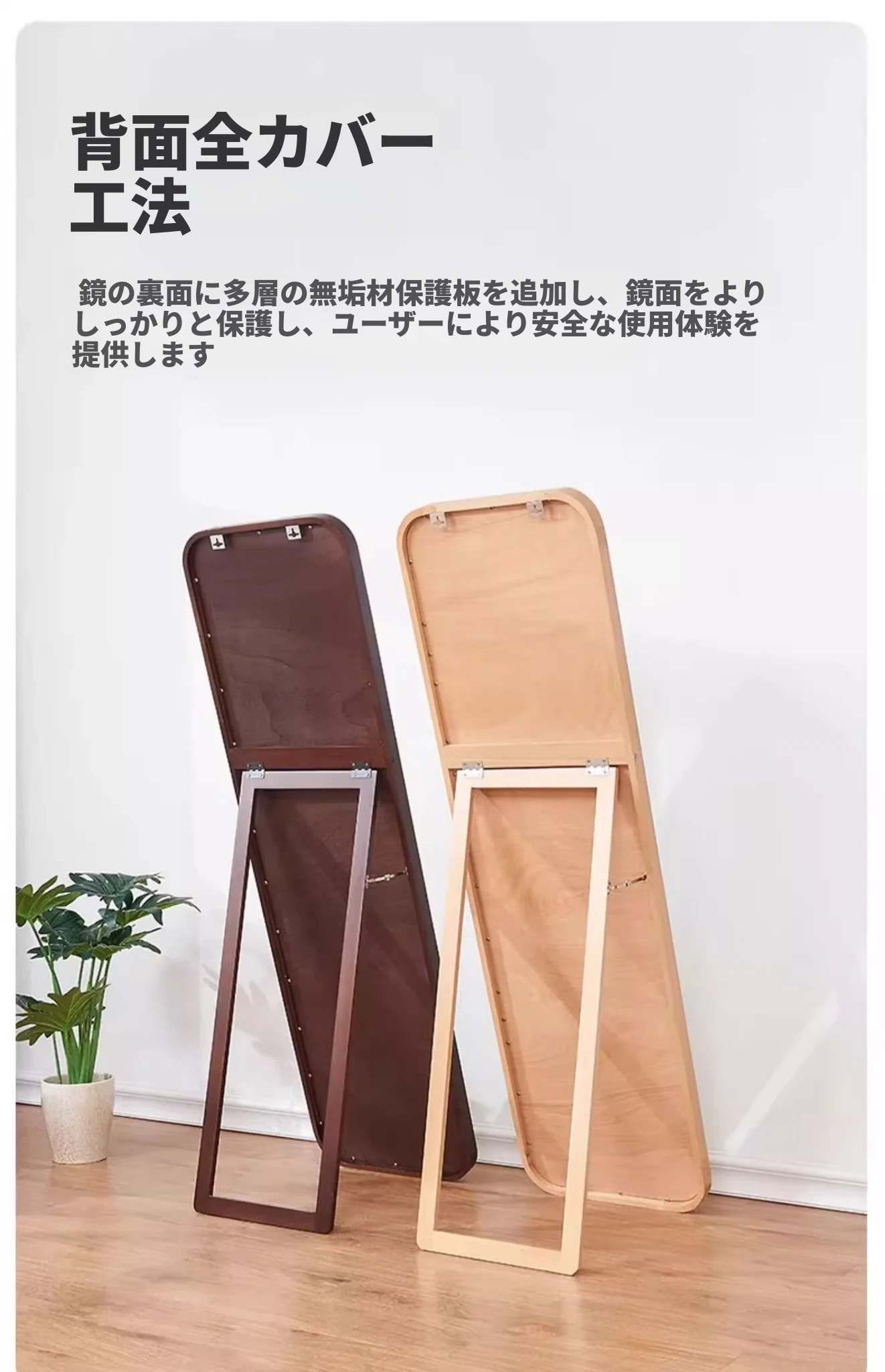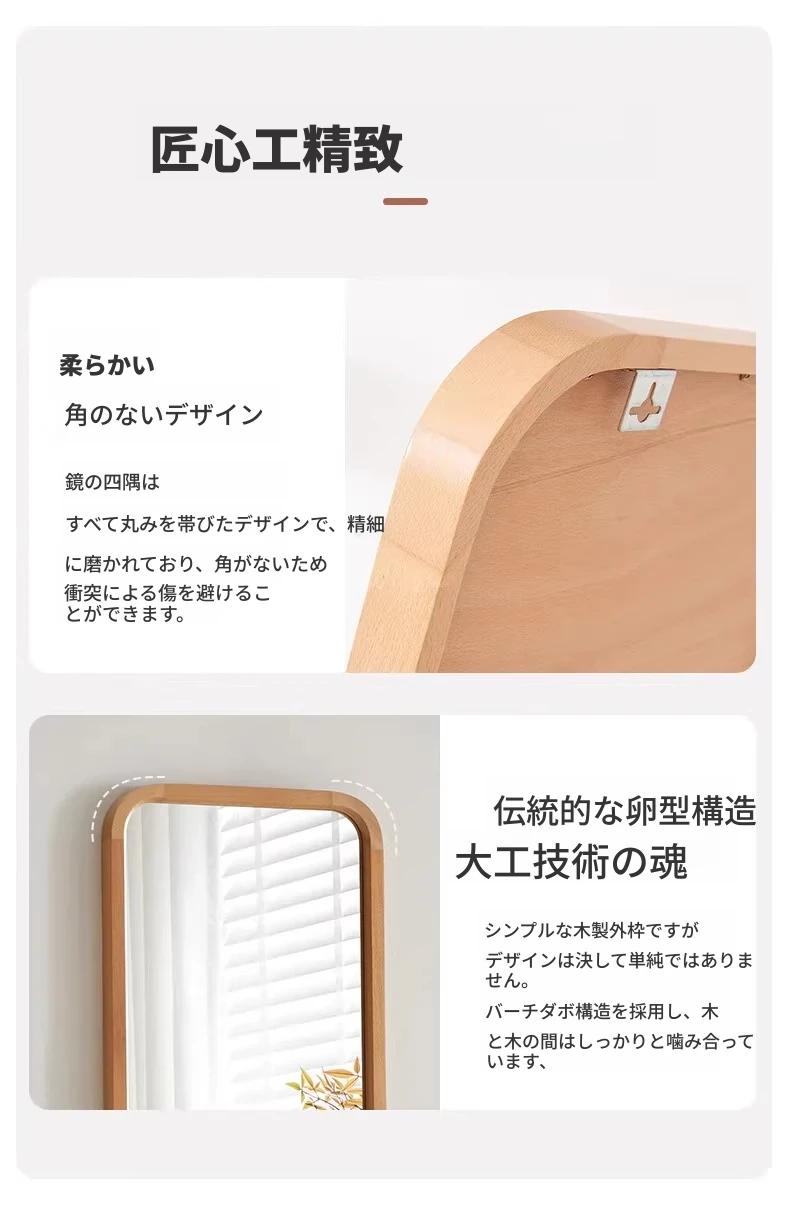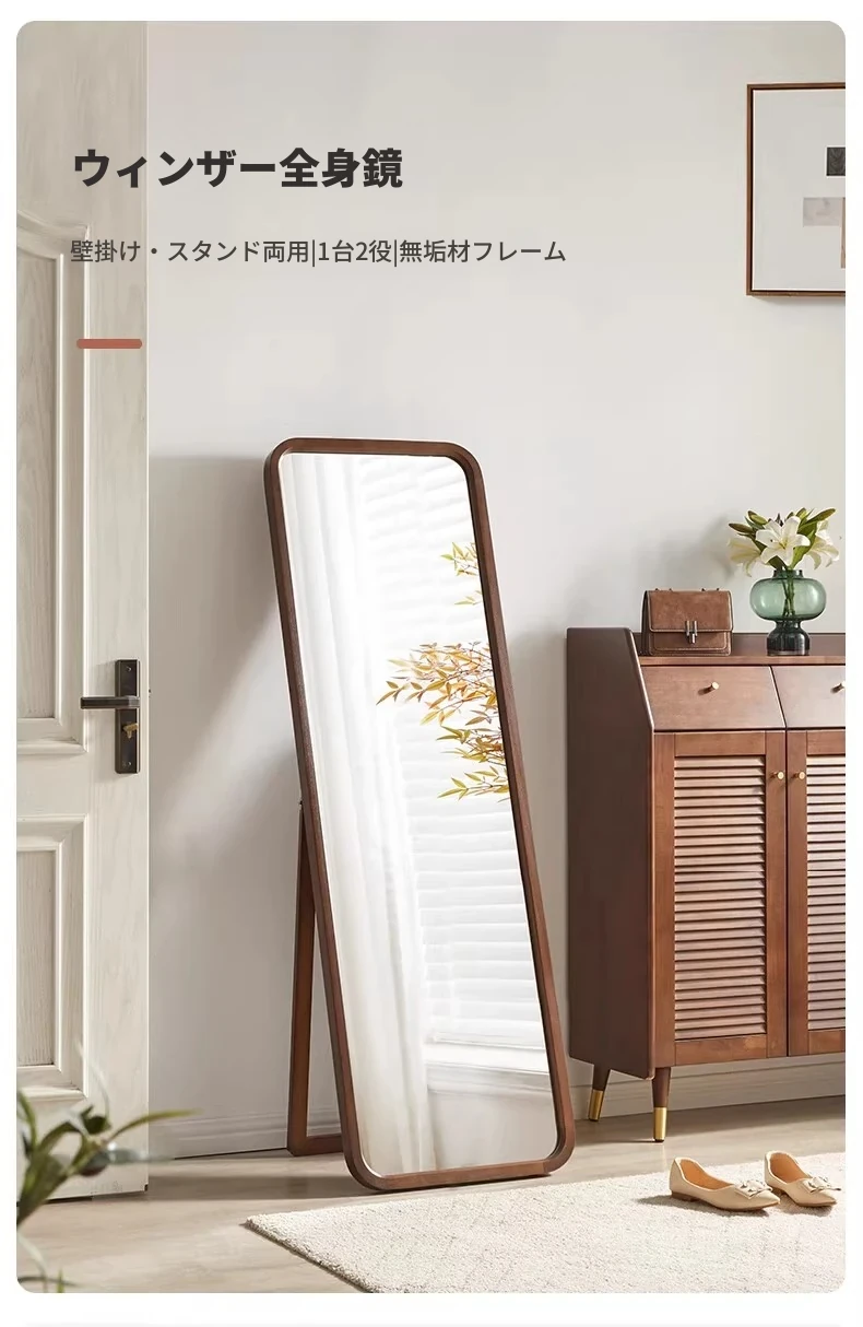 実木製全身鏡|壁掛け&スタンド両用|女性のための防爆&変形しない衣装用ミラー|おしゃれな寝室にぴったり!