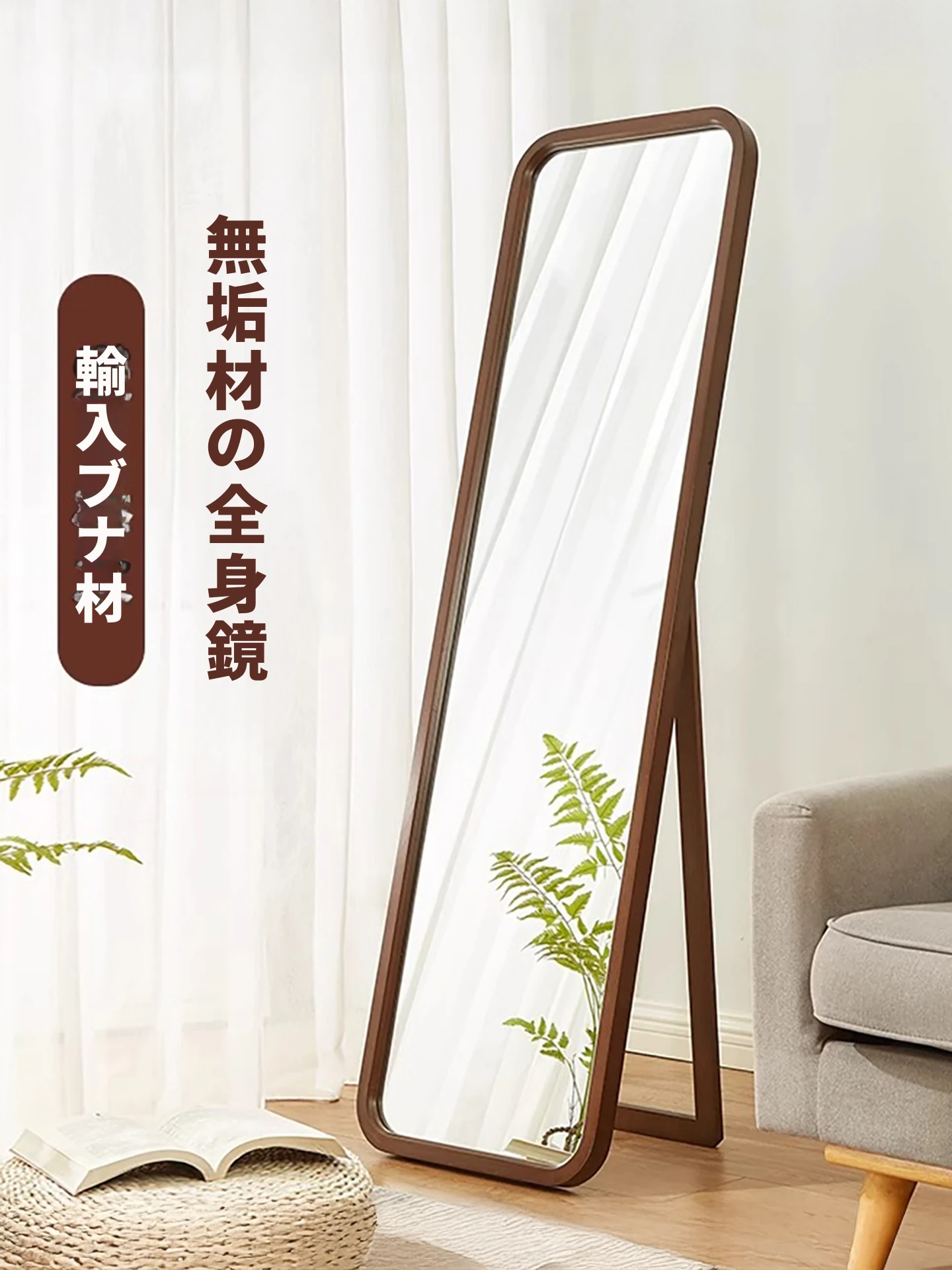 【アップグレードされたドイツビーチウッドフレーム 損傷補償】46*160CMの立てかけ式全身鏡 ウォールナットカラー