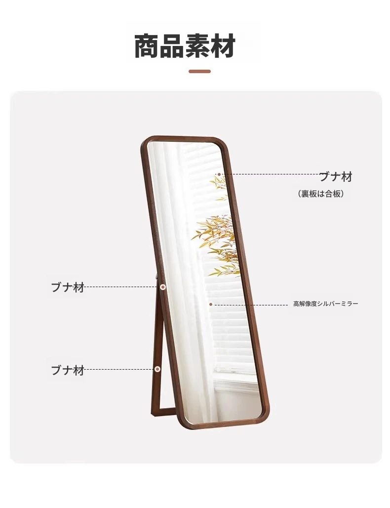 【アップグレードされたドイツビーチウッドフレーム 損傷補償】46*160CMの立てかけ式全身鏡 ナチュラルカラー