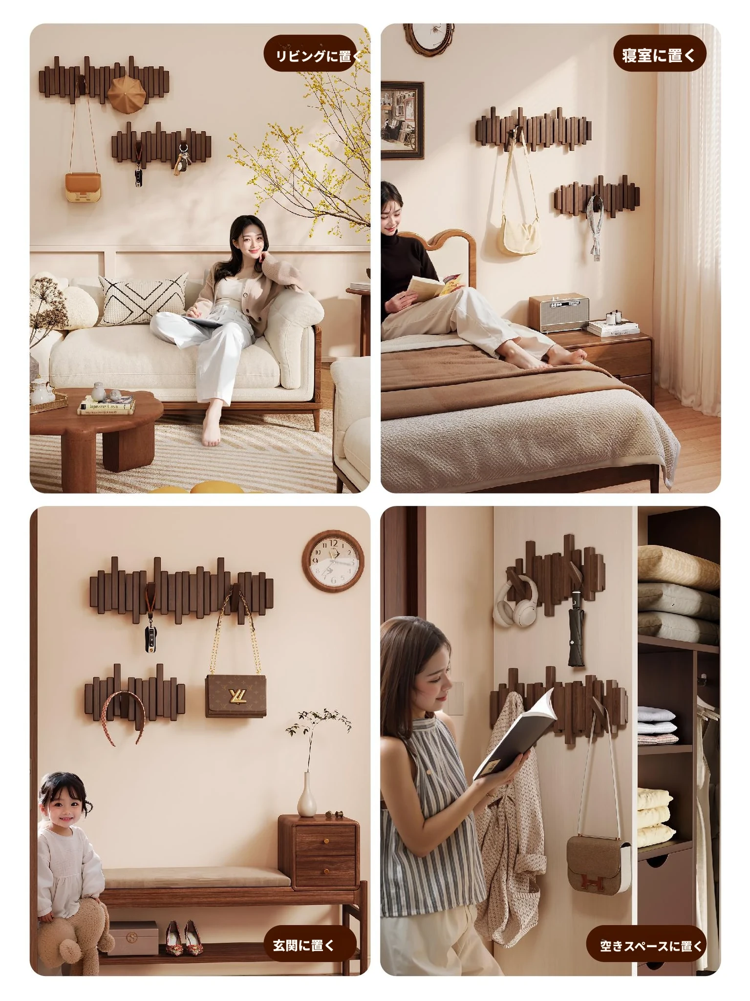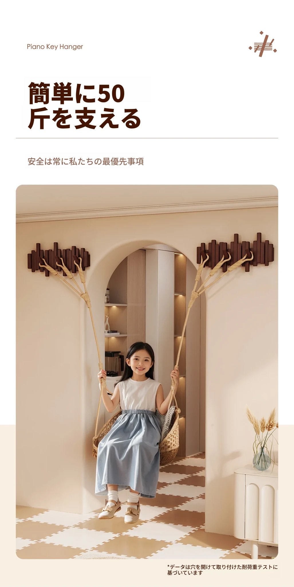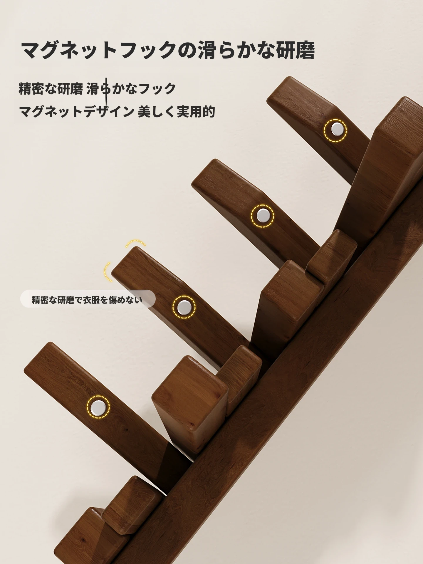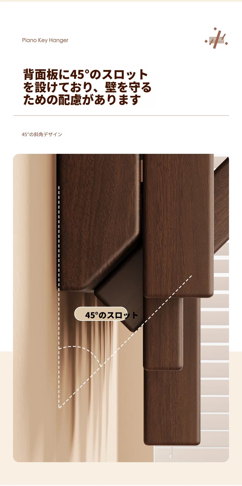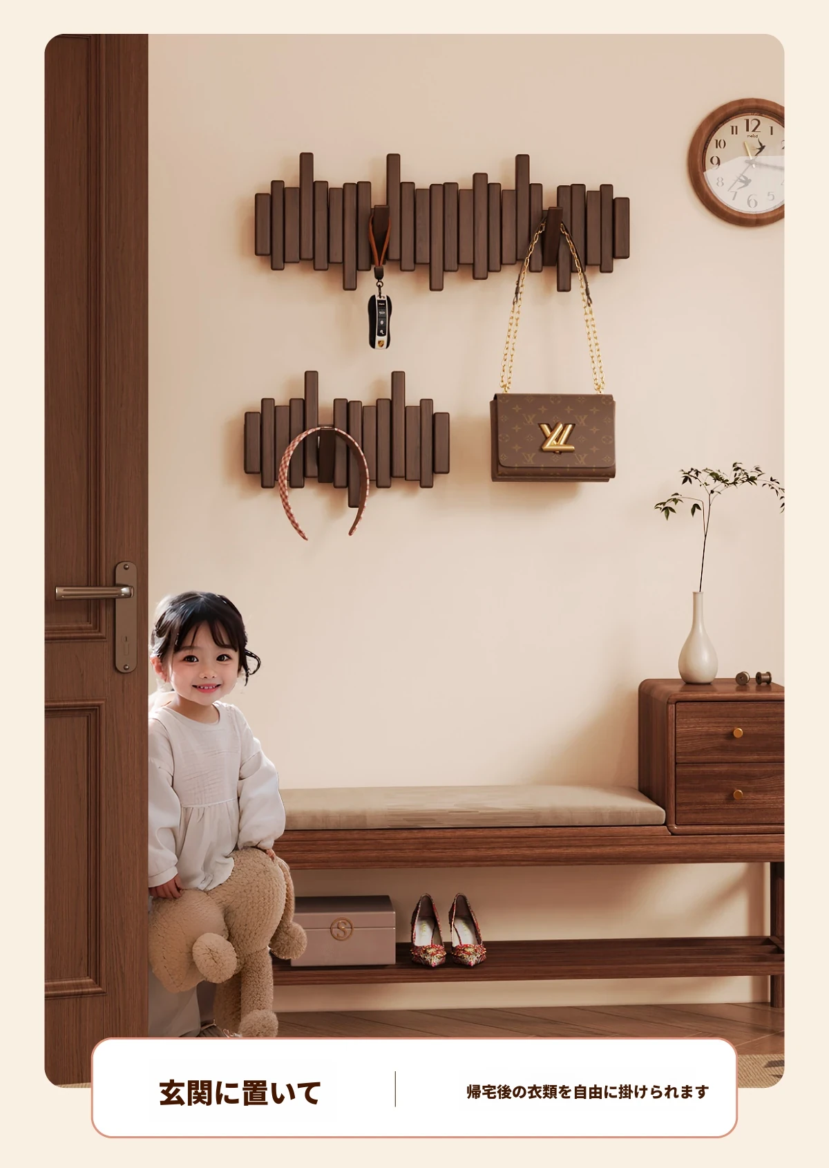 天然木製ピアノキーのコートハンガー - 玄関や壁にぴったりなノー打孔デザイン!おしゃれな衣類・帽子掛け、寝室にも最適な収納ソリューション。おしゃれで実用的、あなたの空間を彩ります!