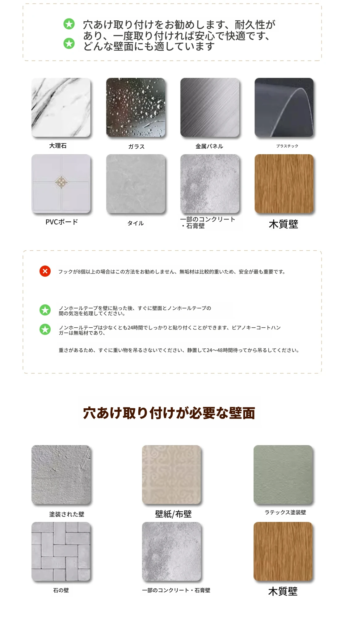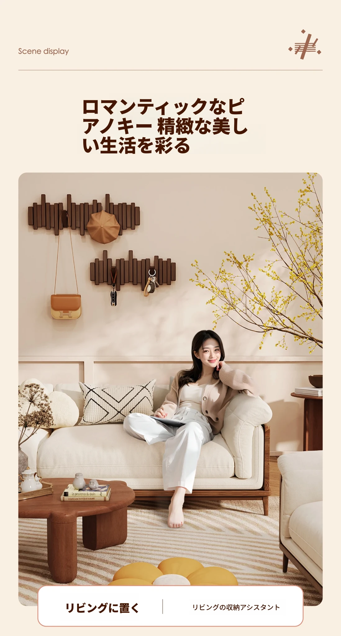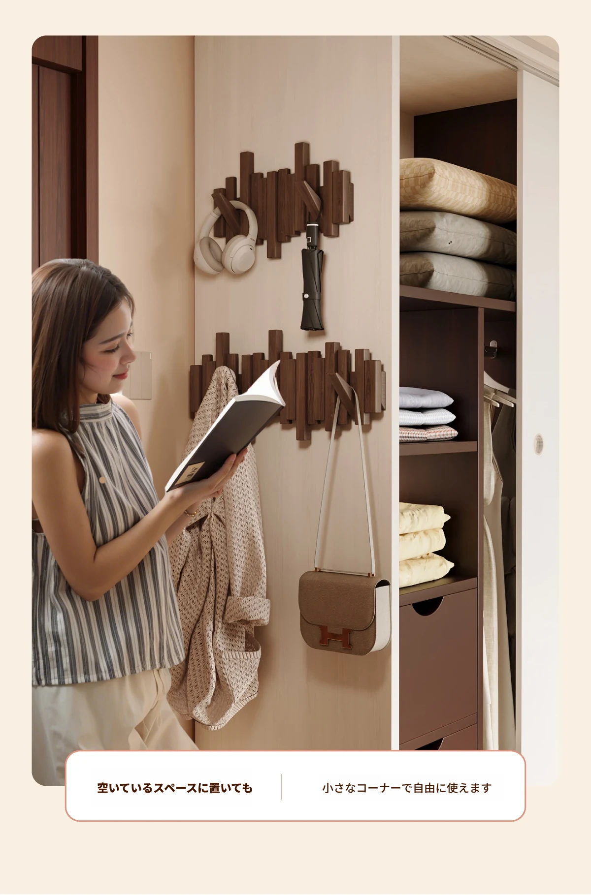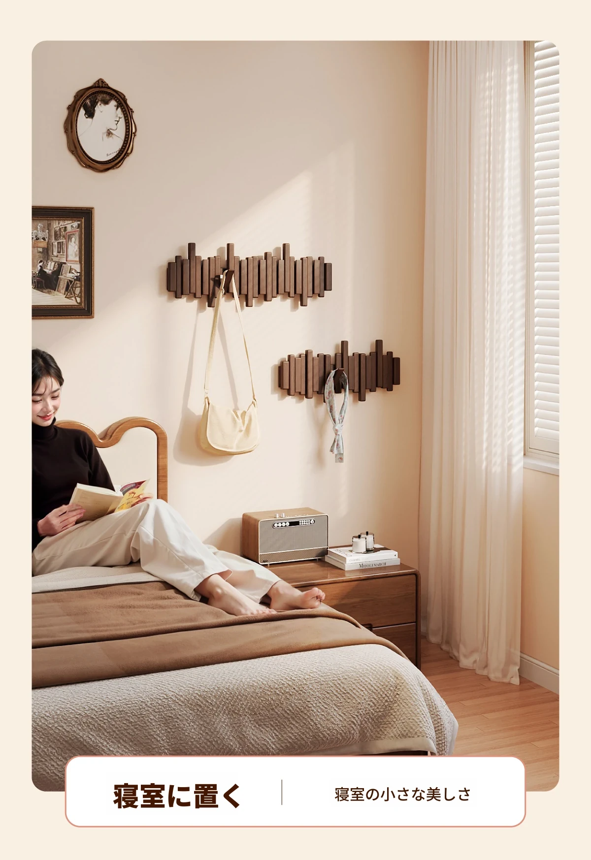 天然木製ピアノキーのコートハンガー - 玄関や壁にぴったりなノー打孔デザイン!おしゃれな衣類・帽子掛け、寝室にも最適な収納ソリューション。おしゃれで実用的、あなたの空間を彩ります!