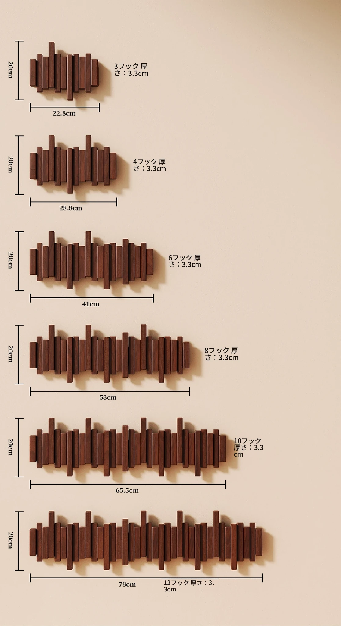 不規則タイプ ウォールナット色12フック【輸入ブナ】