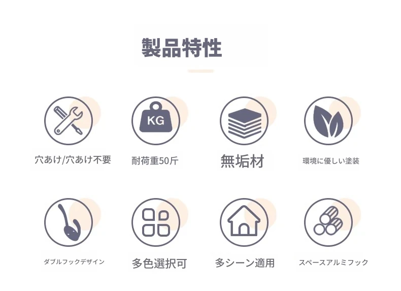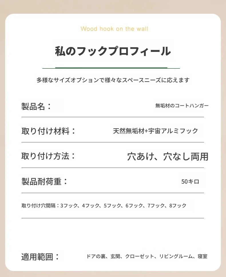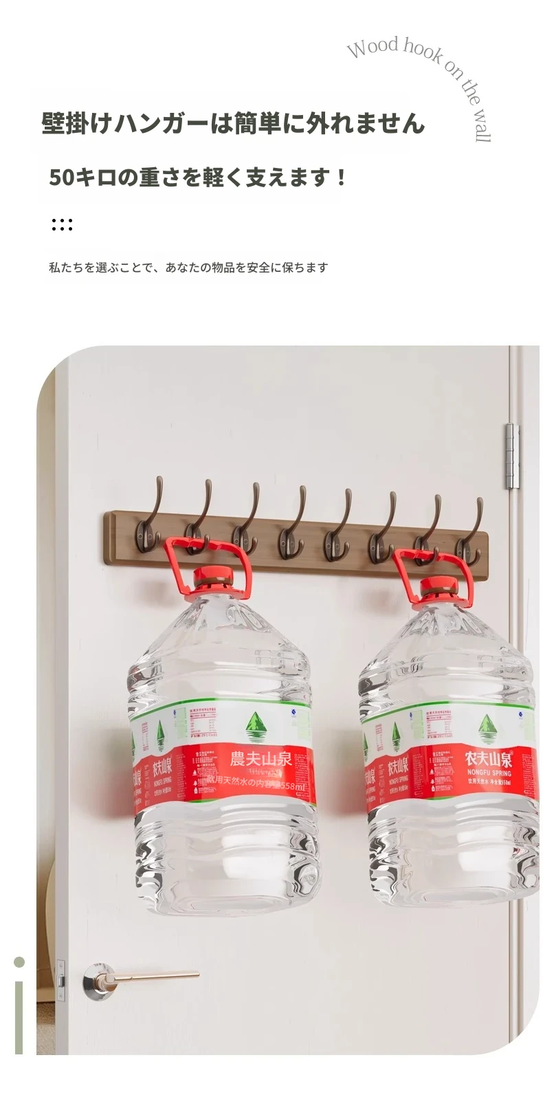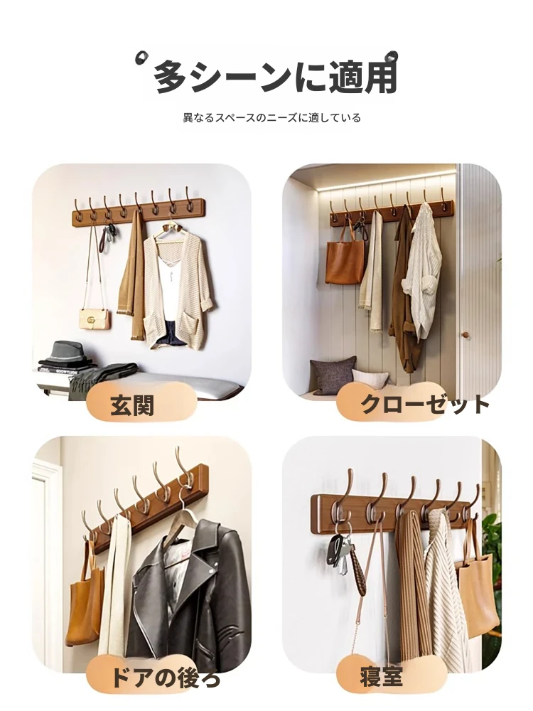 ナチュラルウッド色【8フック】頑丈な耐荷重 落下時保障❤️無垢材+環境に優しい無臭塗料