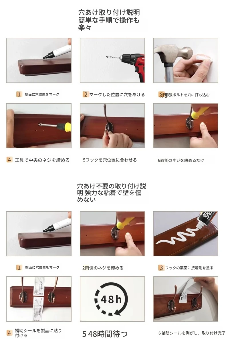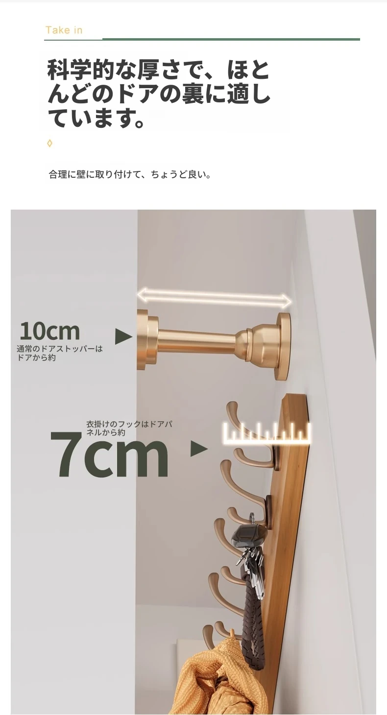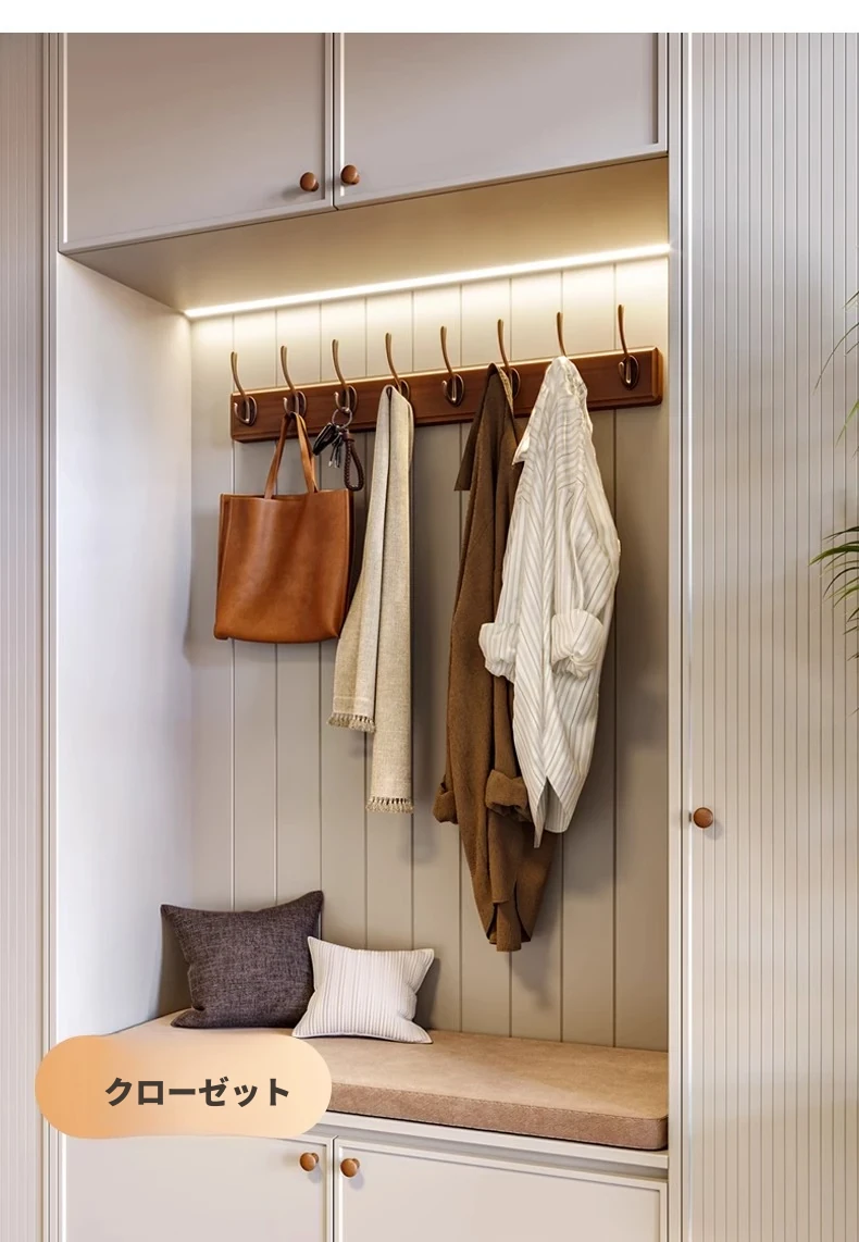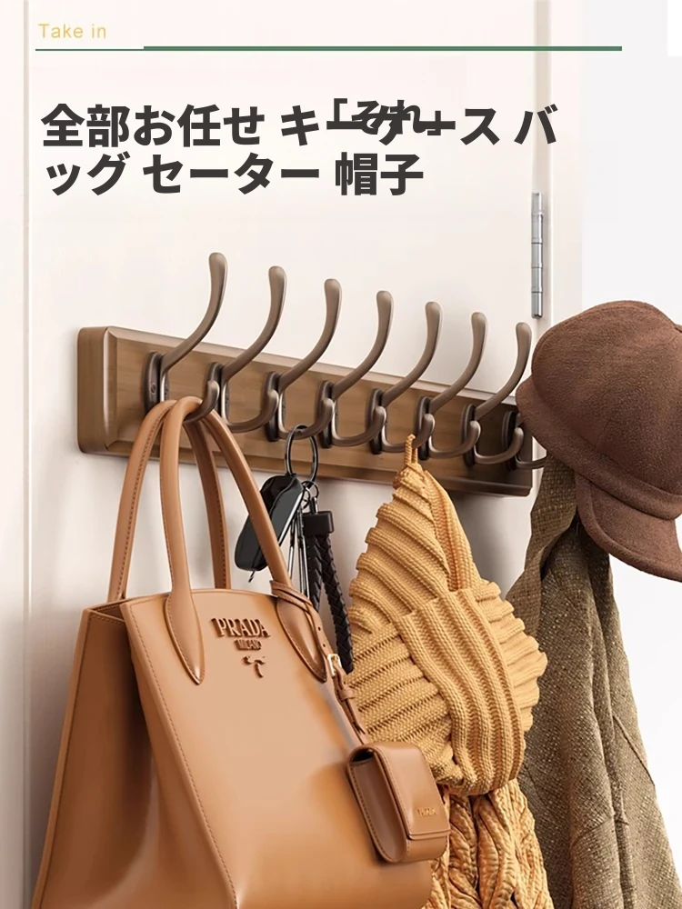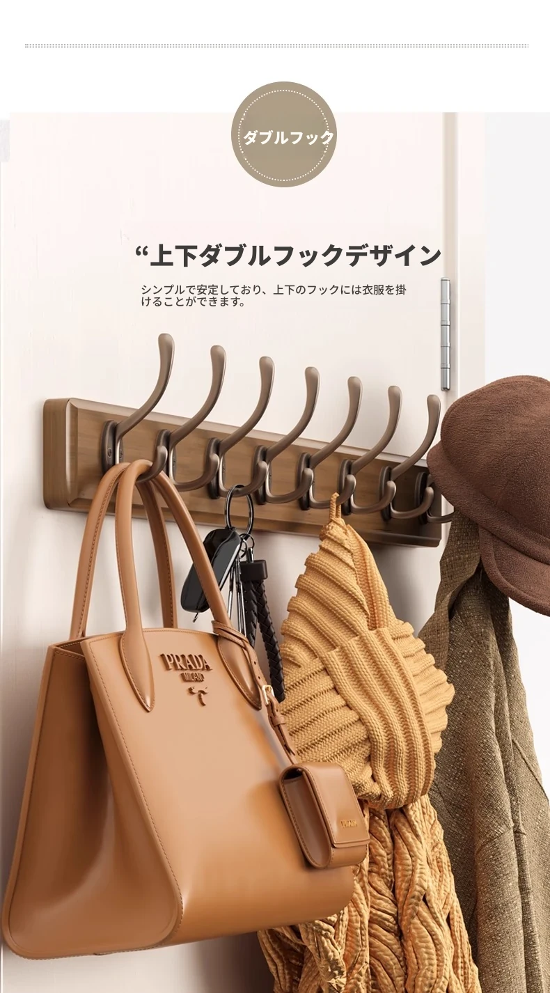 天然木製の壁掛けハンガー - 玄関や入口に最適!ドアの裏に取り付けるだけで簡単!穴あけ不要、鍵やコートを美しく収納。おしゃれで実用的な収納アイテムをお見逃しなく!