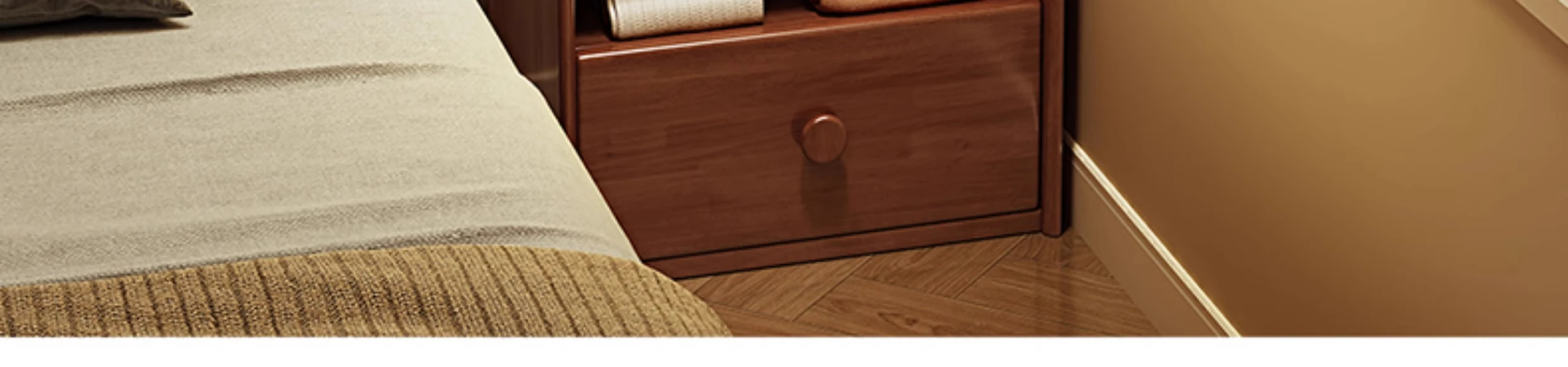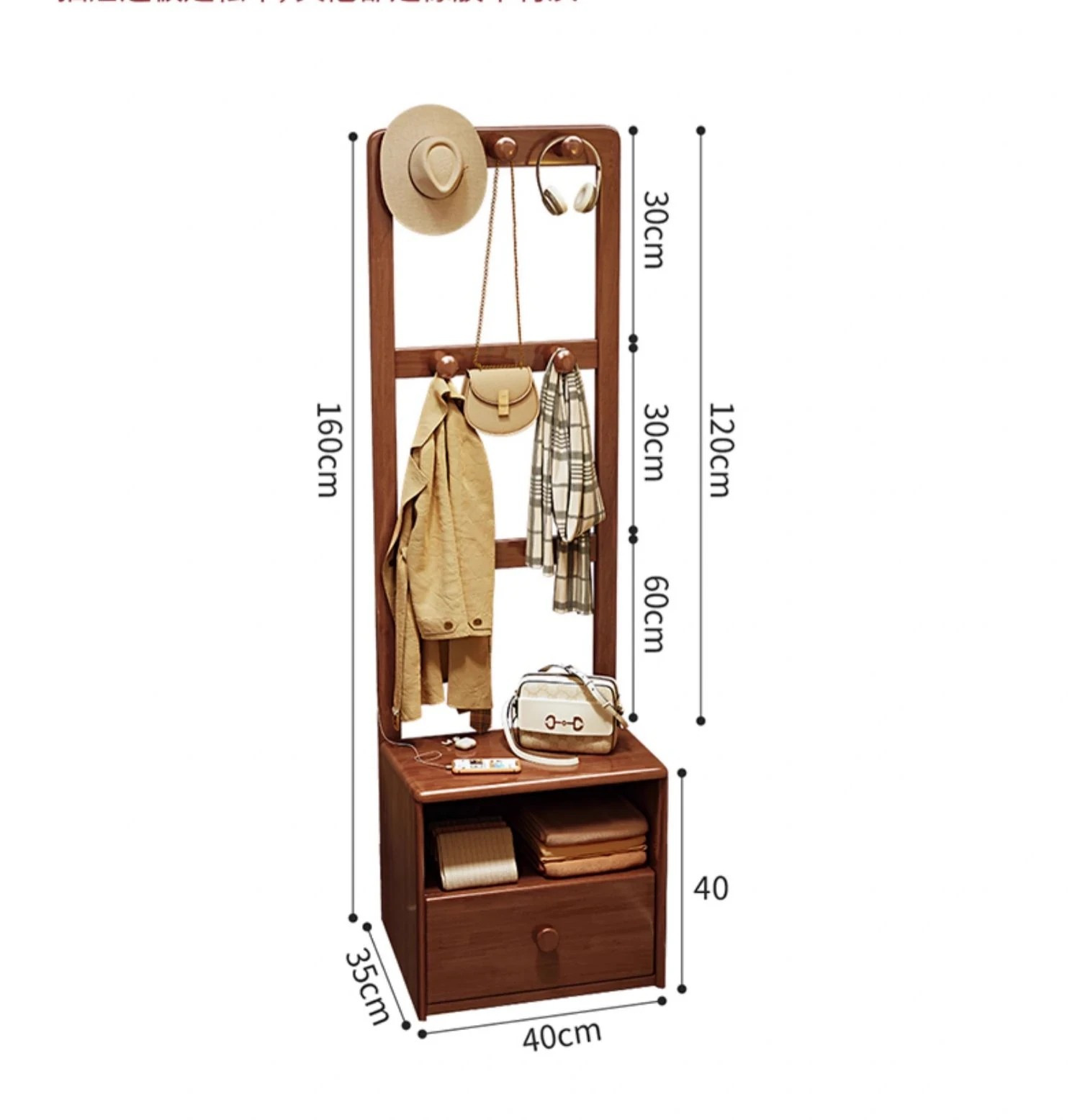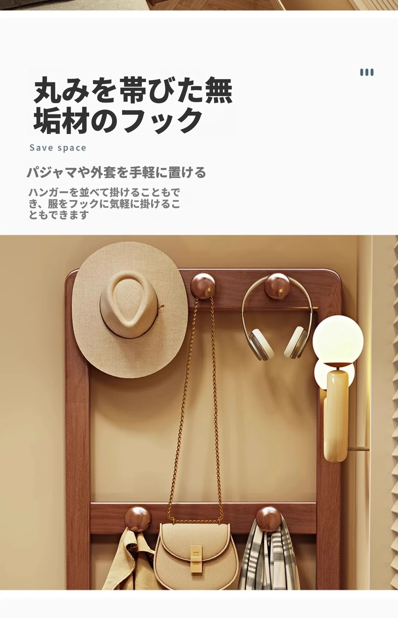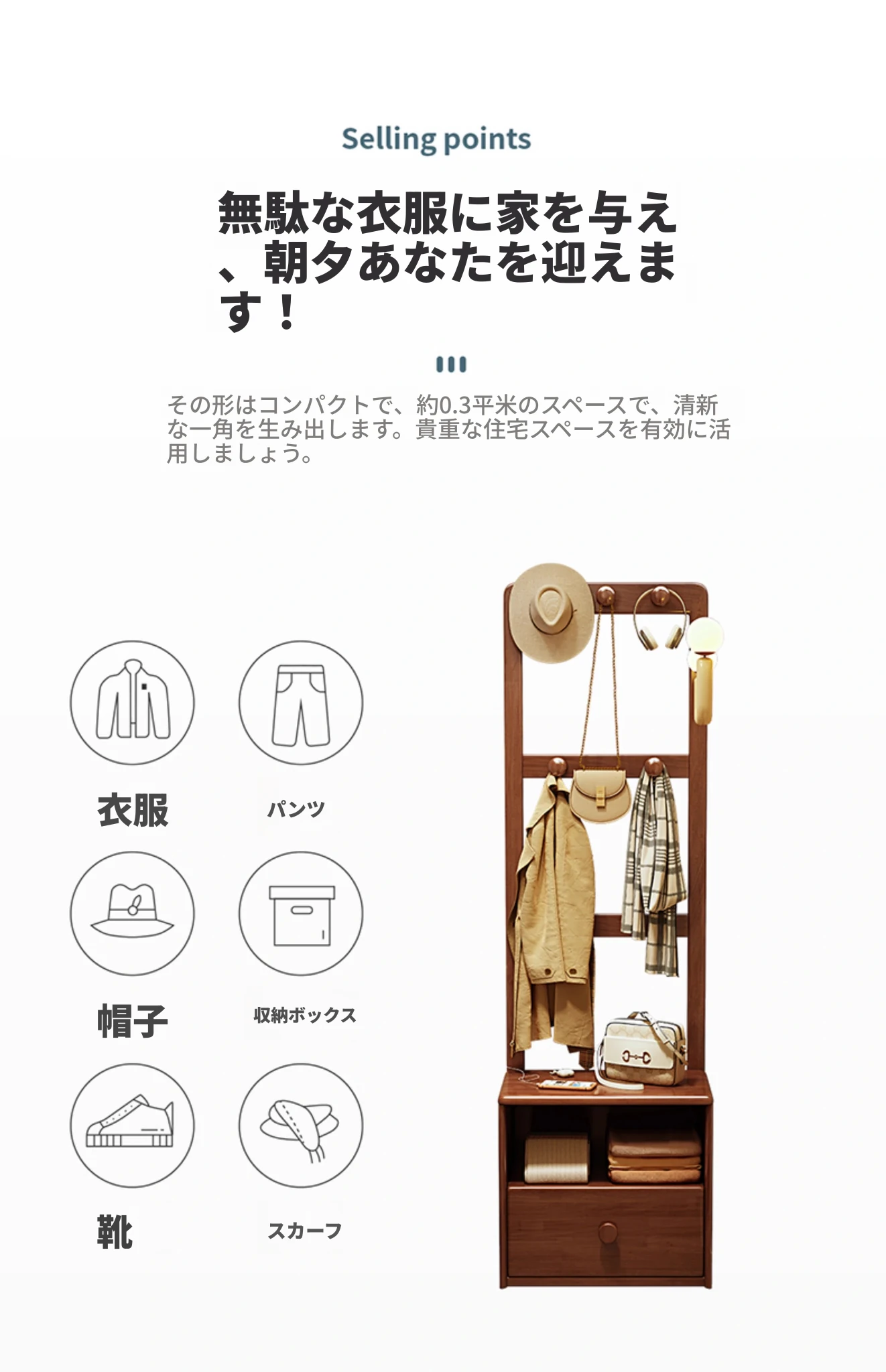 シンプルな無垢材のベッドサイドキャビネット&コートラック一体型!小さな部屋に最適な収納力を備えた、スタイリッシュな寝室用置物ラック。衣類や小物をすっきり整理して、快適な空間を実現!