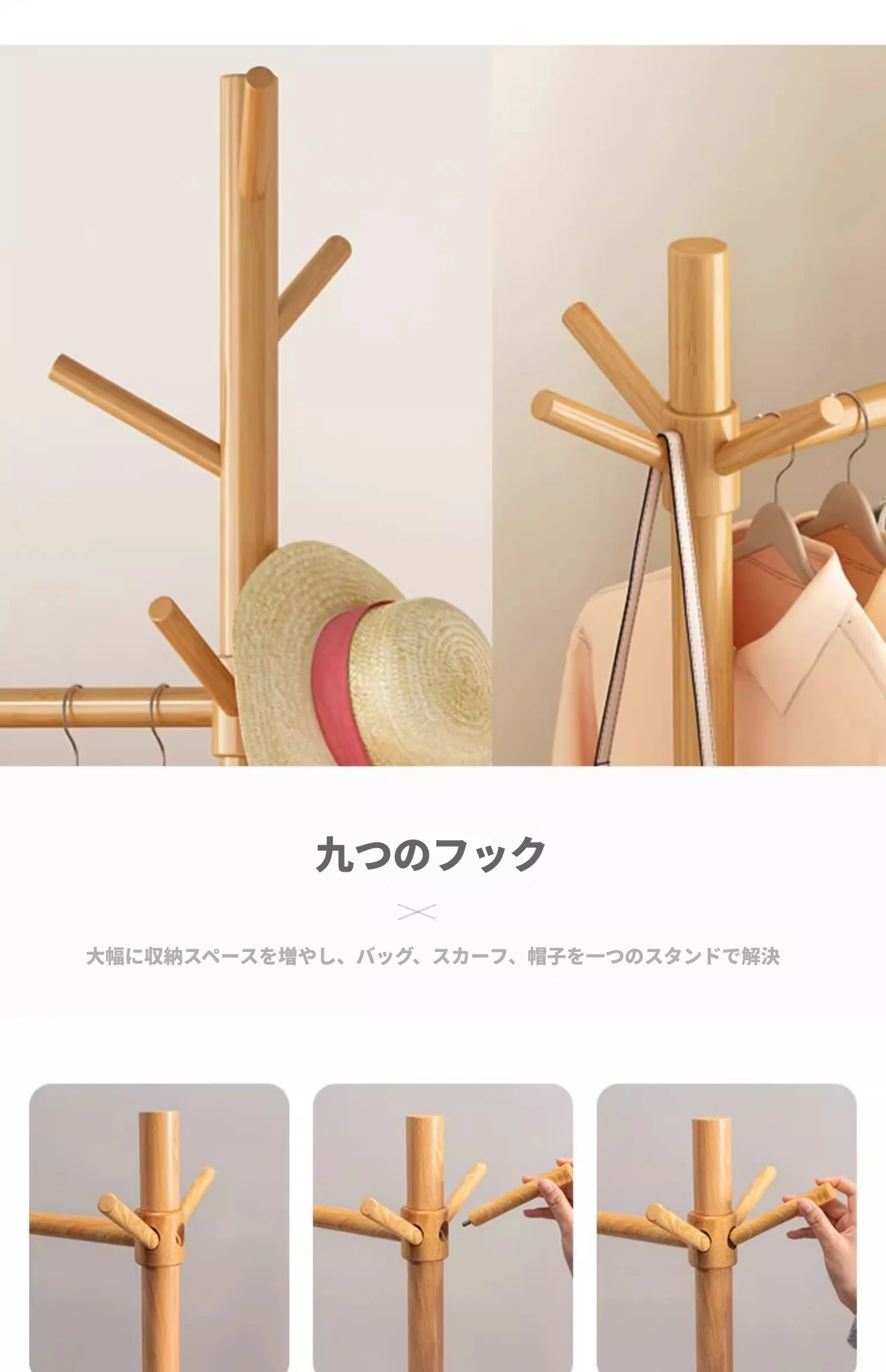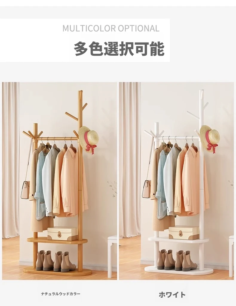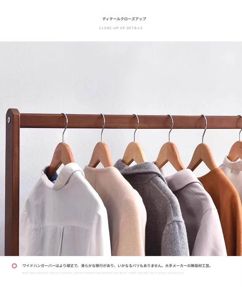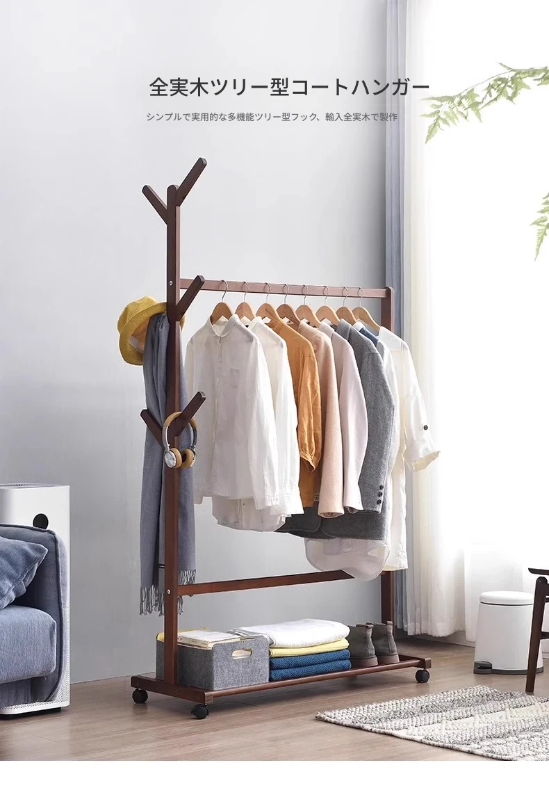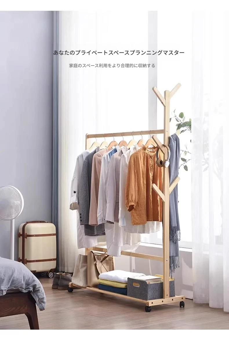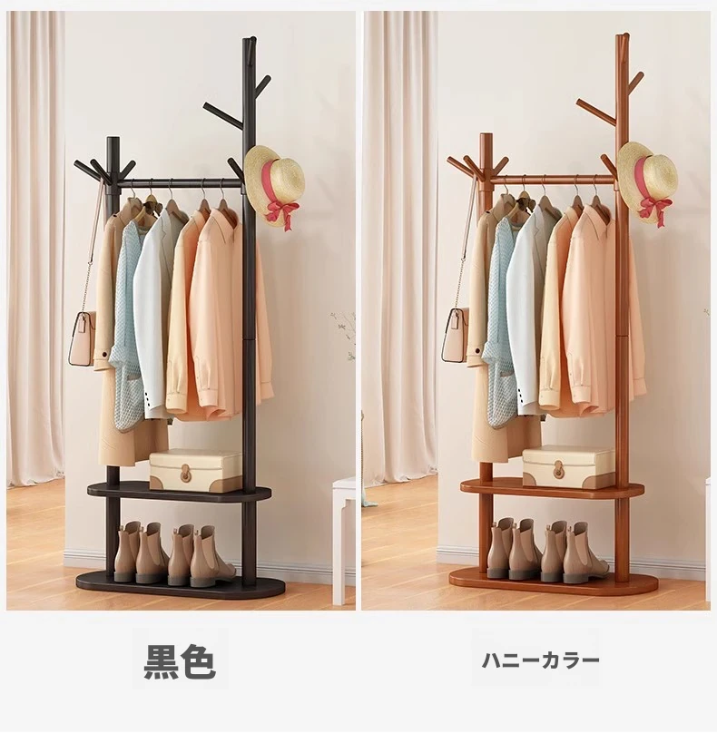 スタイリッシュな木製ハンガーラック - シンプルで使いやすい、寝室やリビングに最適な落地型衣類収納!あなたの部屋を美しく整え、衣類をすっきりと整理できます。