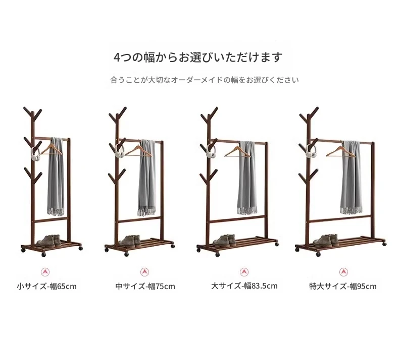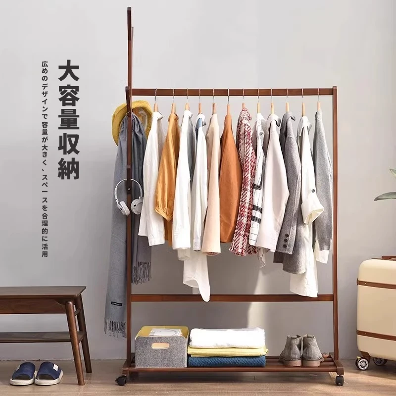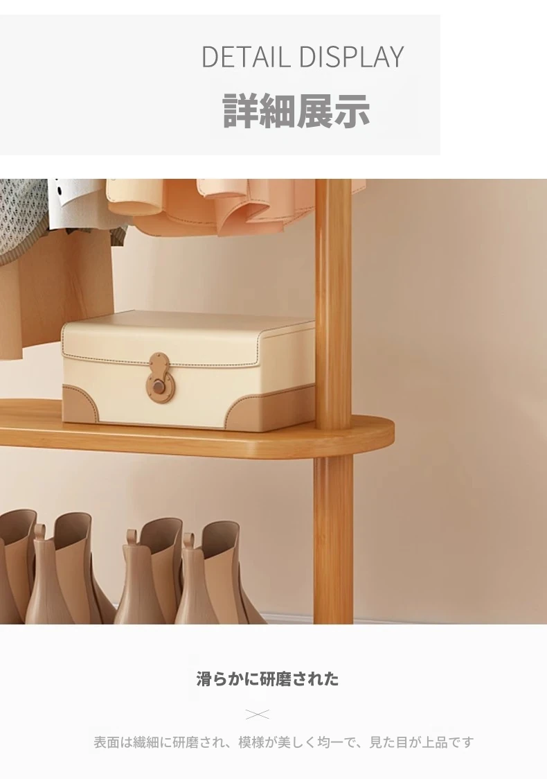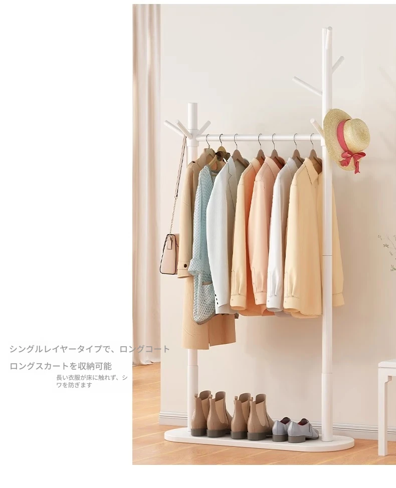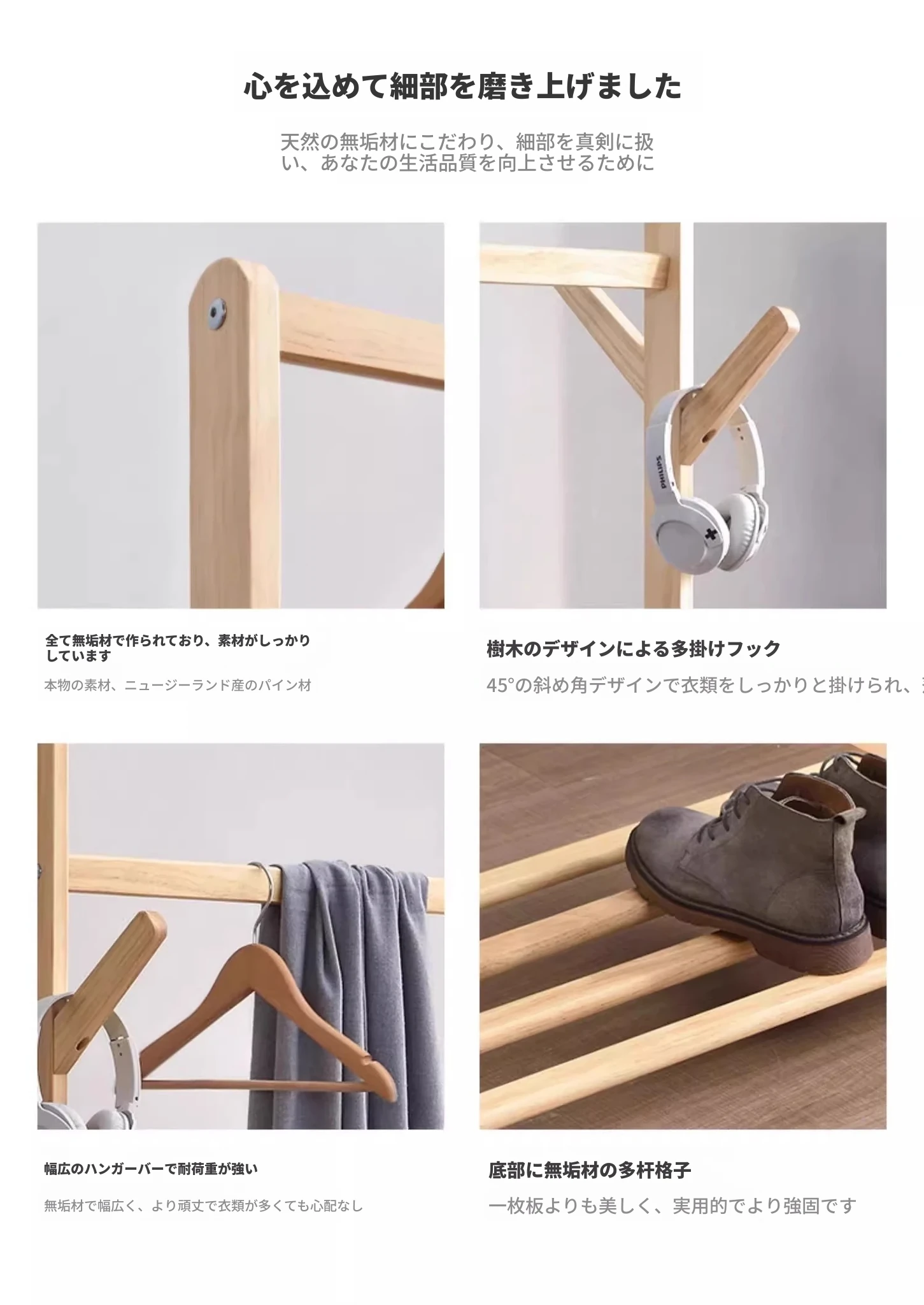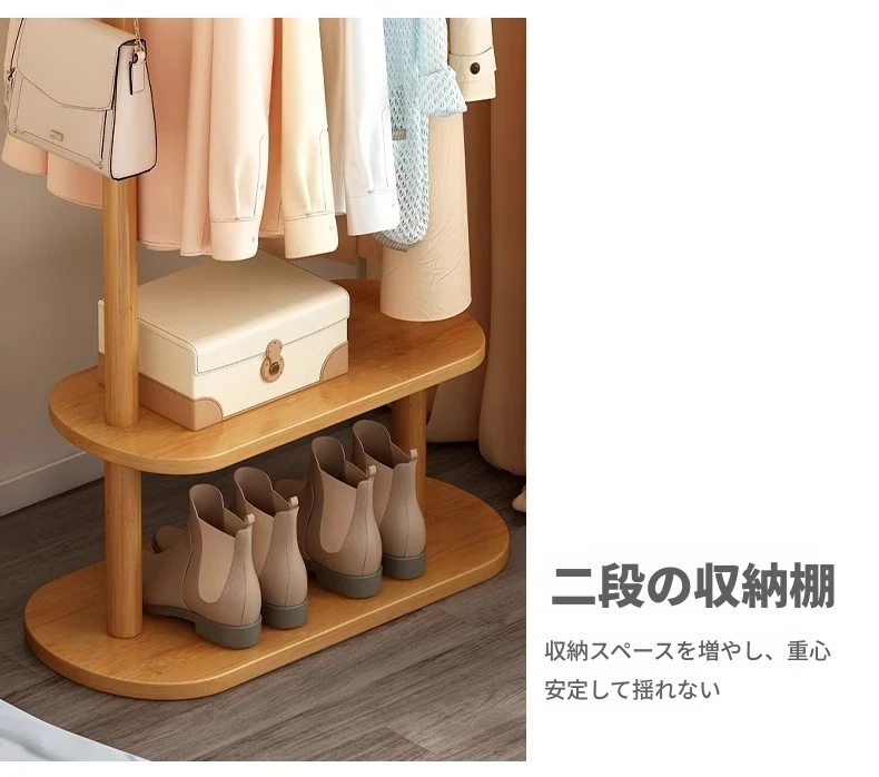 スタイリッシュな木製ハンガーラック - シンプルで使いやすい、寝室やリビングに最適な落地型衣類収納!あなたの部屋を美しく整え、衣類をすっきりと整理できます。