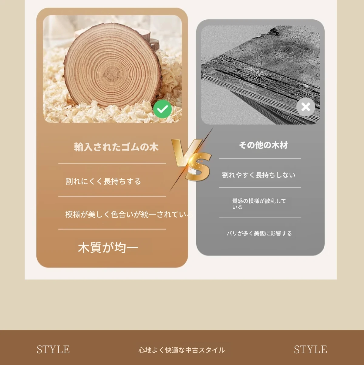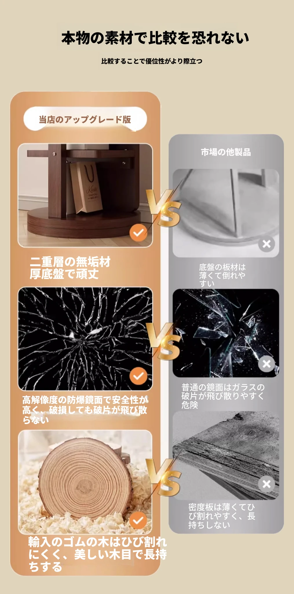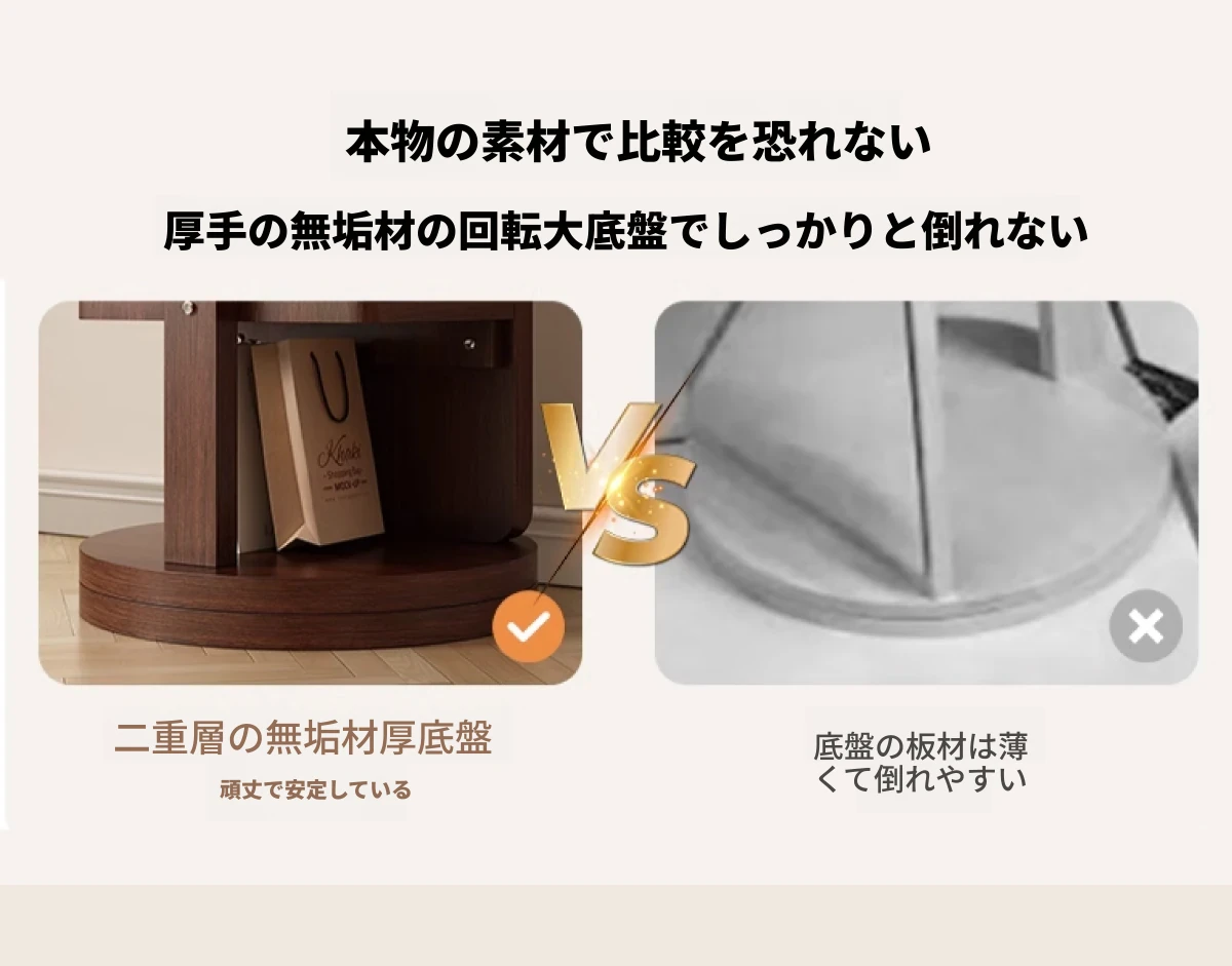 輸入された無垢材【大サイズ2段】回転式-ナチュラル色 破損補償