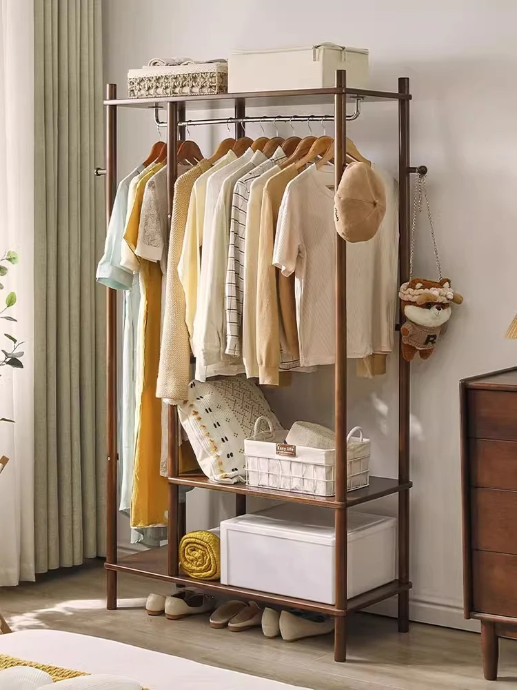 無垢材のハンガーラック - シンプルでスタイリッシュなデザイン!寝室やリビングにぴったりな落地型コートハンガー。新中式スタイルで、おしゃれに衣服を掛けて、空間を美しく演出します!