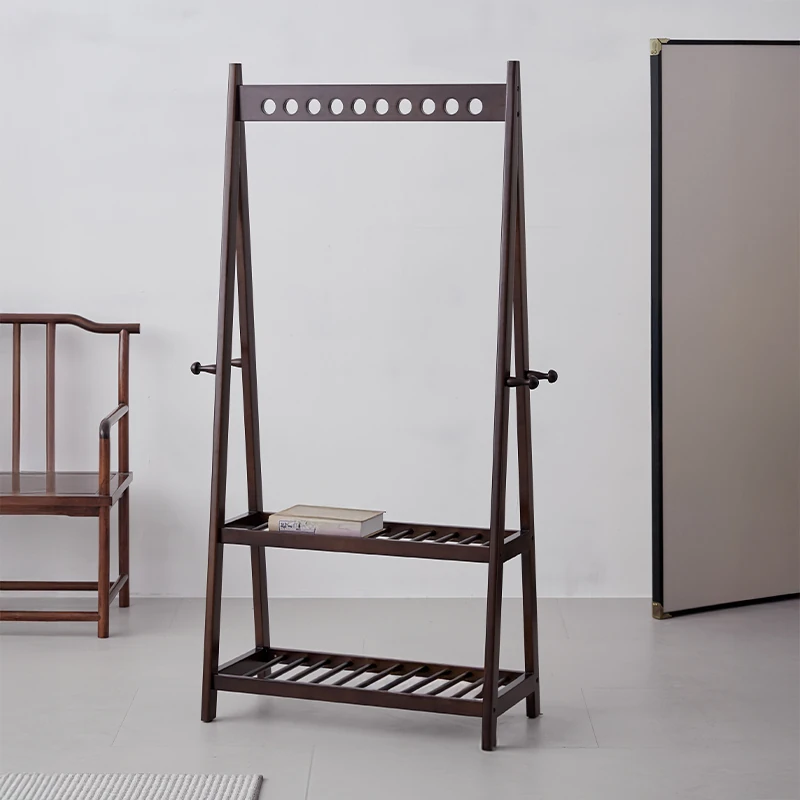 新中式デザインの無垢材スタンドハンガー - 寝室やリビングにぴったり!ベッドサイドでの衣類置きに最適、エレガントな収納ソリューション。おしゃれで機能的な衣帽掛け!