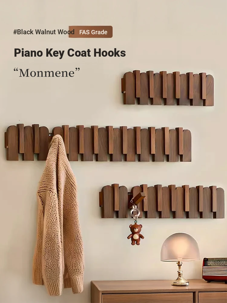 Wooden Wall-Mounted Coat Rack for Piano Keys - No Drilling Required, Perfect for Entryways and Hallways, Stylish and Functional Clothes Hook for Your Home