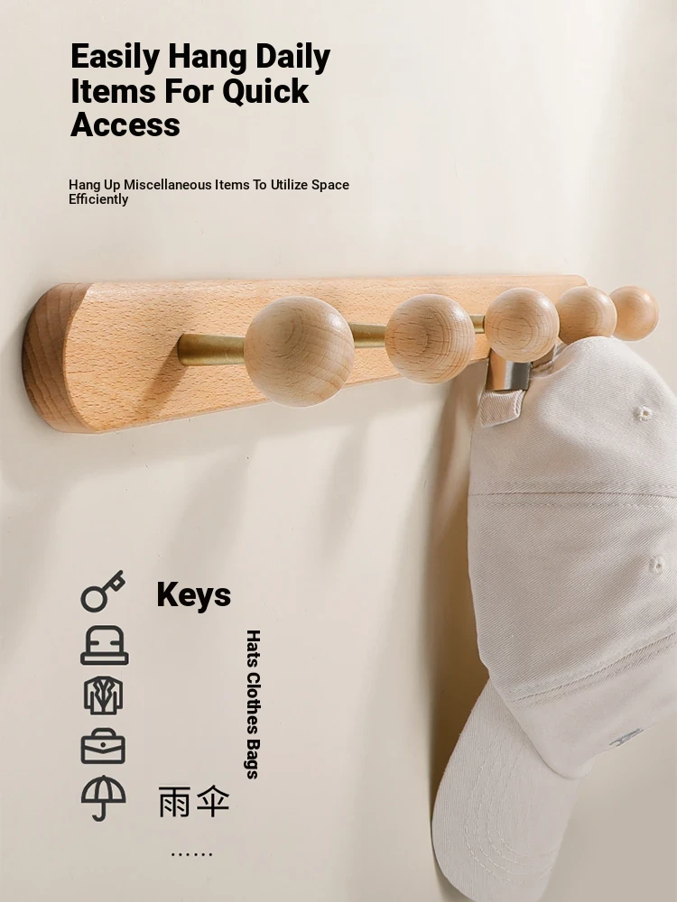Wall-Mounted Solid Wood Coat Hooks - Entryway Hanger for Easy Access, No Drilling Required, Perfect for Organizing Your Home