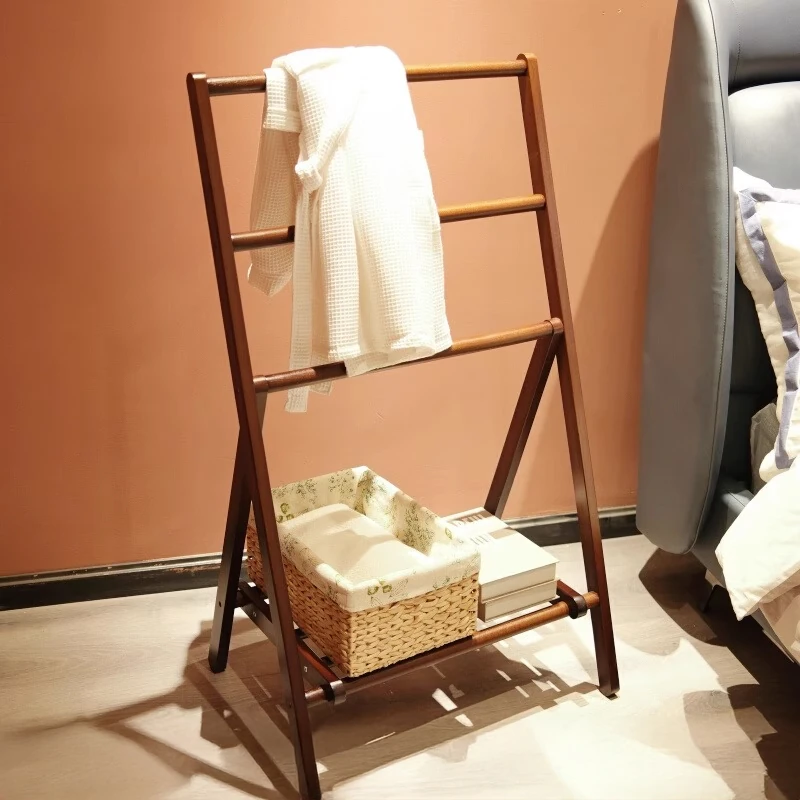 Solid Wood Floor Coat Rack - Minimalist Folding Clothing Stand for Bedroom, Easy-to-Use Bedside Organizer for Evening Attire