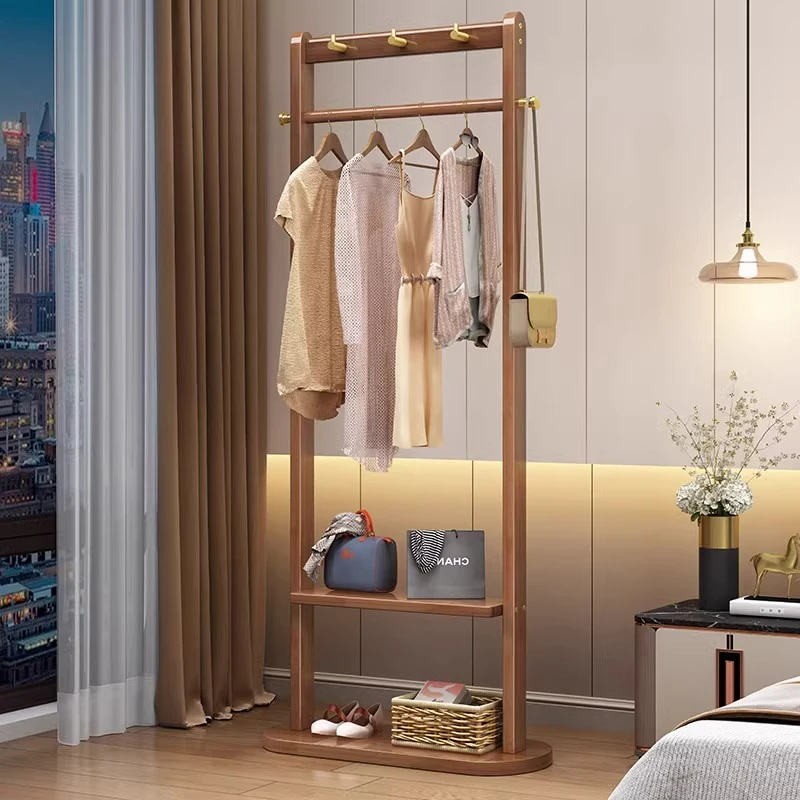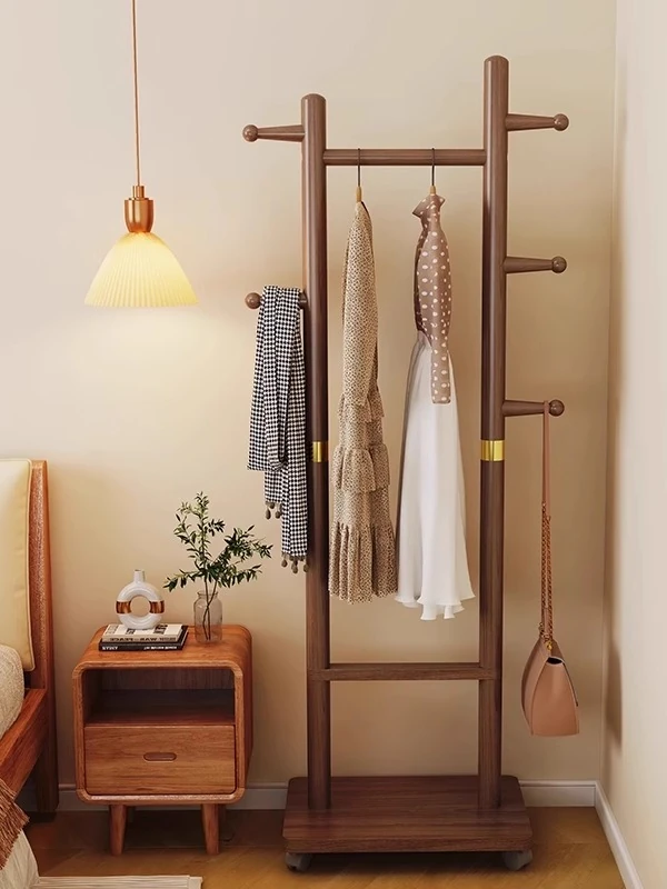 2025 New Solid Wood Coat Rack - Versatile Bedroom Storage Solution for Clothes, Movable Floor Stand for Easy Use